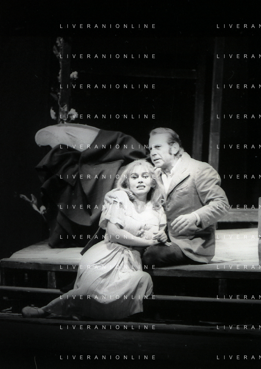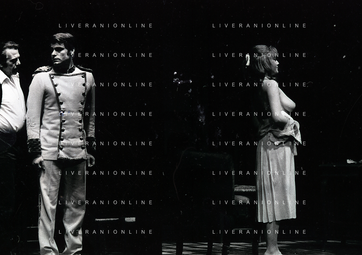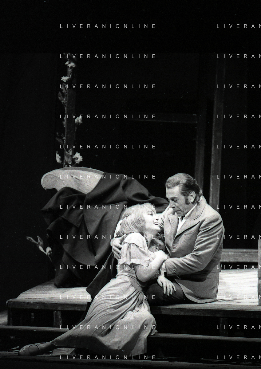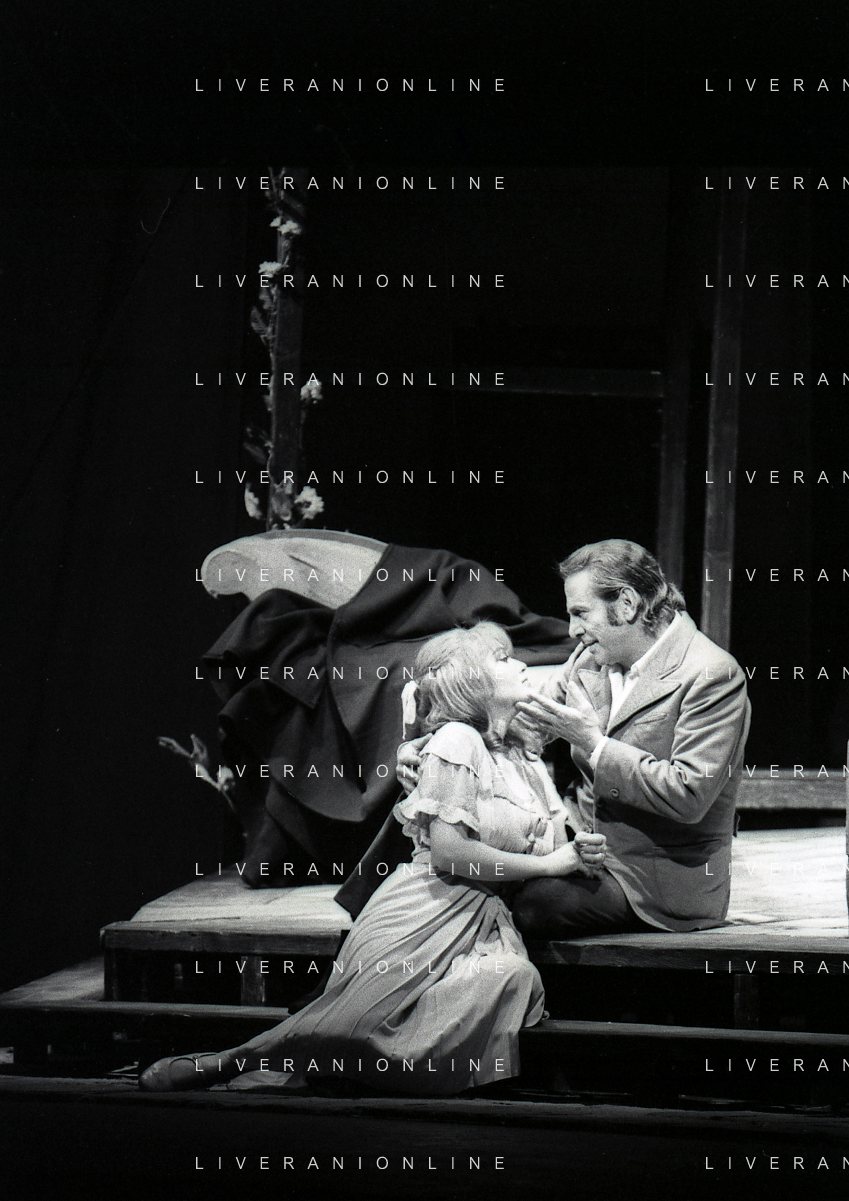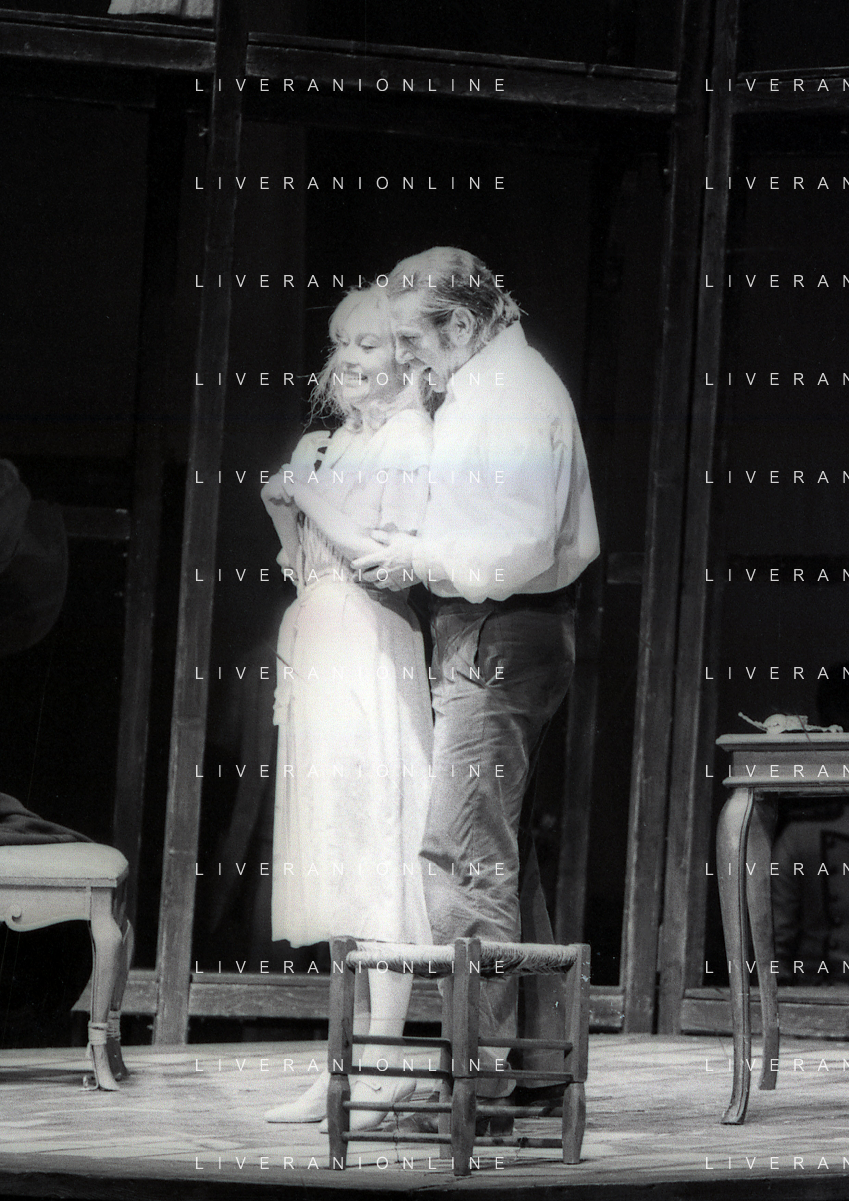 RETROSPETTIVA ENRICO MARIA SALERNO ATTORE NELLA FOTO ENRICO MARIA SALERNO NELL'ANNO 1980 NELLA COMMEDIA TEATRALE “IL MAGNIFICO CORNUTO“ CON LA FIGLIA AG ALDO LIVERANI SAS
