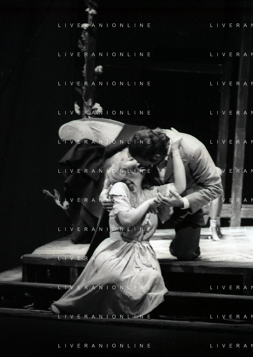 RETROSPETTIVA ENRICO MARIA SALERNO ATTORE NELLA FOTO ENRICO MARIA SALERNO CON VERONICA LARIO NELL'ANNO 1980 NELLA COMMEDIA TEATRALE “IL MAGNIFICO CORNUTO“ AG ALDO LIVERANI SAS