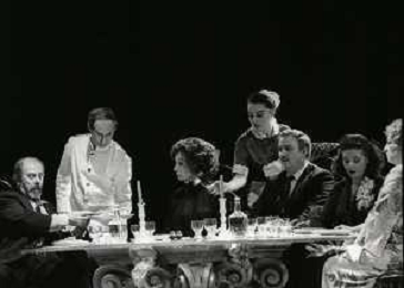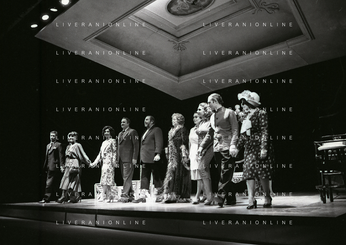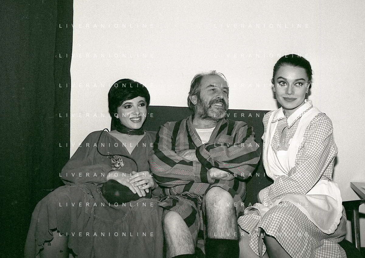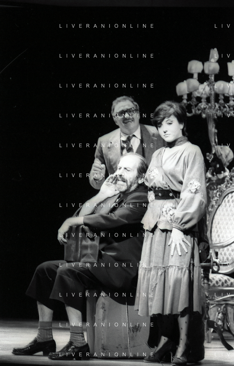 RETROSPETTIVA ENRICO MARIA SALERNO ATTORE NELLA FOTO ENRICO MARIA SALERNO CON CLARA BINOLI E VERONICA LARIO NELL'ANNO 1980 NELLA COMMEDIA TEATRALE “IO,L'EREDE“ AG ALDO LIVERANI SAS