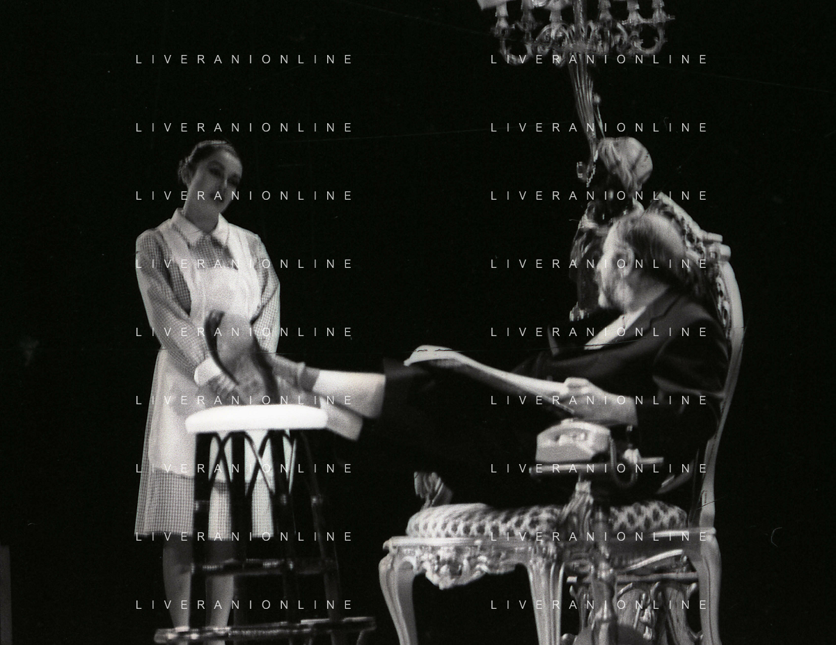 RETROSPETTIVA ENRICO MARIA SALERNO ATTORE NELLA FOTO ENRICO MARIA SALERNO CON CLARA BINOLI NELL'ANNO 1980 NELLA COMMEDIA TEATRALE “IO,L'EREDE“ AG ALDO LIVERANI SAS