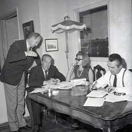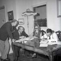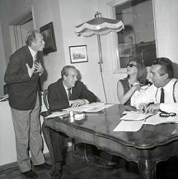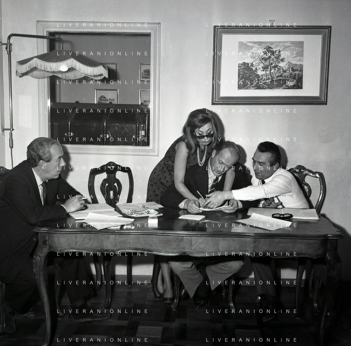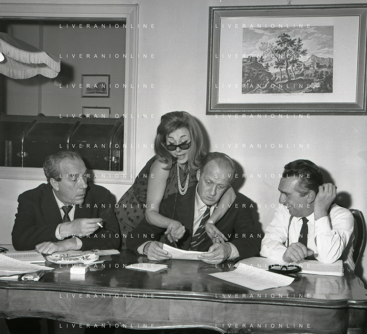 RETROSPETTIVA RAIMONDO VIANELLO E SANDRA MONDAINI ATTORI NELLA FOTO RAIMONDO VIANELLO CON SANDRA MONDAINI RENZO TARABUSI E GIULIO SCARNICCI A ROMA IL 09-12-1963 AG ALDO LIVERANI SAS