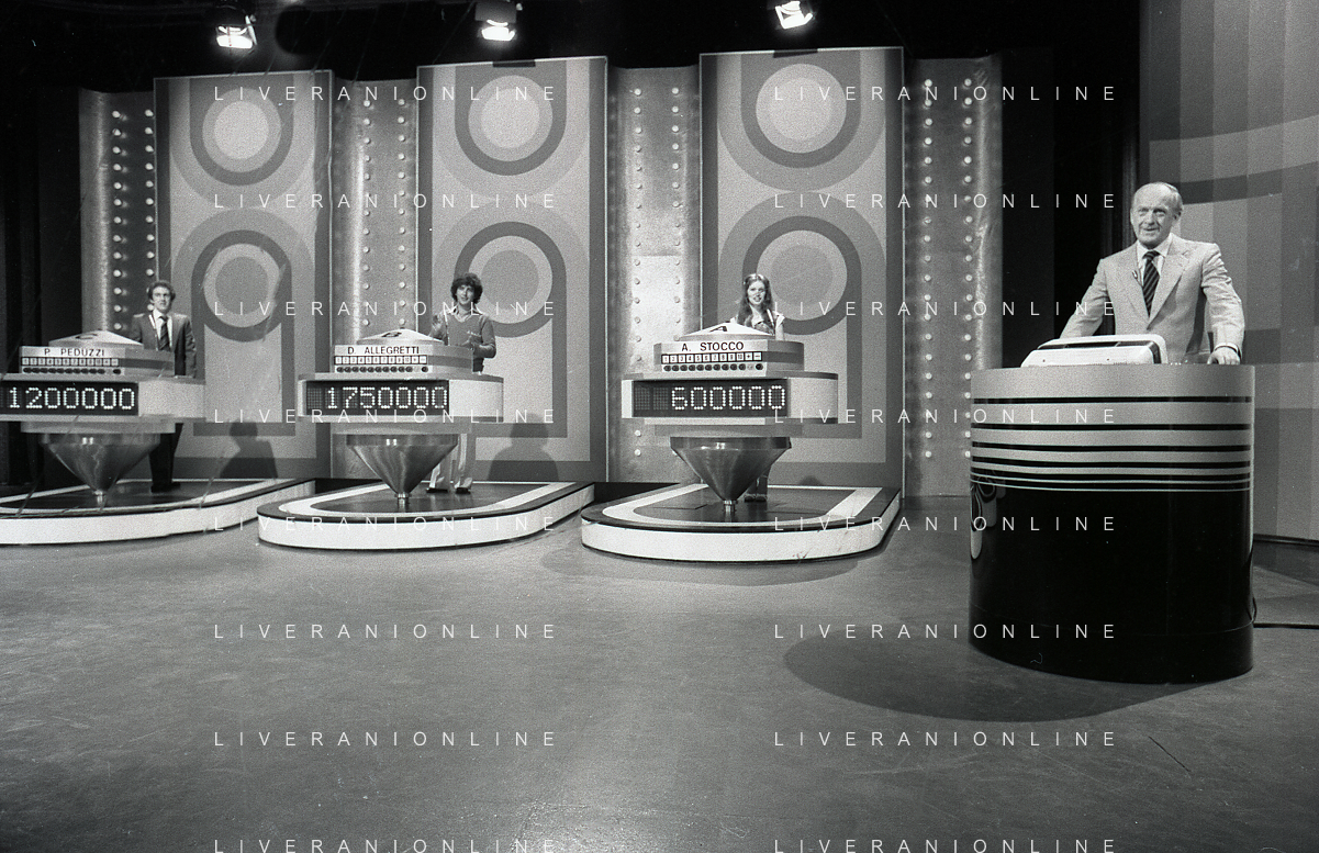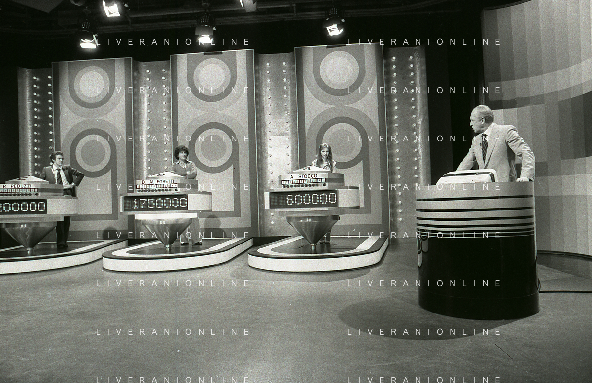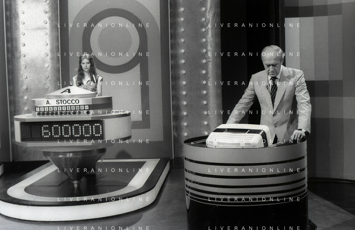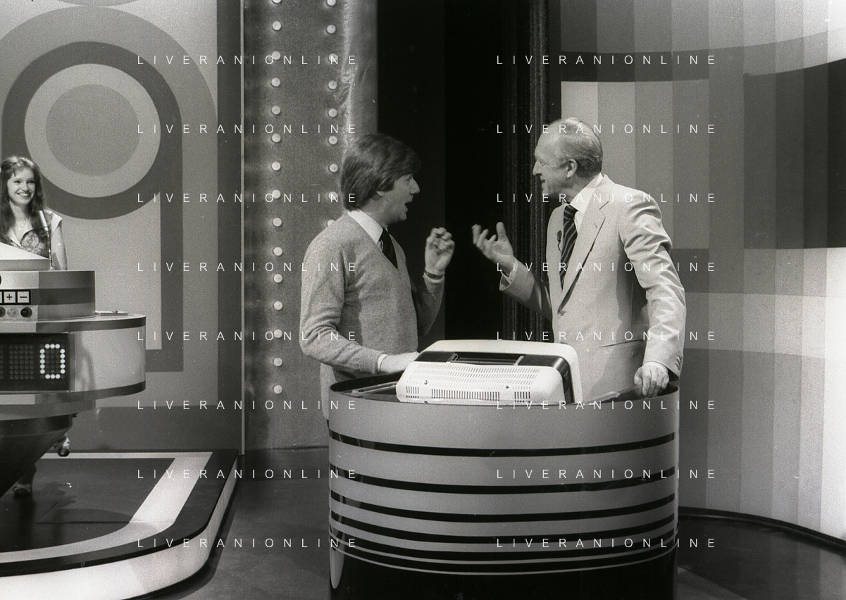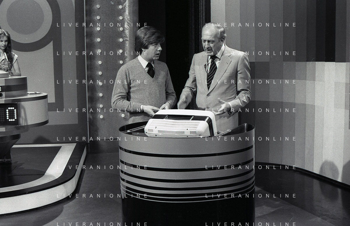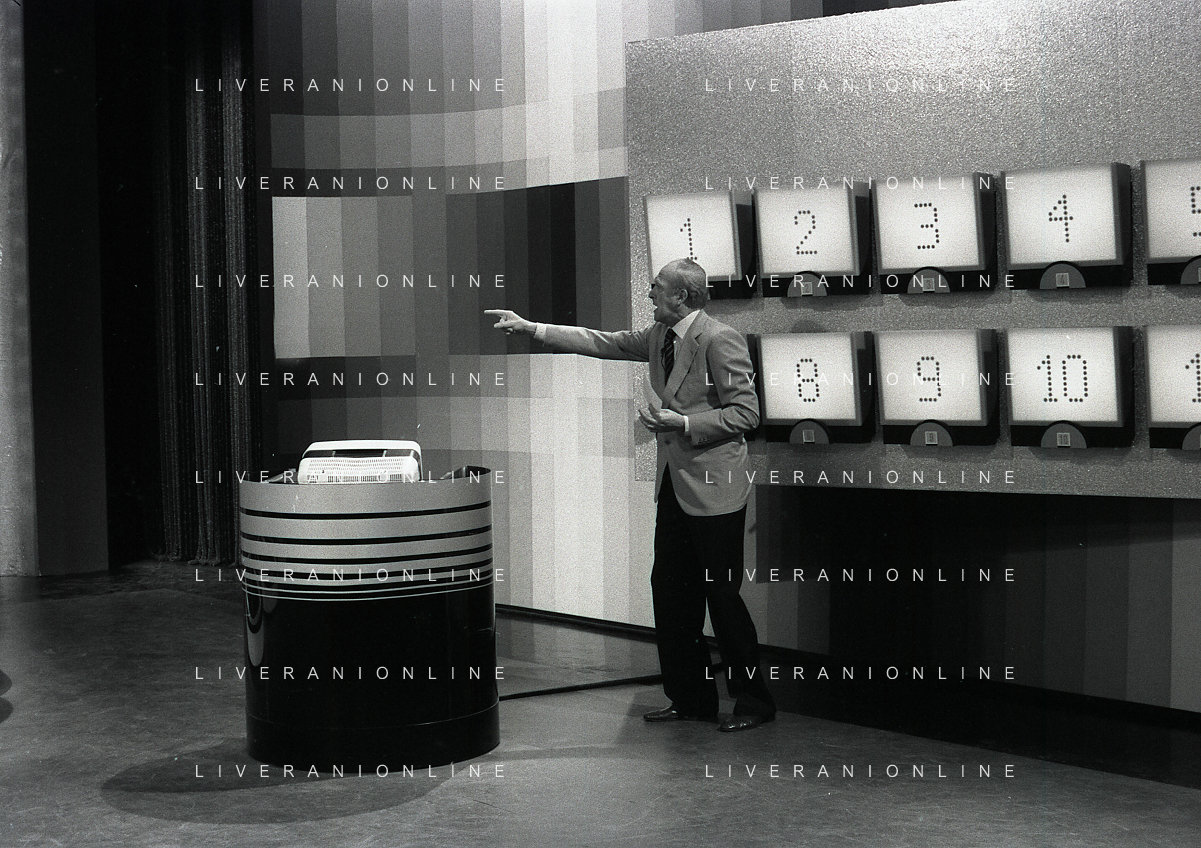 RETROSPETTIVA RAIMONDO VIANELLO E SANDRA MONDAINI ATTORI NELLA FOTO RAIMONDO VIANELLO NELLA TRASMISSIONE TELEVISIVA “SETTE E MEZZO “NELL'ANNO 1980 AG ALDO LIVERANI SAS
