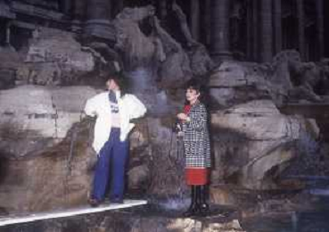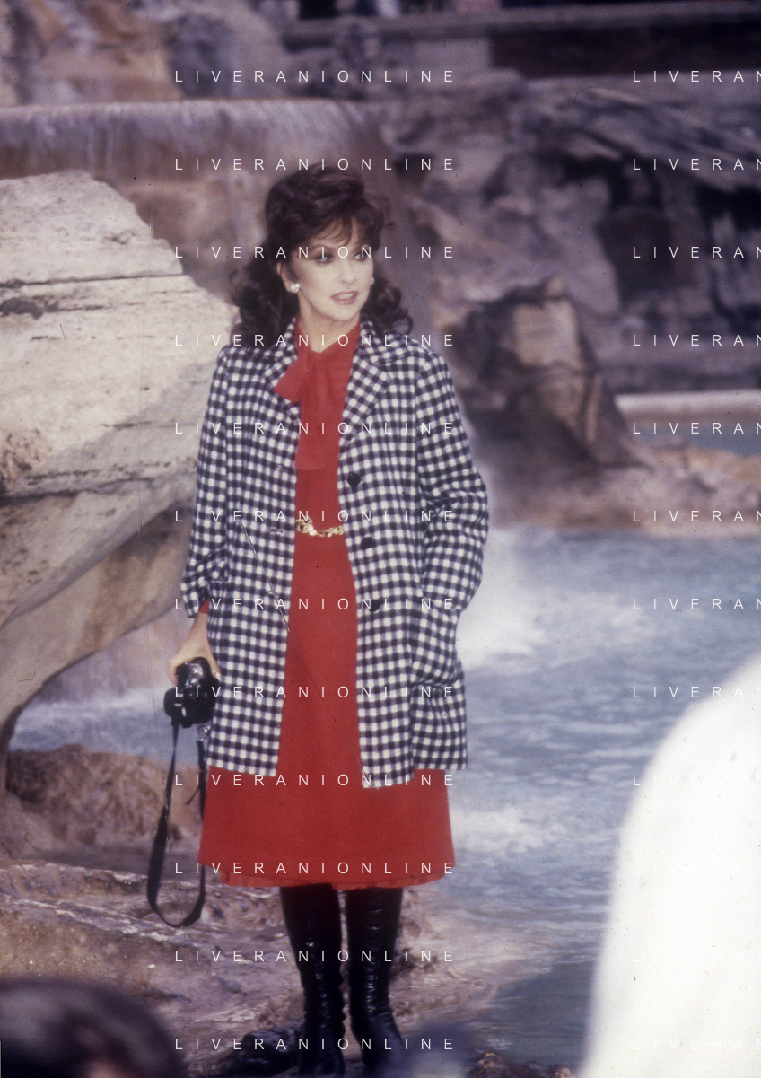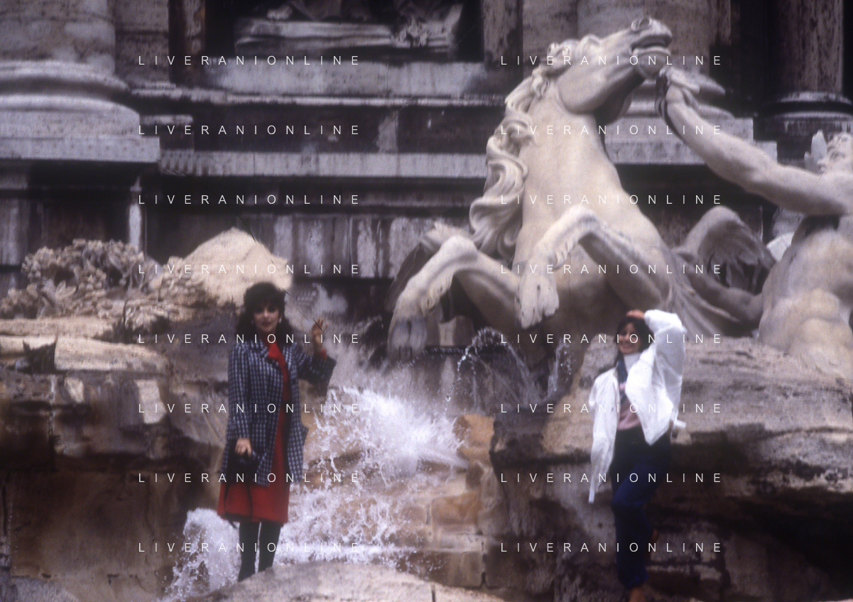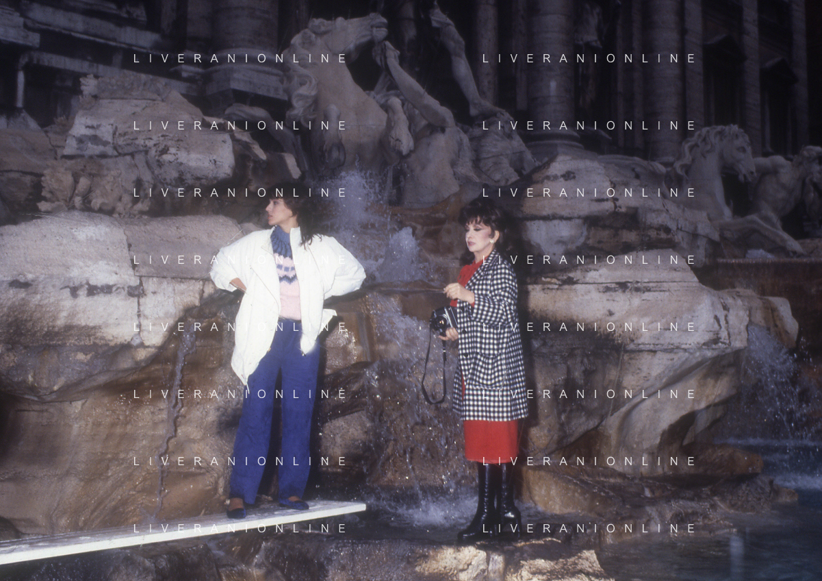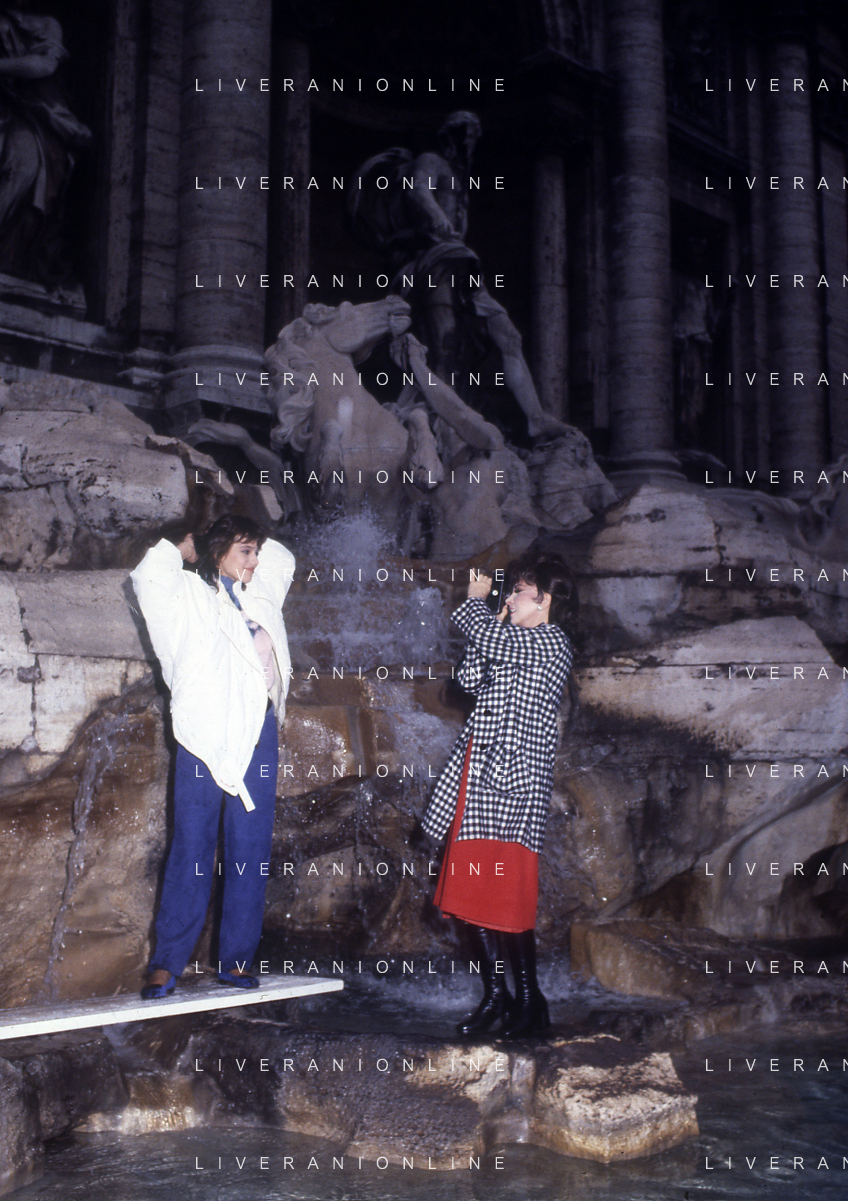 RETROSPETTIVA GINA LOLLOBRIGIDA ATTRICE NELLA FOTO GINA LOLLOBRIGIDA A ROMA CON ELISABETTA GARDINI SET FOTOGRAFICO ALLA FONTANA DI TREVI NELL'ANNO 1985 AG ALDO LIVERANI SAS