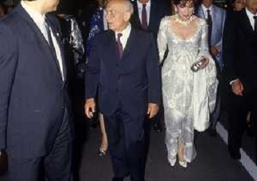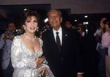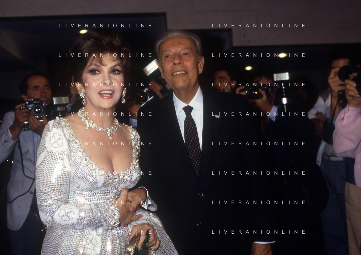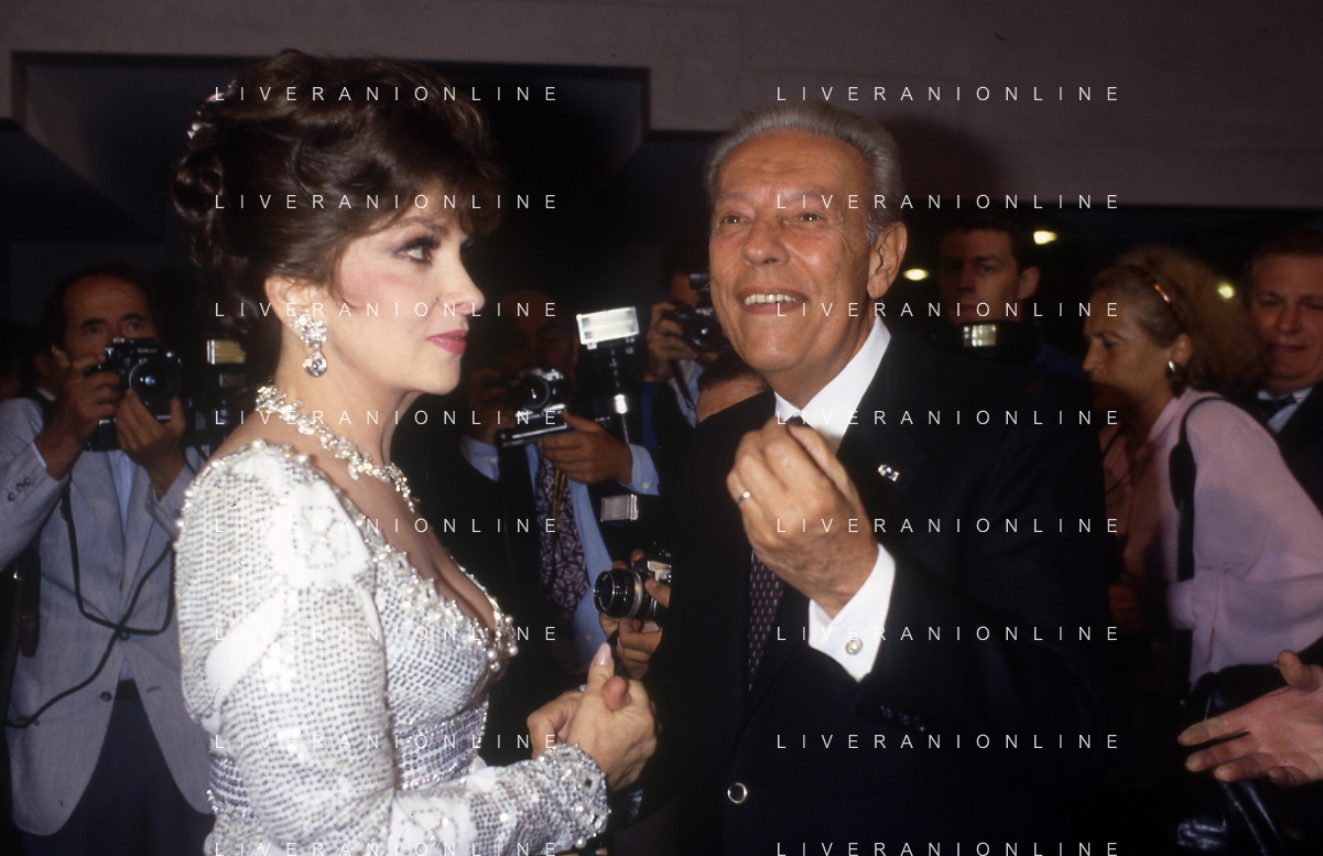 RETROSPETTIVA GINA LOLLOBRIGIDA ATTRICE NELLA FOTO GINA LOLLOBRIGIDA A VENEZIA NELL'ANNO 1986 CON GIAN LUIGI RONDI AG ALDO LIVERANI SAS