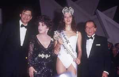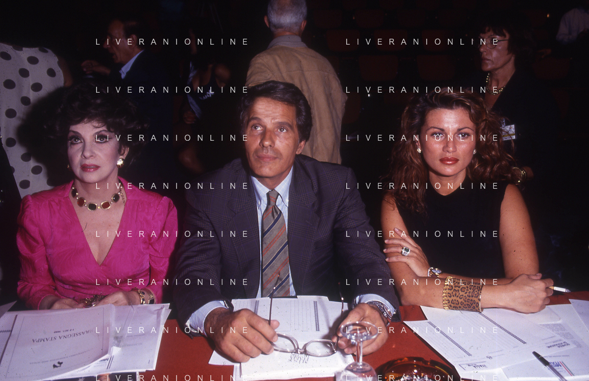 RETROSPETTIVA GINA LOLLOBRIGIDA ATTRICE NELLA FOTO GINA LOLLOBRIGIDA A SALSOMAGGIORE CONCORSO MISS ITALIA PRESIDE LA GIURIA CON FABRIZIO FRIZZI-GLORIA ZANIN E ENZO MIRIGLIANI AG ALDO LIVERANI SAS