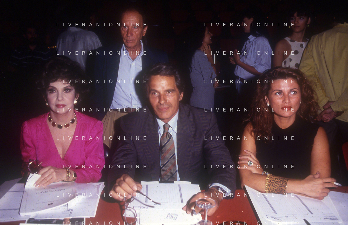 RETROSPETTIVA GINA LOLLOBRIGIDA ATTRICE NELLA FOTO GINA LOLLOBRIGIDA A SALSOMAGGIORE CONCORSO MISS ITALIA PRESIDE LA GIURIA CON GIULIANO GEMMA E SERENA GRANDI AG ALDO LIVERANI SAS