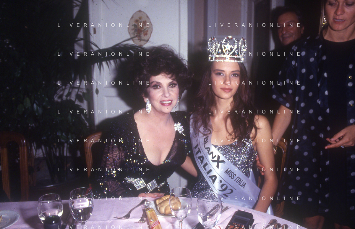 RETROSPETTIVA GINA LOLLOBRIGIDA ATTRICE NELLA FOTO GINA LOLLOBRIGIDA A SALSOMAGGIORE CONCORSO MISS ITALIA PRESIDE LA GIURIA CON GLORIA ZANIN AG ALDO LIVERANI SAS