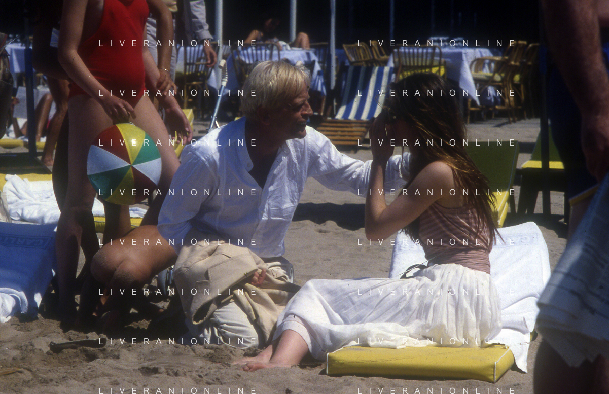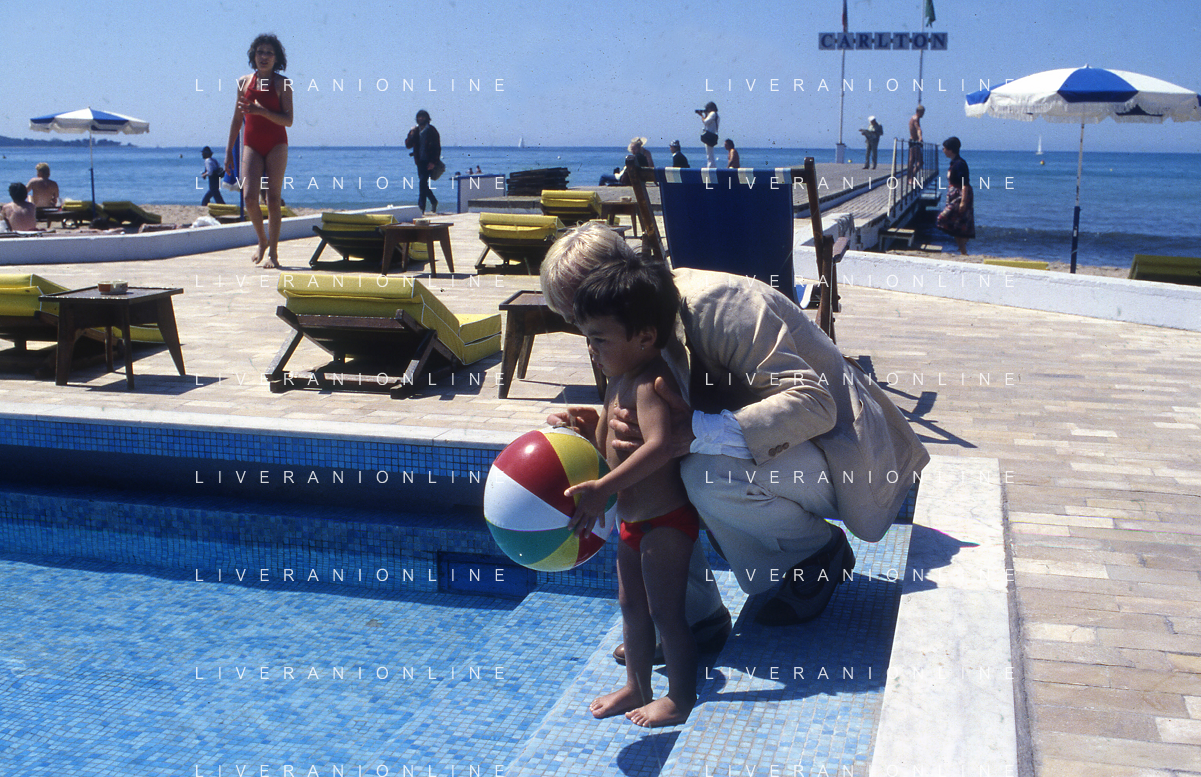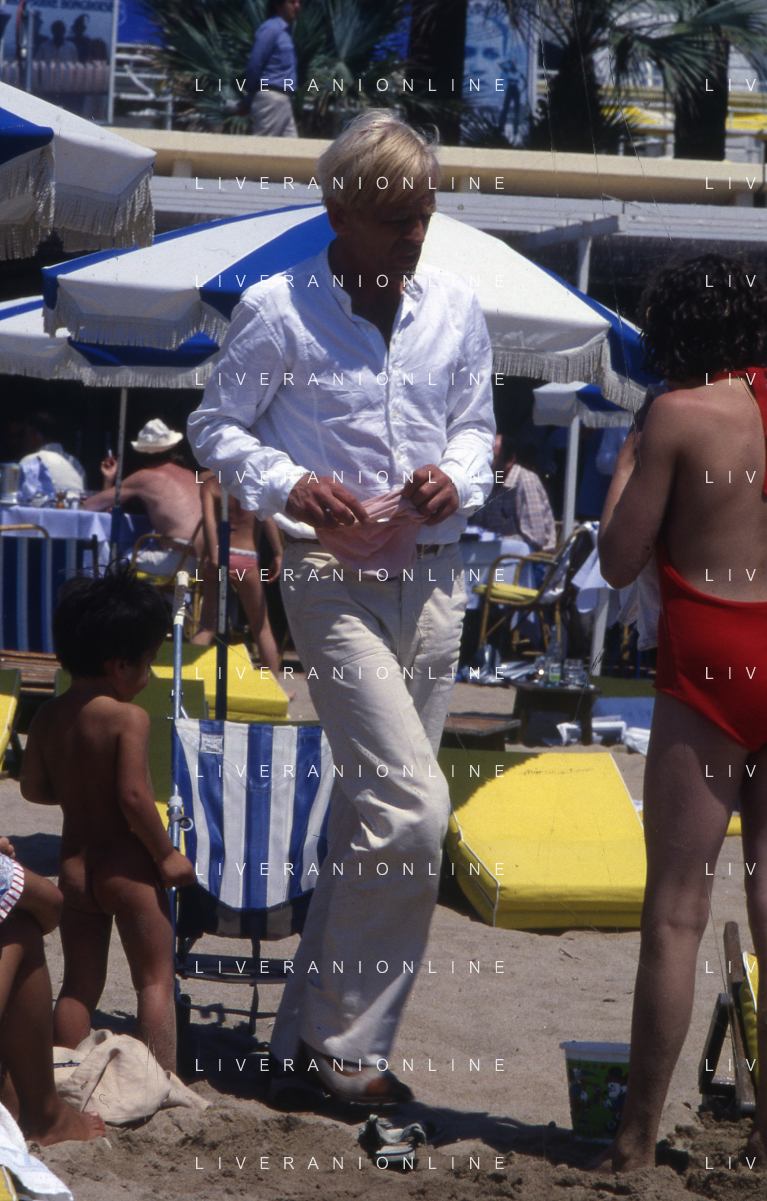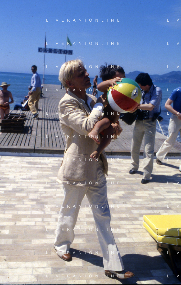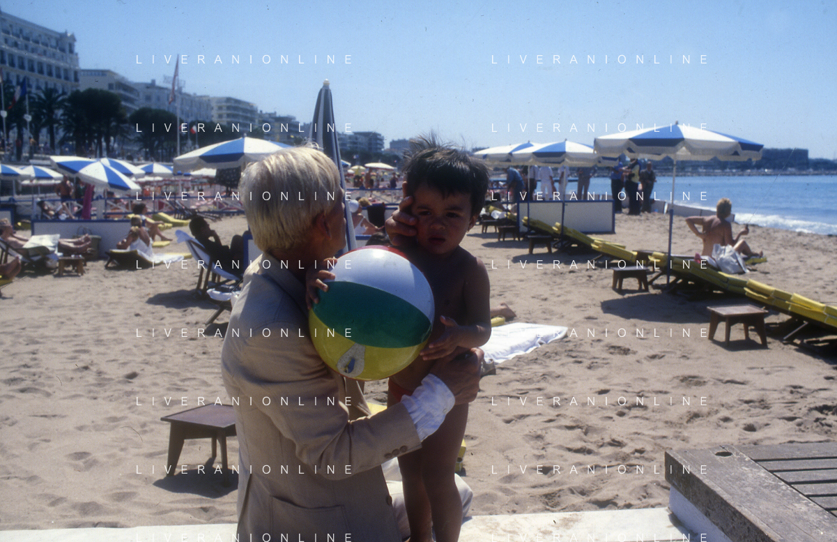 RETROSPETTIVA KLAUS KINSKI ATTORE NELLA FOTO KLAUS KINSKI A CANNES NELL'ANNO 1980 CON LA FAMIGLIA IN SPIAGGIA FOTO ENRICO LIVERANI-AG ALDO LIVERANI SAS