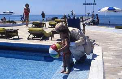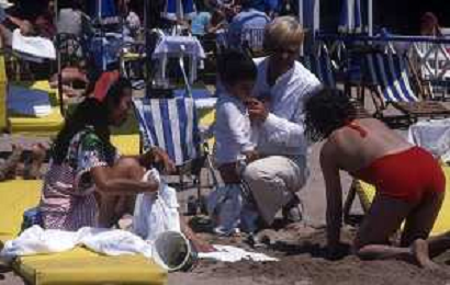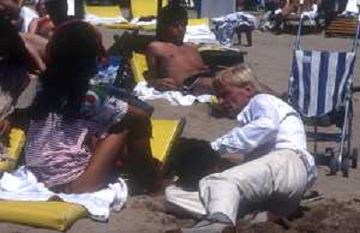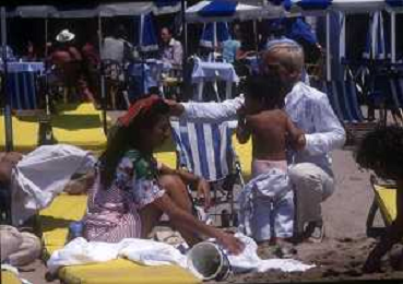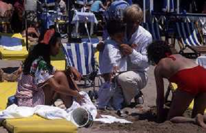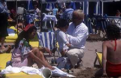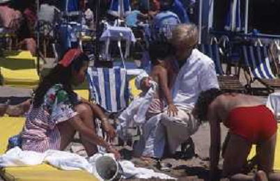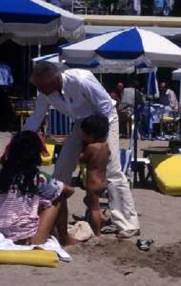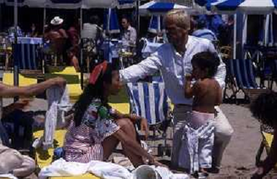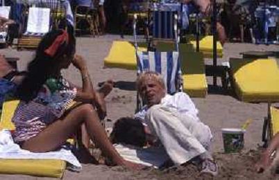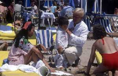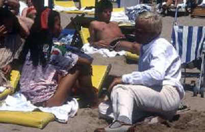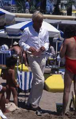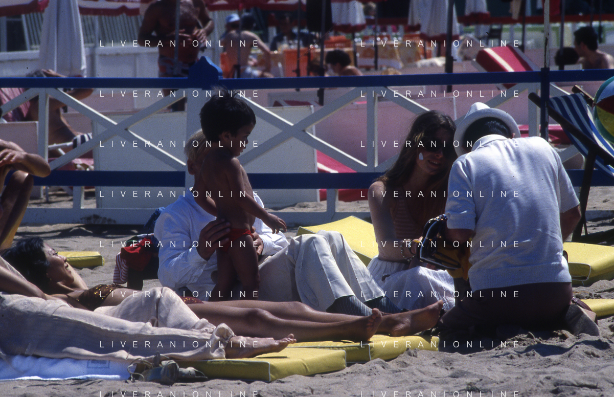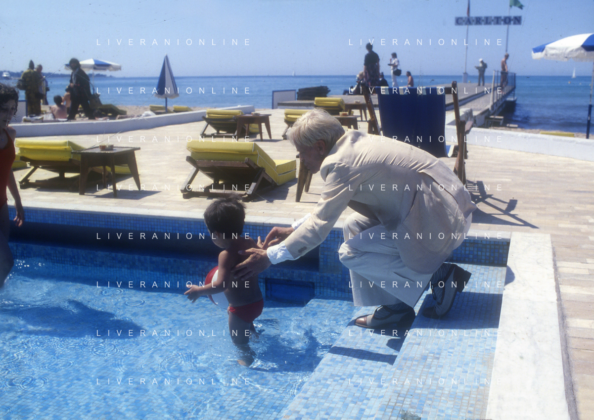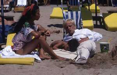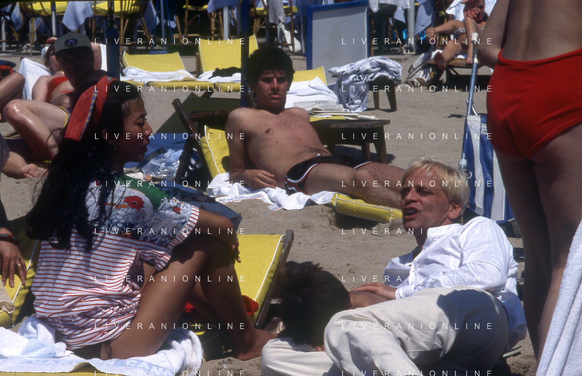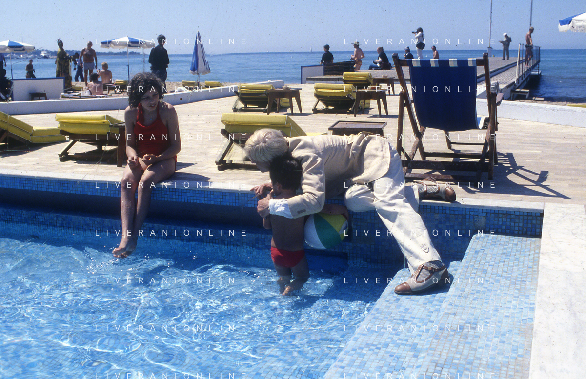 RETROSPETTIVA KLAUS KINSKI ATTORE NELLA FOTO KLAUS KINSKI A CANNES NELL'ANNO 1980 CON LA FAMIGLIA IN SPIAGGIA FOTO ENRICO LIVERANI-AG ALDO LIVERANI SAS