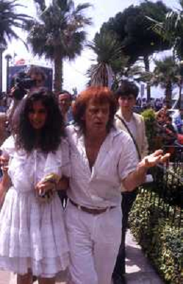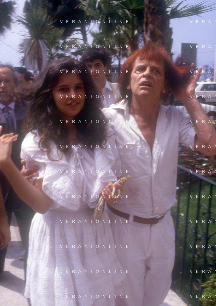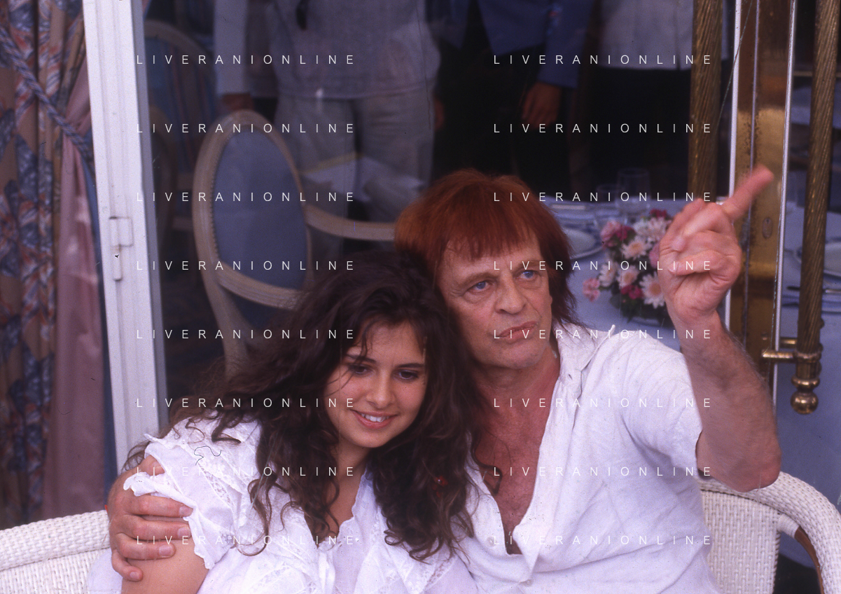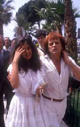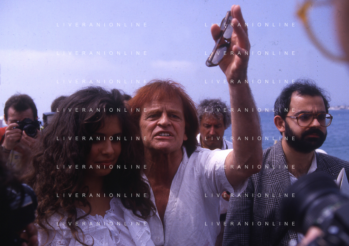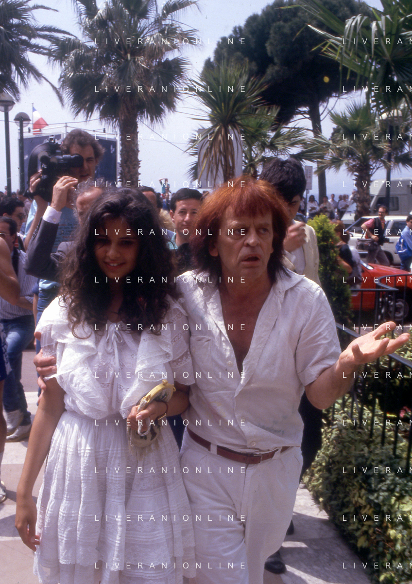 RETROSPETTIVA KLAUS KINSKI ATTORE NELLA FOTO KLAUS KINSKI A CANNES NELL'ANNO 1988 CON DEBORA CAPRIOGLIO AG ALDO LIVERANI SAS