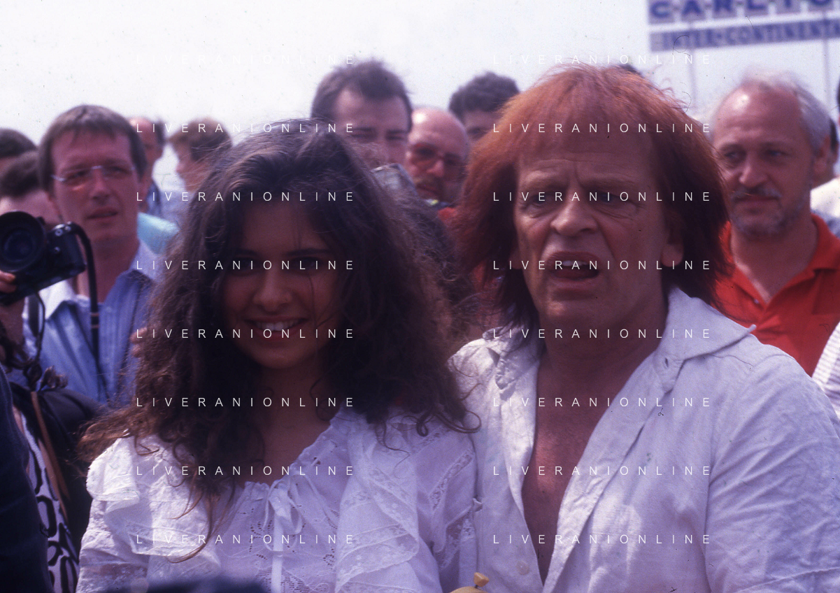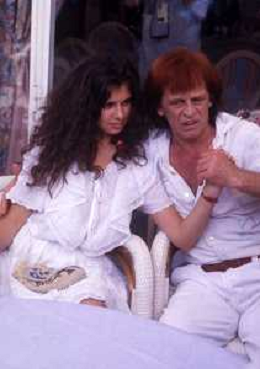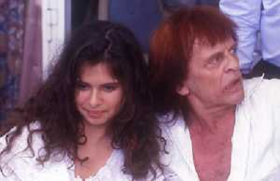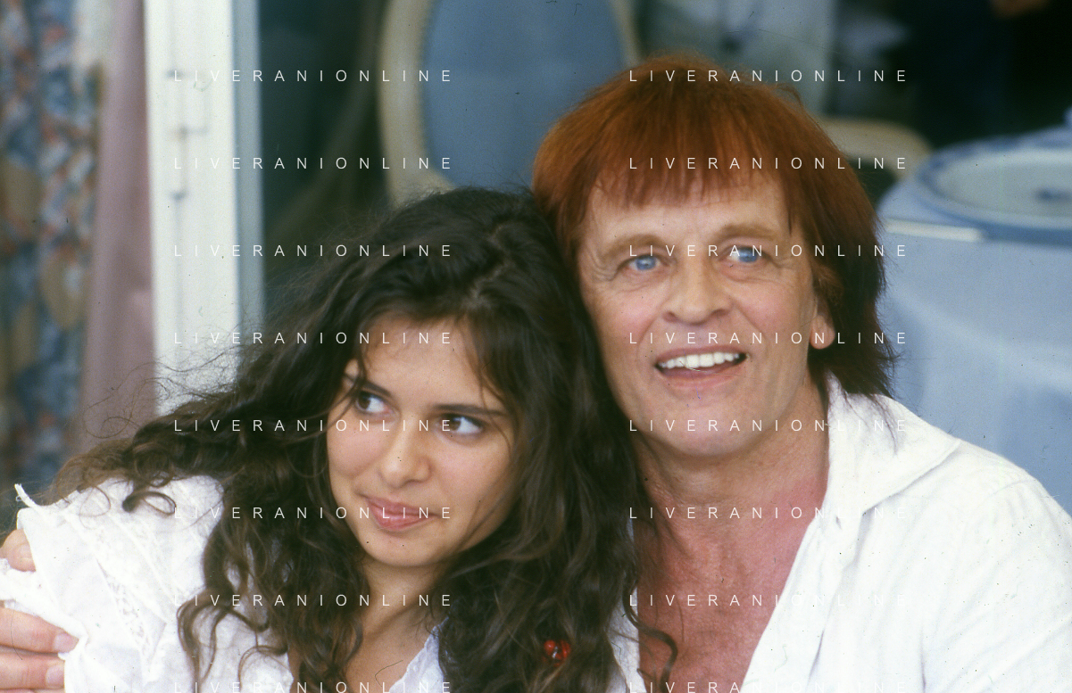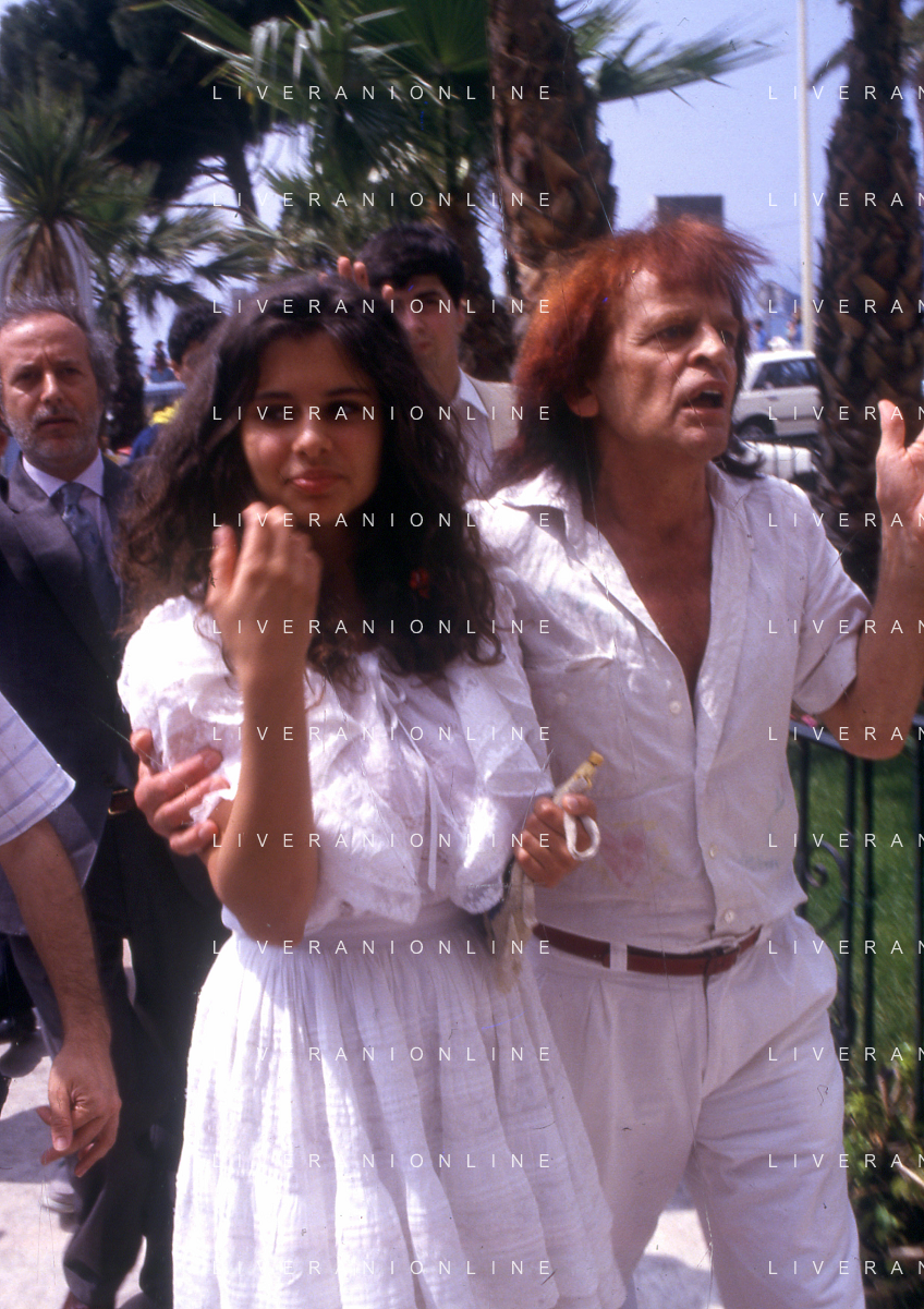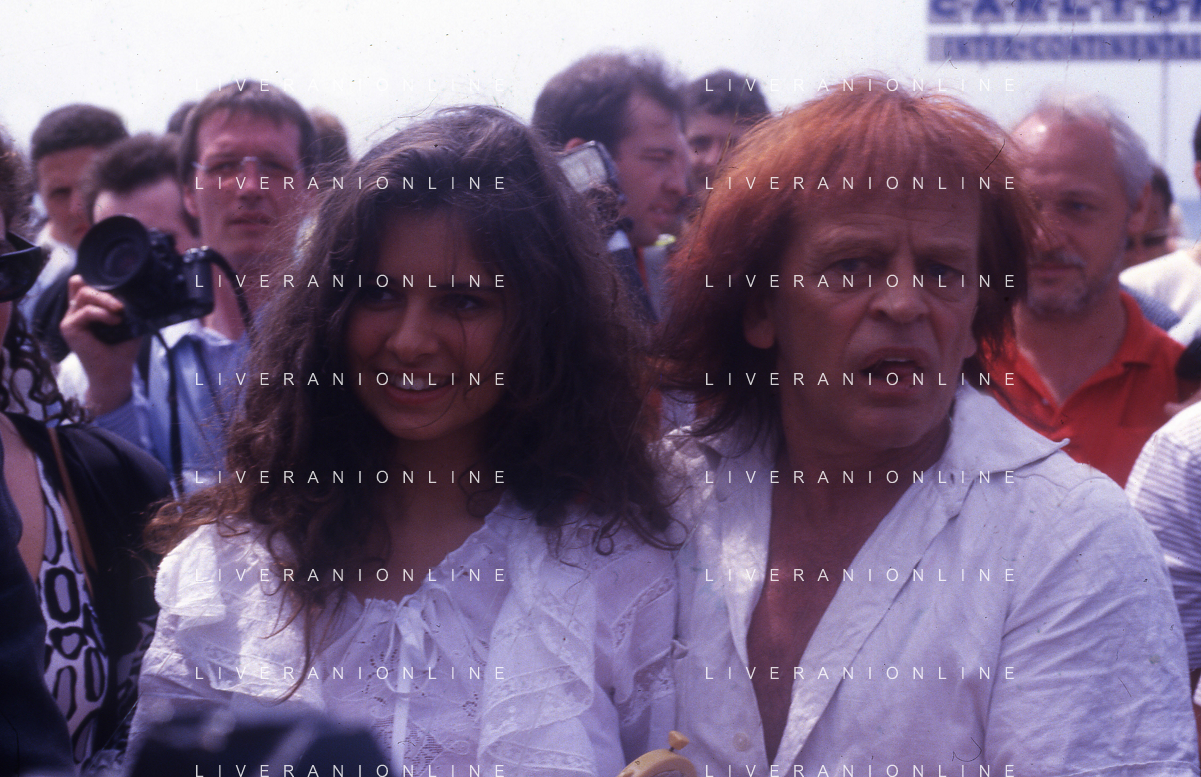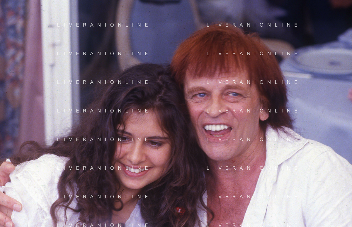 RETROSPETTIVA KLAUS KINSKI ATTORE NELLA FOTO KLAUS KINSKI A CANNES NELL'ANNO 1988 CON DEBORA CAPRIOGLIO AG ALDO LIVERANI SAS