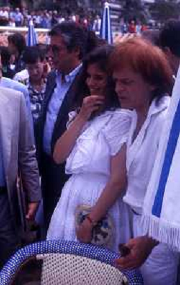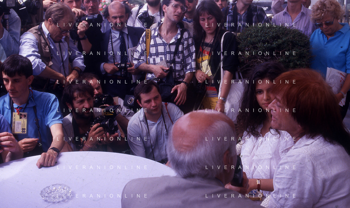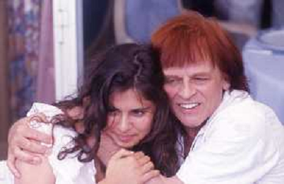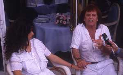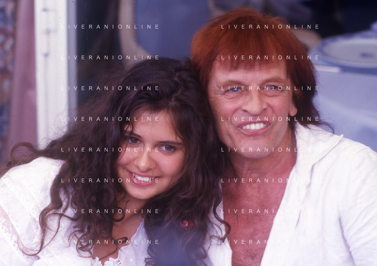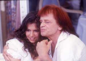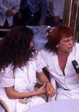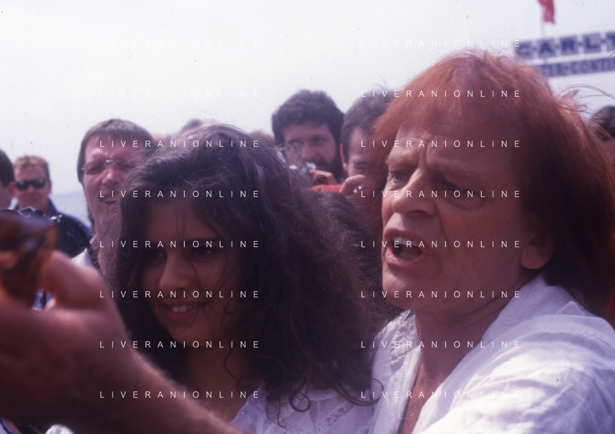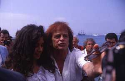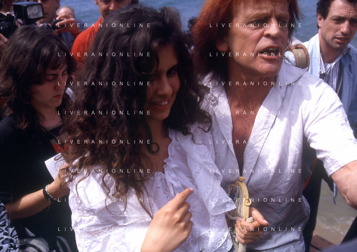 RETROSPETTIVA KLAUS KINSKI ATTORE NELLA FOTO KLAUS KINSKI A CANNES NELL'ANNO 1988 CON DEBORA CAPRIOGLIO AG ALDO LIVERANI SAS
