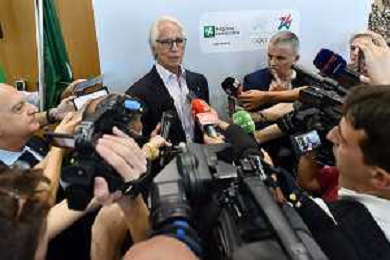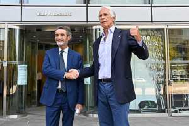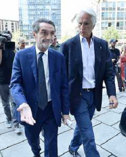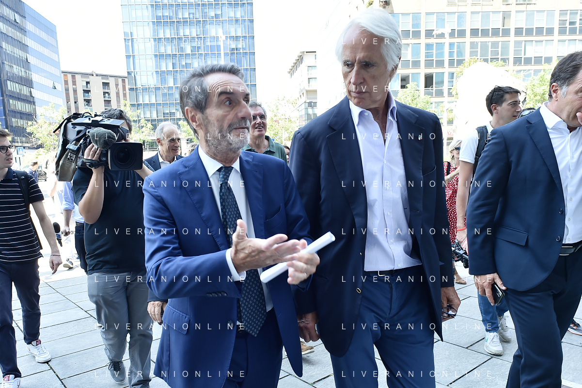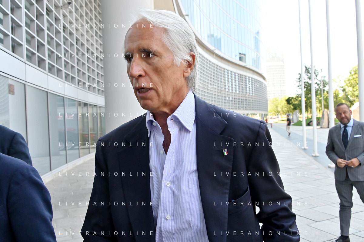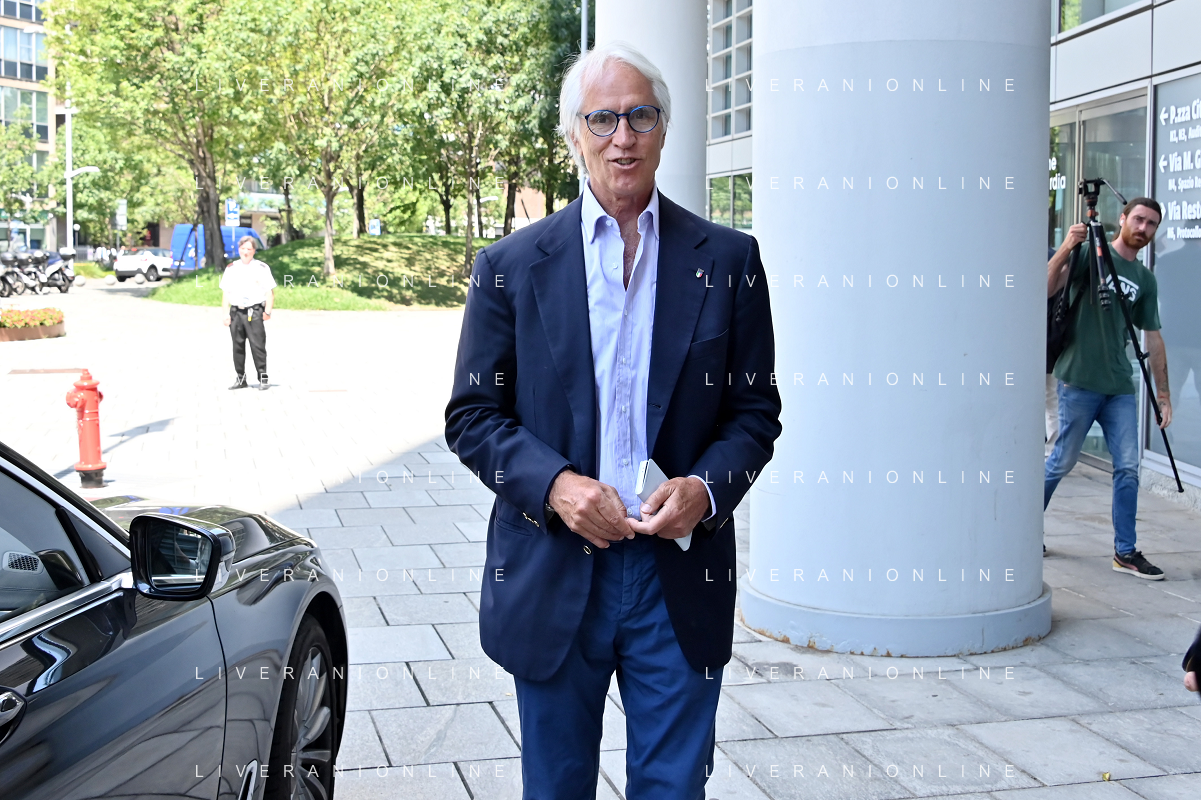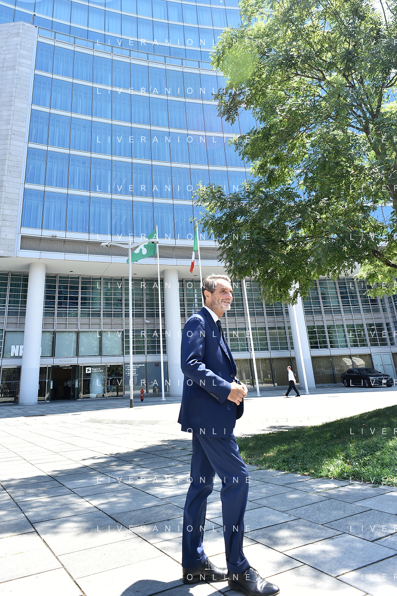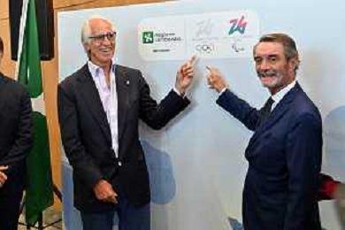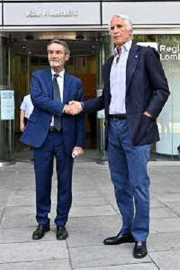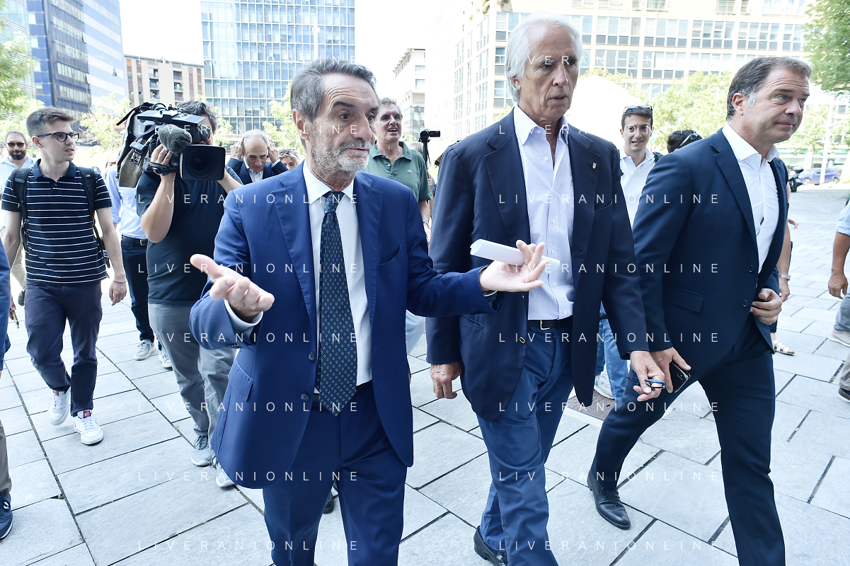 © TVRG Vetrofanie olimpiche Regione Lombardia nella foto da SX Antonio Rossi, Giovanni Malago' e Attilio Fontana Milano 27-07-2022 Incontro tra il presidente di Regione Lombardia, Attilio Fontana, e il presidente del CONI, Giovanni Malago', per fare il punto sui Giochi Olimpici invernali Milano-Cortina 2026 e per mostrare le vetrofanie olimpiche che caratterizzano le facciate di Palazzo Lombardia foto Roberto Garavaglia/ag. Aldo Liverani sas/AGENZIA ALDO LIVERANI SAS