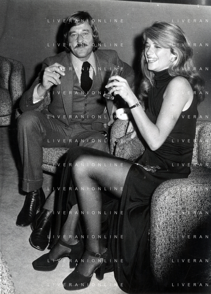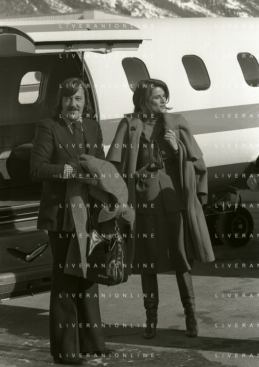 RETROSPETTIVA CHARLOTTE RAMPLING ATTRICE NELLA FOTO CHARLOTTE RAMPLING CON IL MARITO BRYAN SOUTHCOMBE NELL'ANNO 1975 A SAINT MORITZ AG ALDO LIVERANI SAS