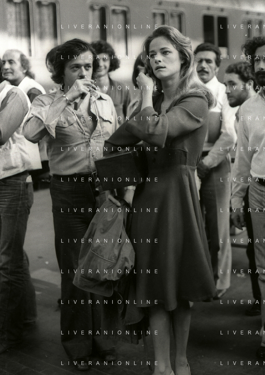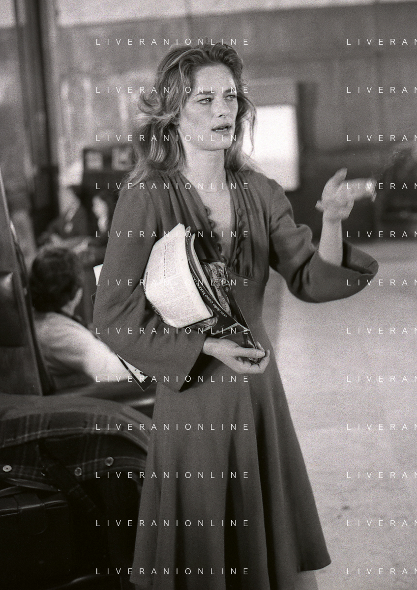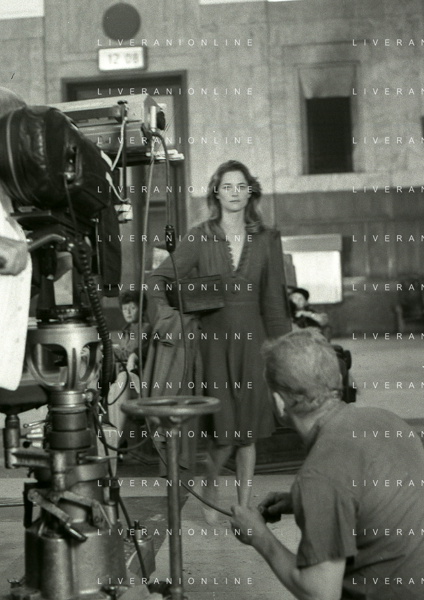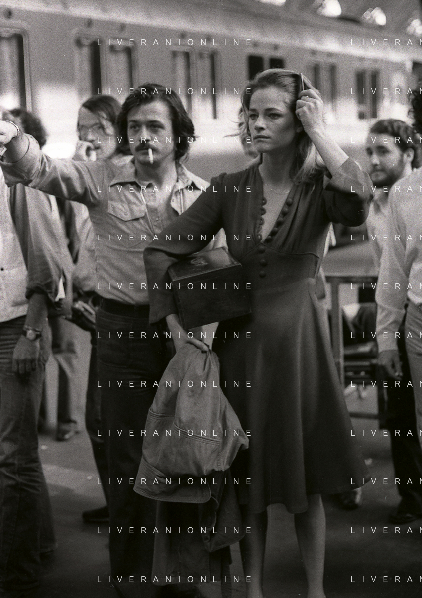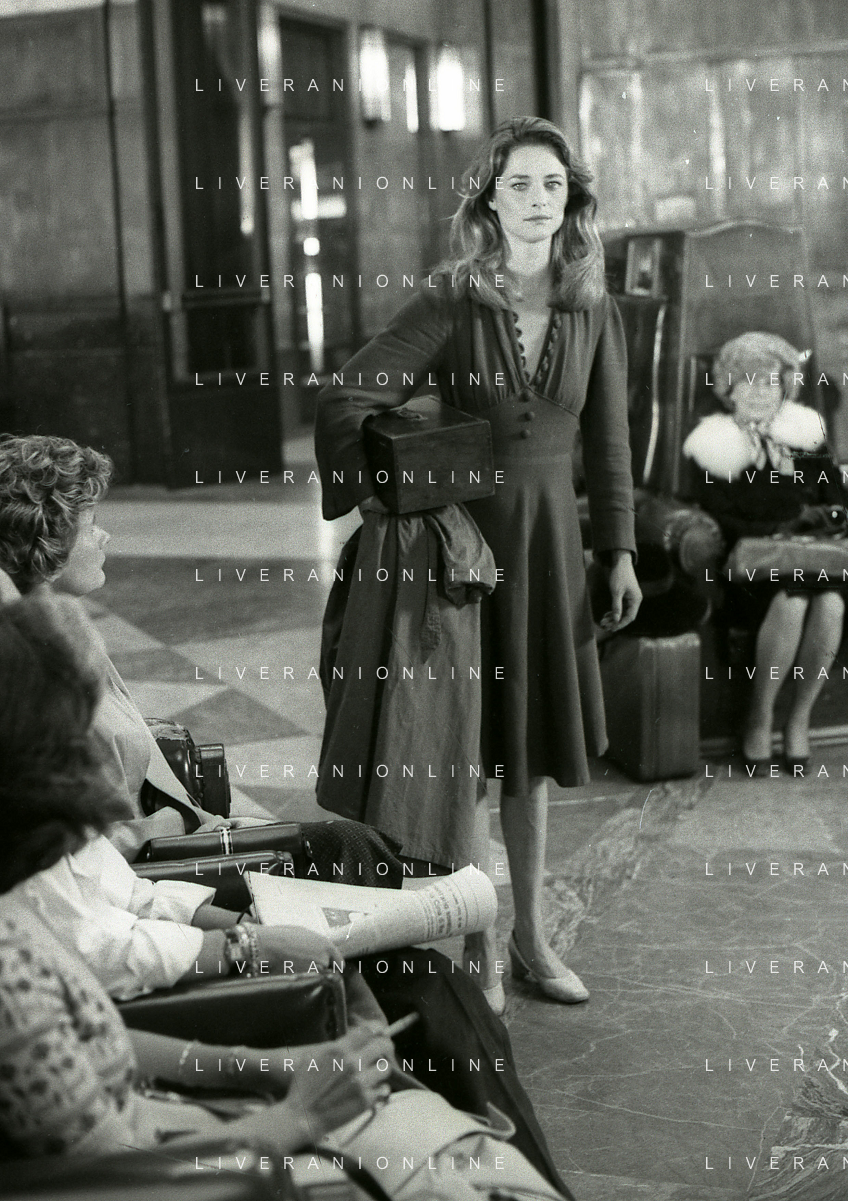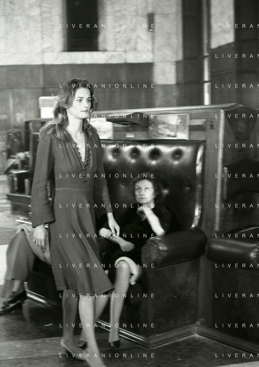 RETROSPETTIVA CHARLOTTE RAMPLING ATTRICE NELLA FOTO CHARLOTTE RAMPLING SU UN SET DEL FILM IN STAZIONE CENTRALE A MILANO NELL'ANNO 1974 AG ALDO LIVERANI SAS