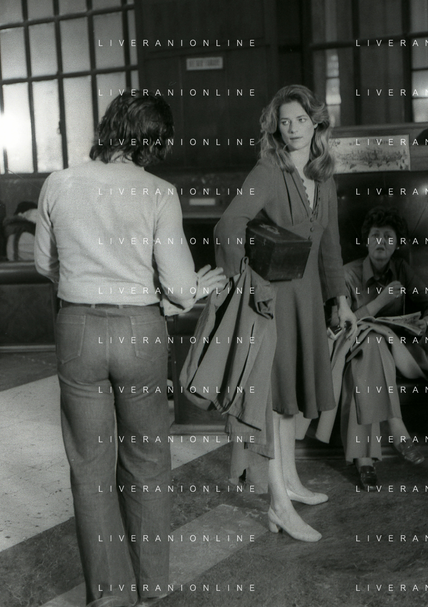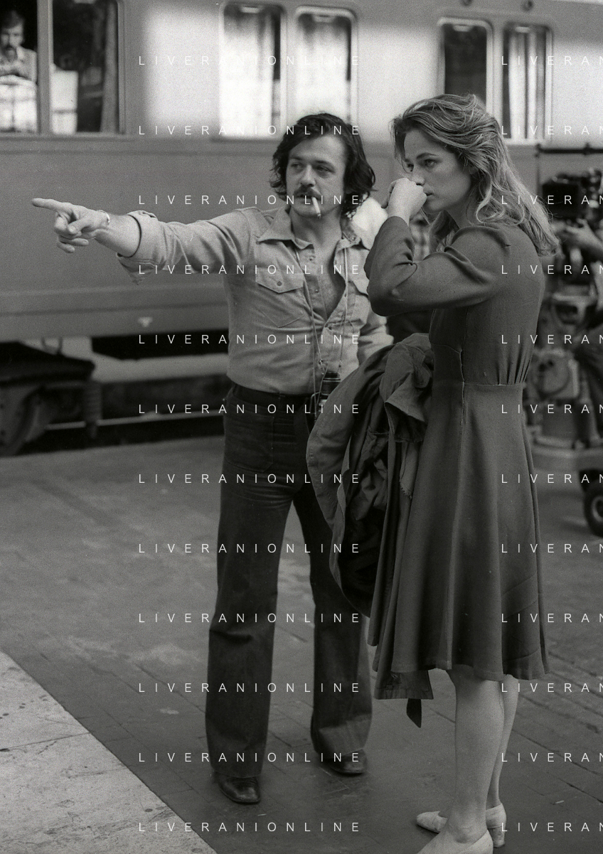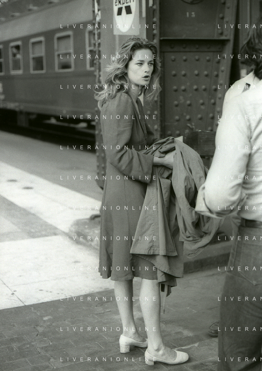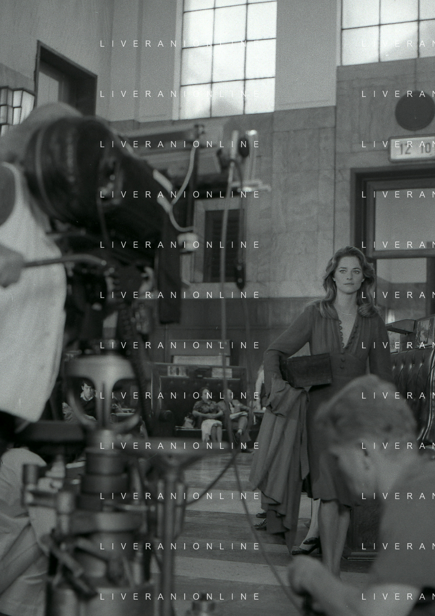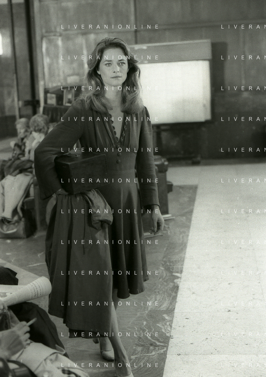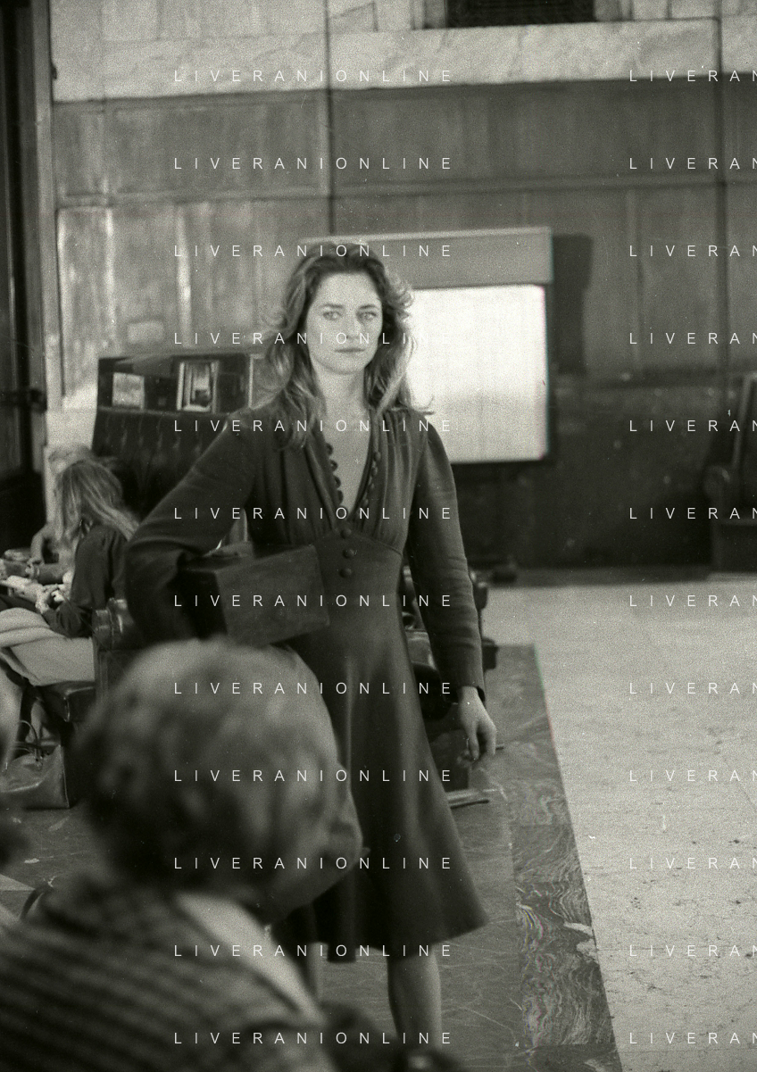 RETROSPETTIVA CHARLOTTE RAMPLING ATTRICE NELLA FOTO CHARLOTTE RAMPLING SU UN SET DEL FILM IN STAZIONE CENTRALE A MILANO NELL'ANNO 1974 AG ALDO LIVERANI SAS