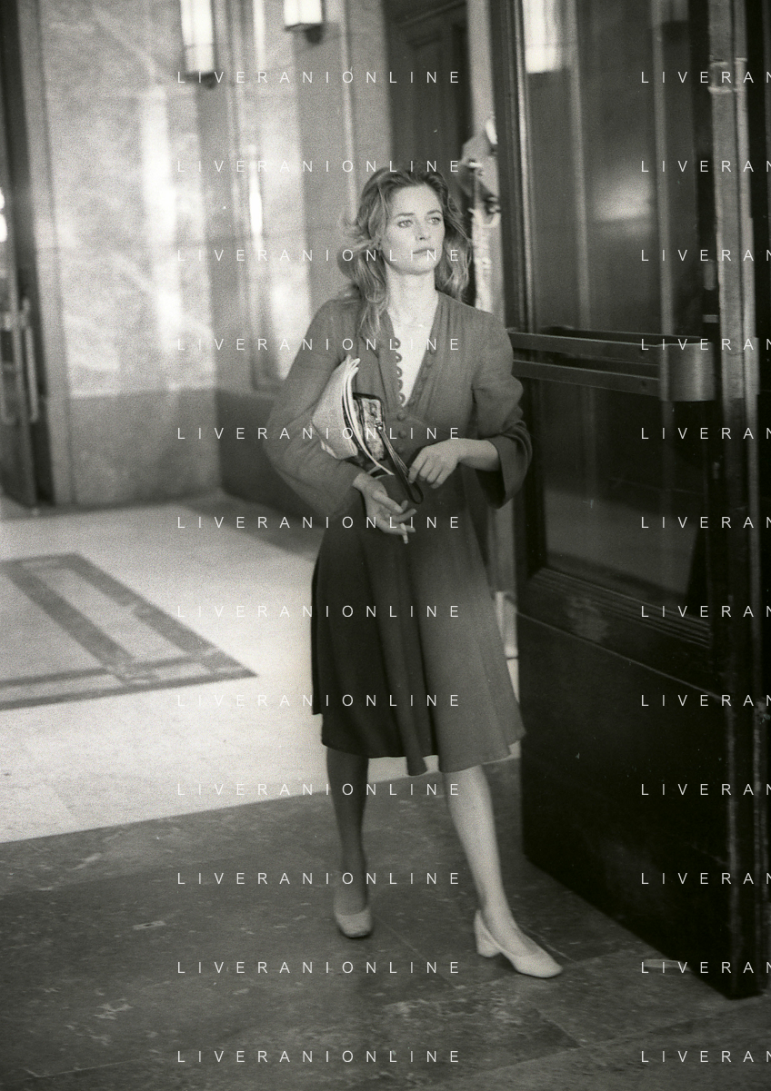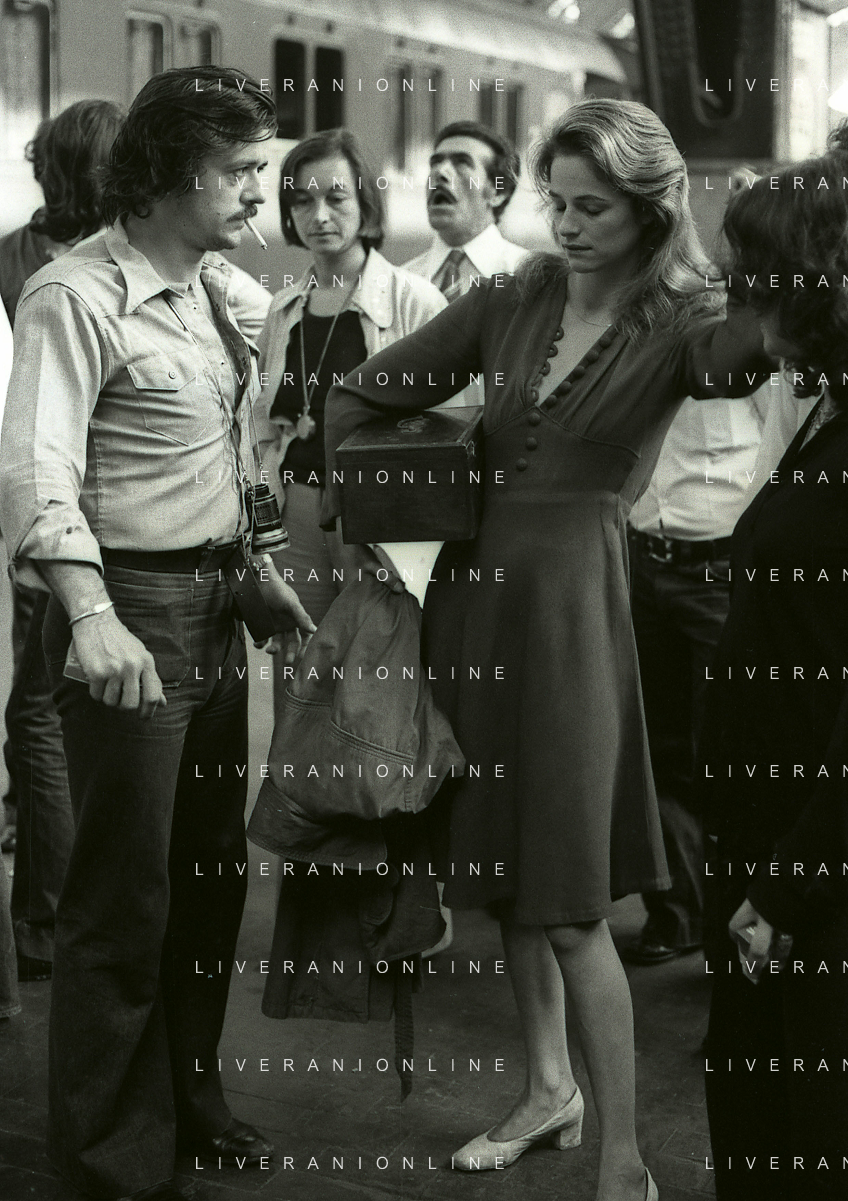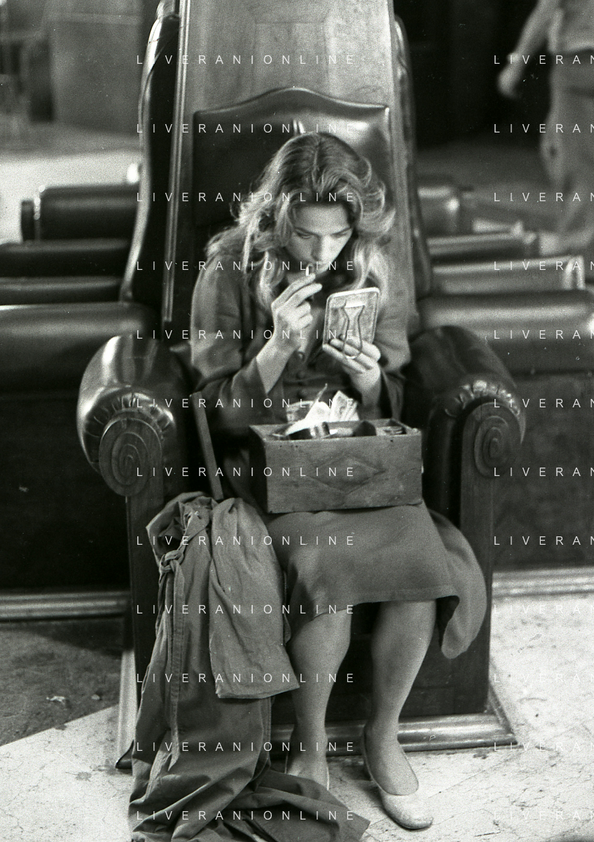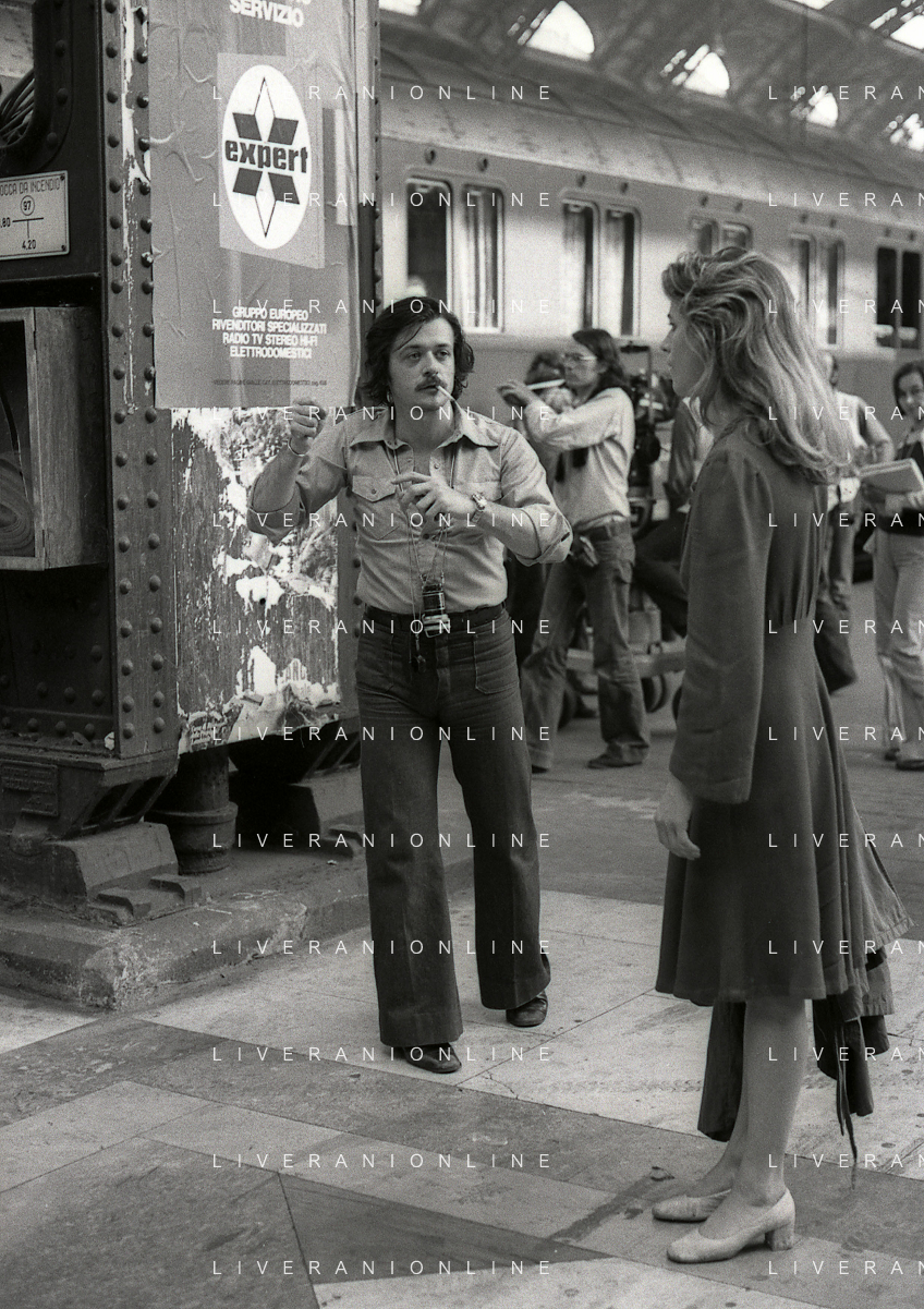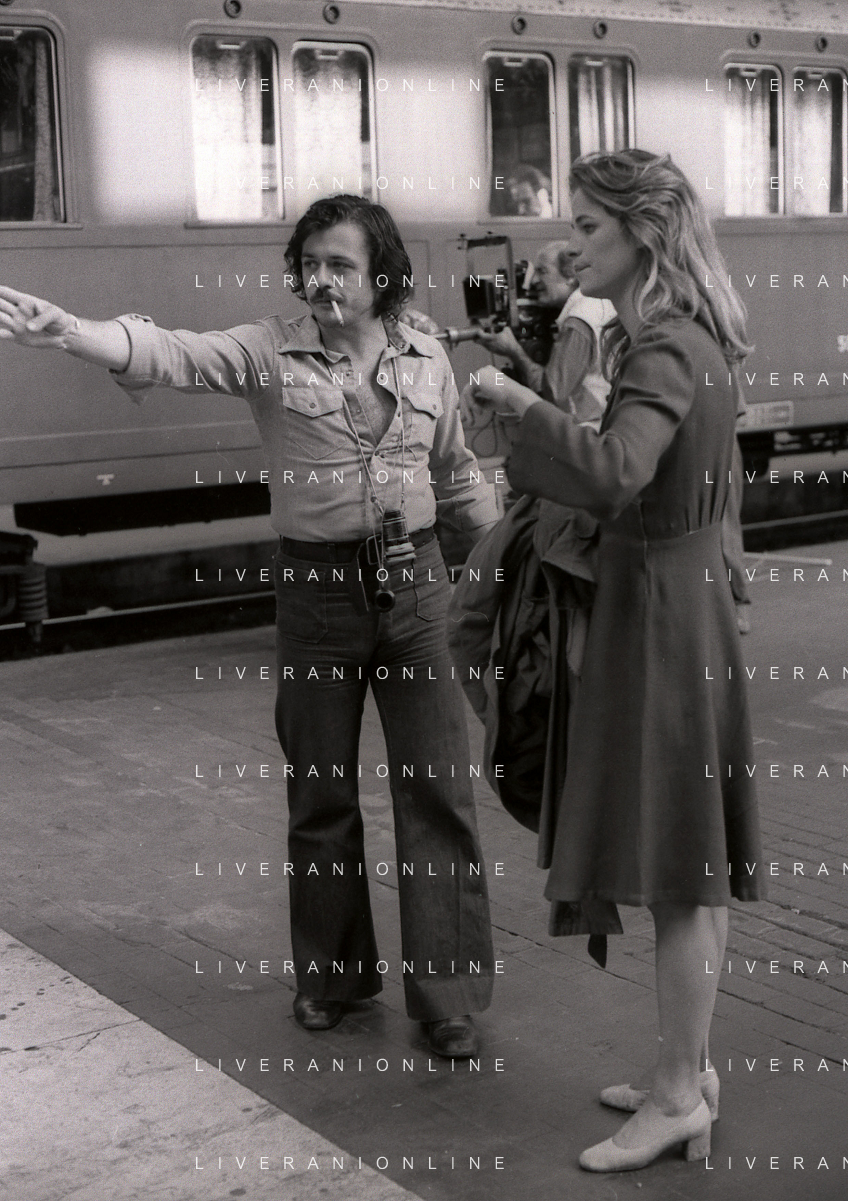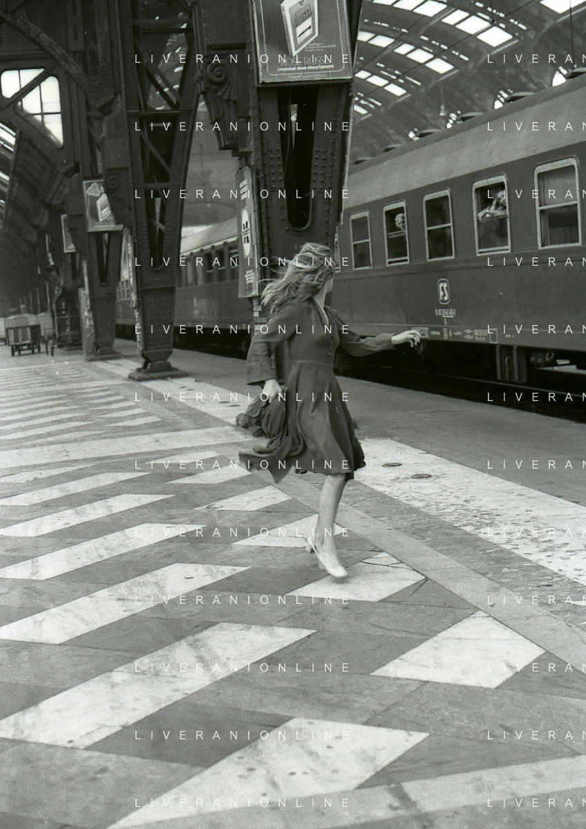 RETROSPETTIVA CHARLOTTE RAMPLING ATTRICE NELLA FOTO CHARLOTTE RAMPLING SU UN SET DEL FILM IN STAZIONE CENTRALE A MILANO NELL'ANNO 1974 AG ALDO LIVERANI SAS