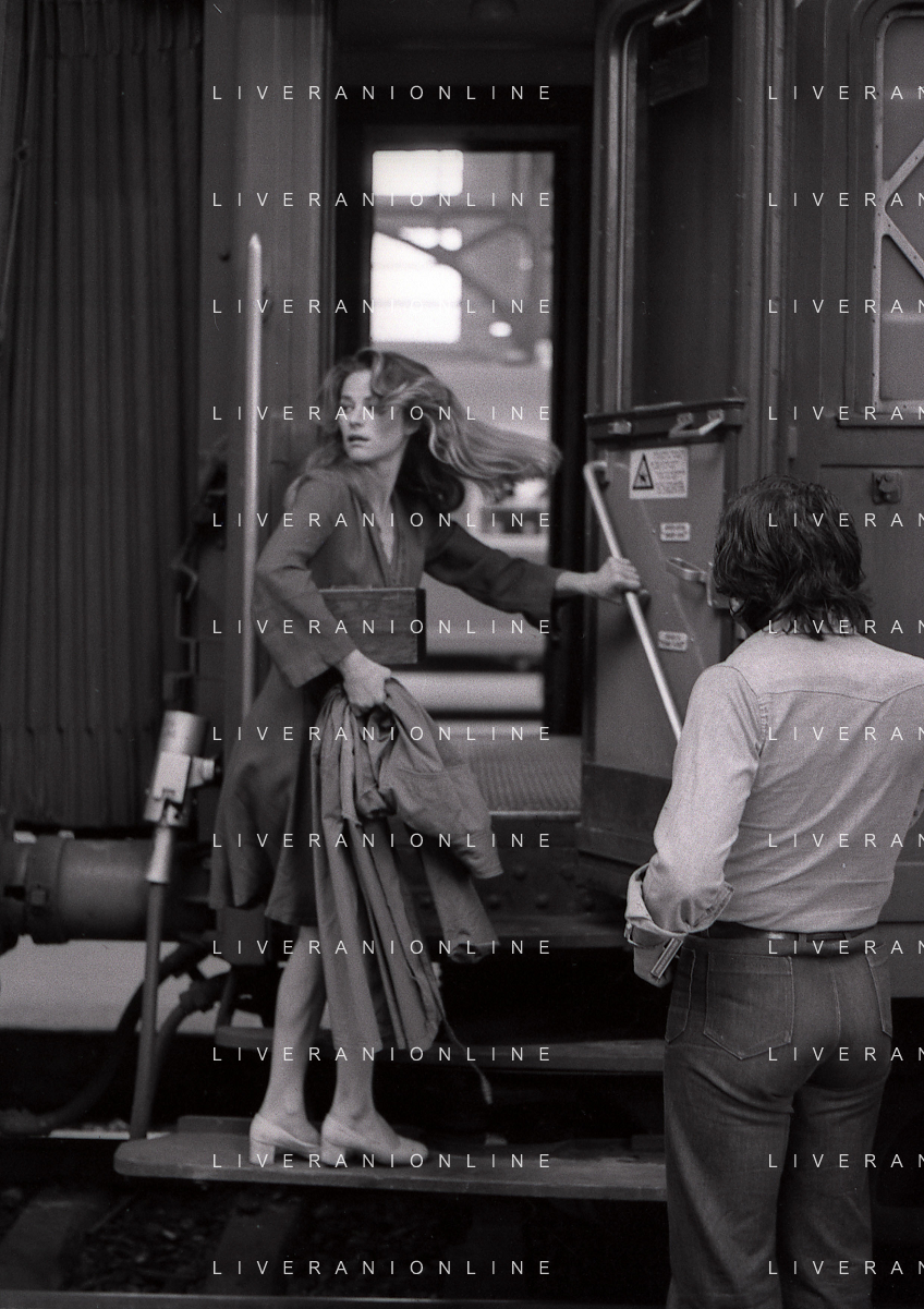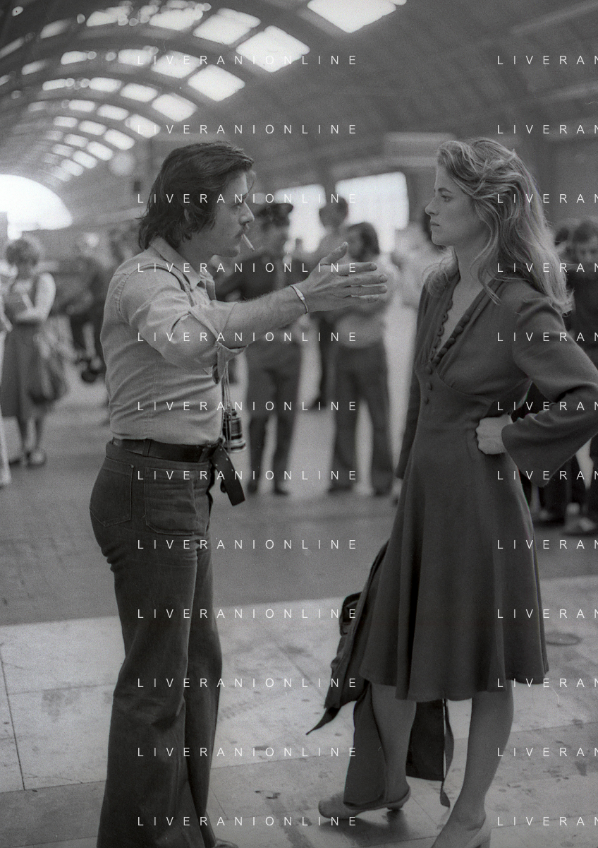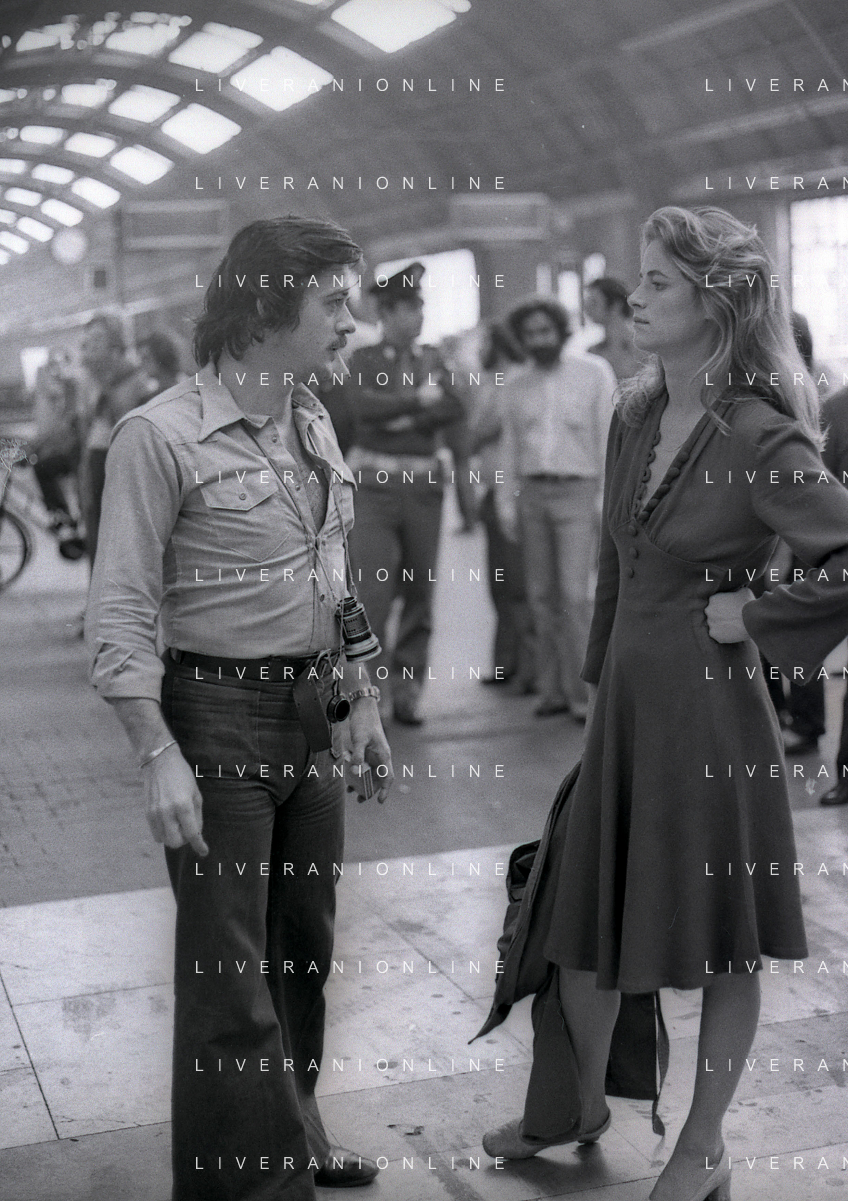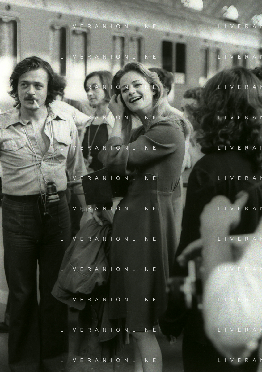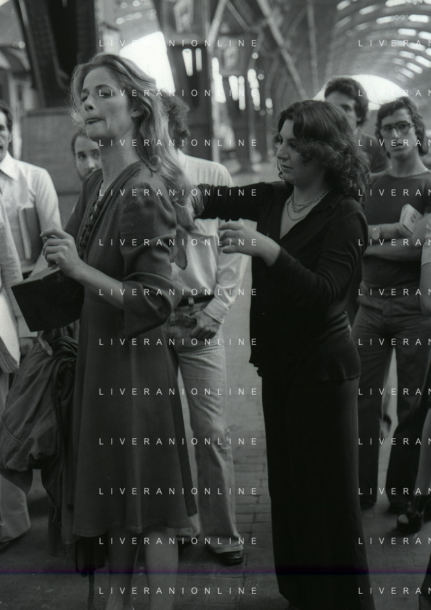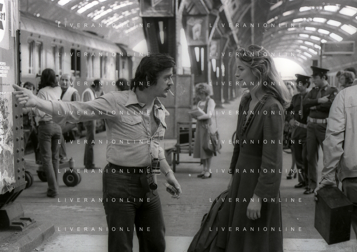 RETROSPETTIVA CHARLOTTE RAMPLING ATTRICE NELLA FOTO CHARLOTTE RAMPLING SU UN SET DEL FILM IN STAZIONE CENTRALE A MILANO NELL'ANNO 1974 AG ALDO LIVERANI SAS