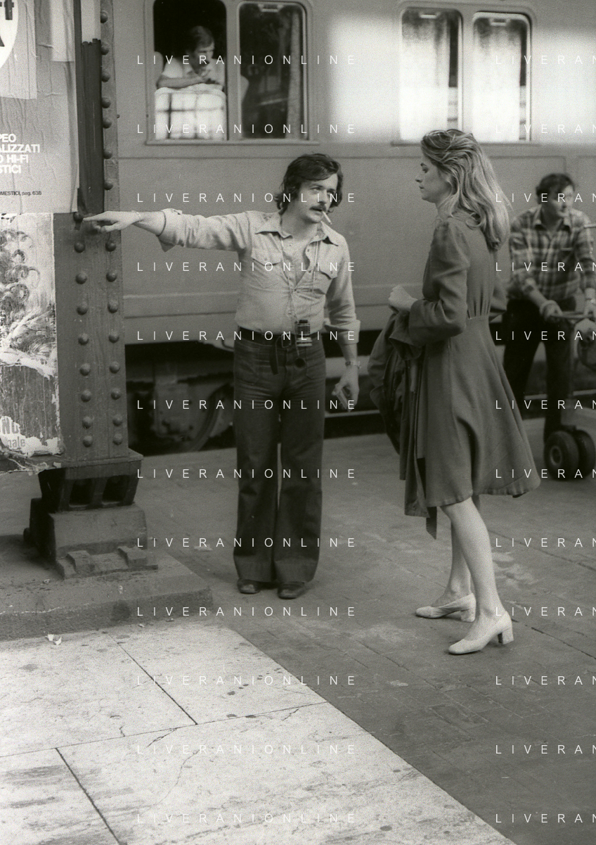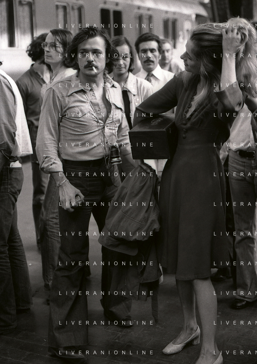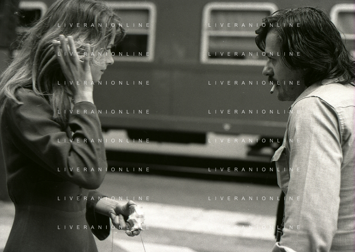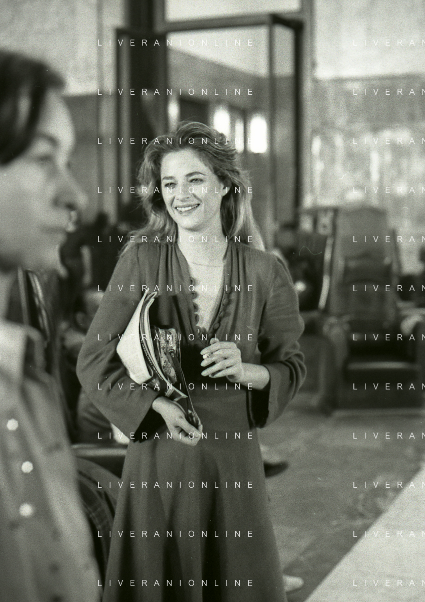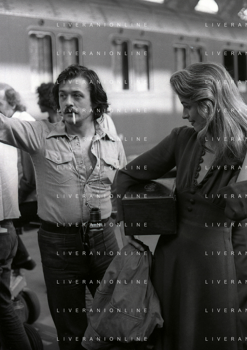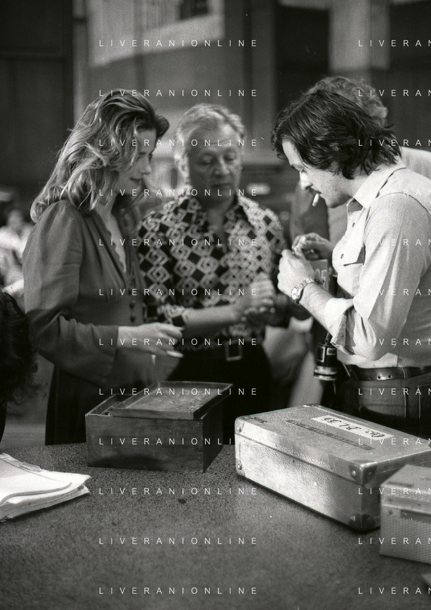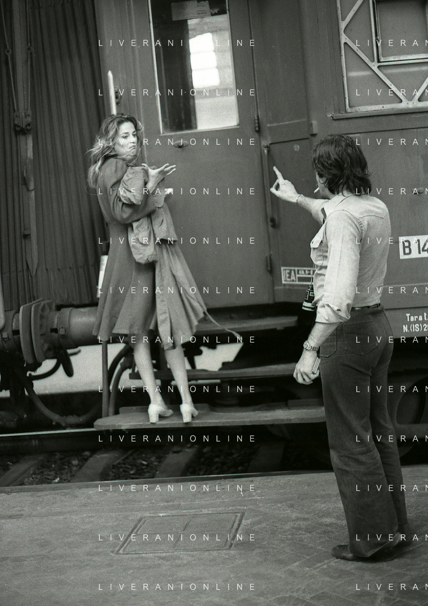 RETROSPETTIVA CHARLOTTE RAMPLING ATTRICE NELLA FOTO CHARLOTTE RAMPLING SU UN SET DEL FILM IN STAZIONE CENTRALE A MILANO NELL'ANNO 1974 AG ALDO LIVERANI SAS