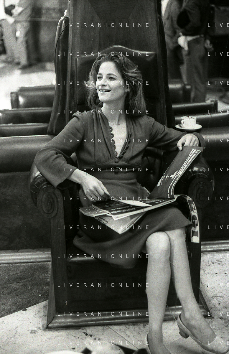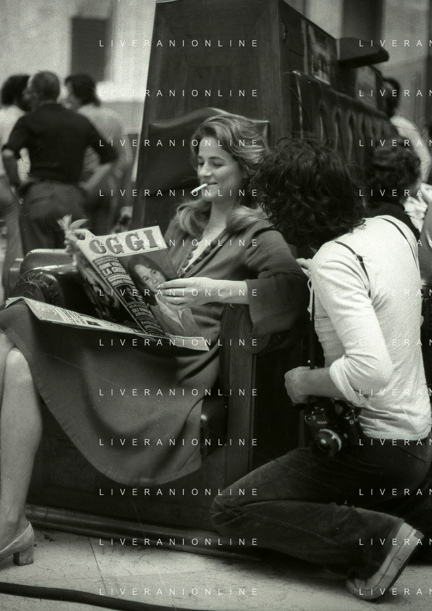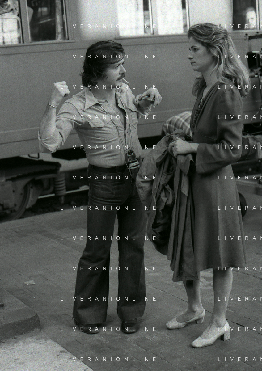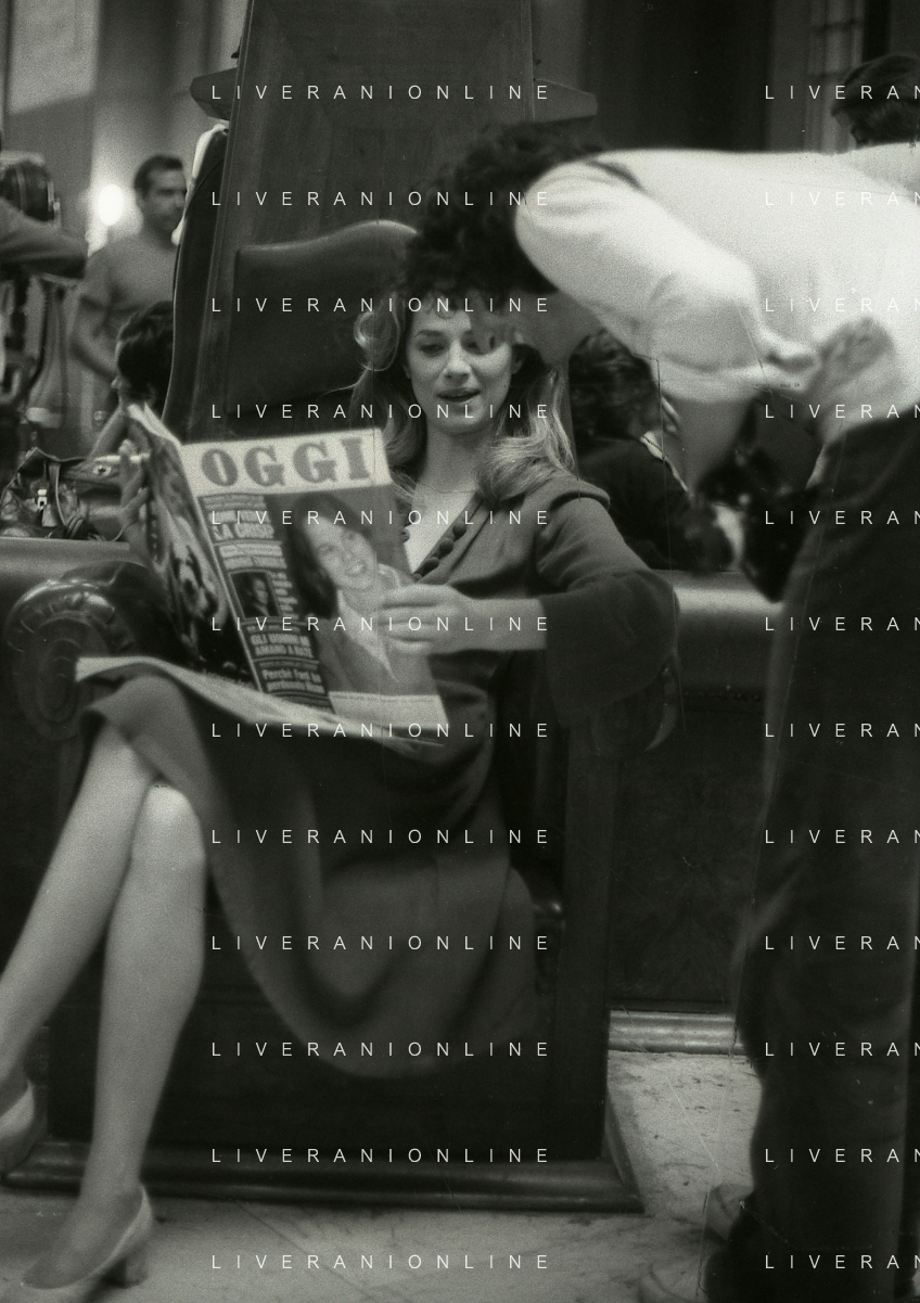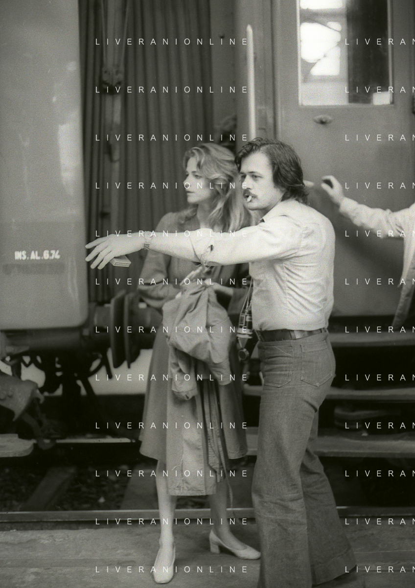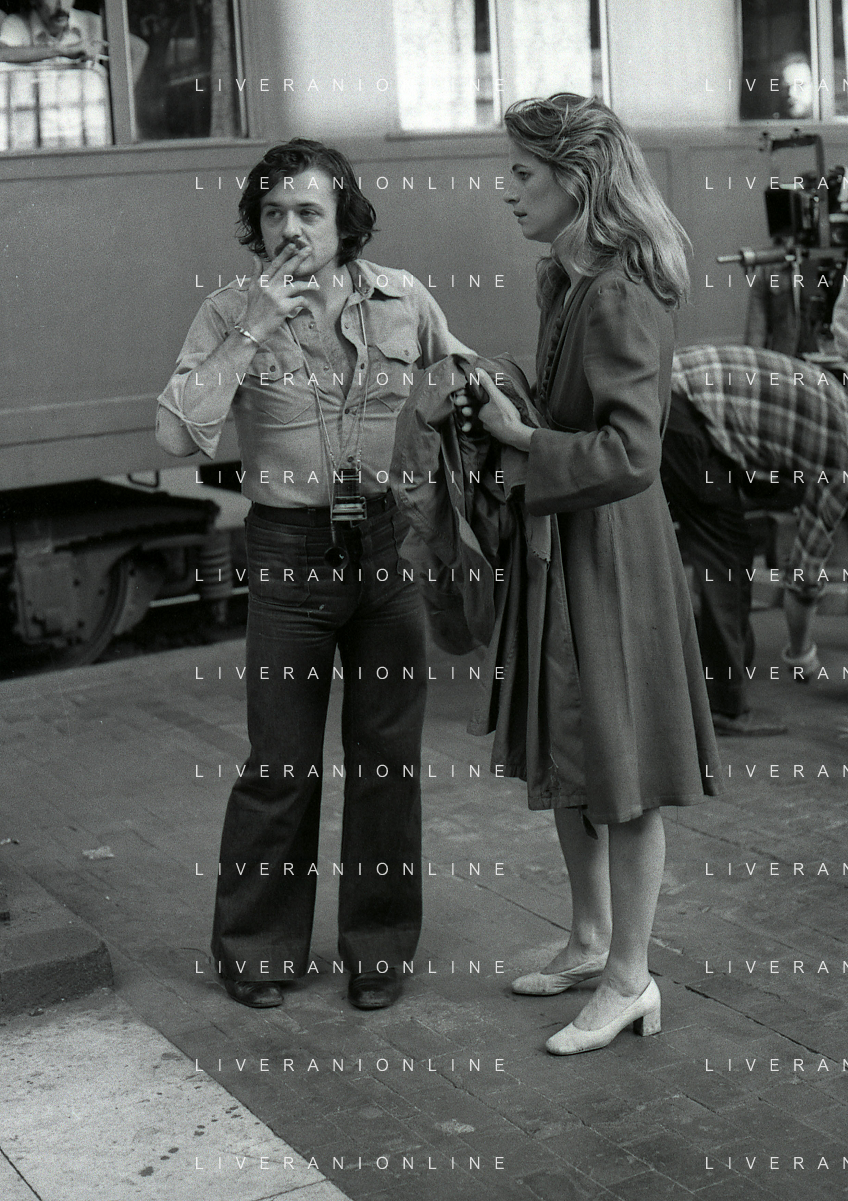 RETROSPETTIVA CHARLOTTE RAMPLING ATTRICE NELLA FOTO CHARLOTTE RAMPLING SU UN SET DEL FILM IN STAZIONE CENTRALE A MILANO NELL'ANNO 1974 AG ALDO LIVERANI SAS