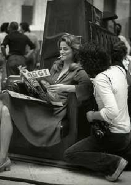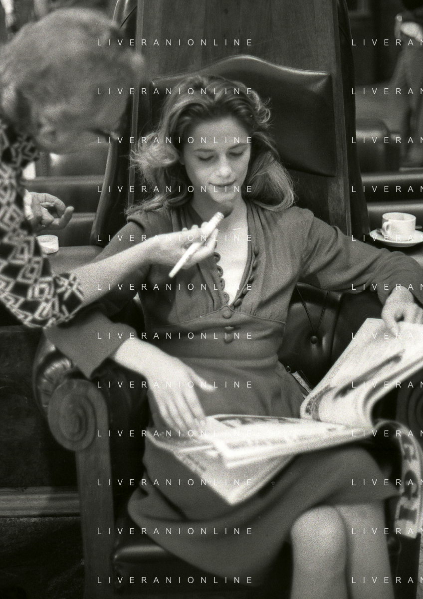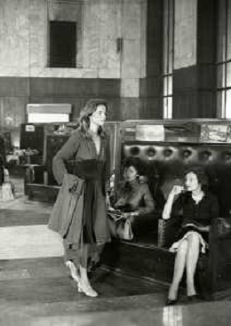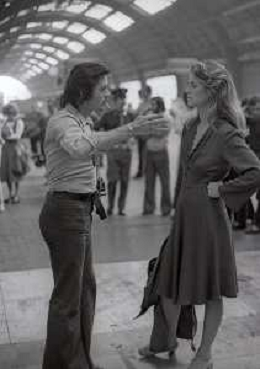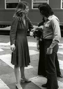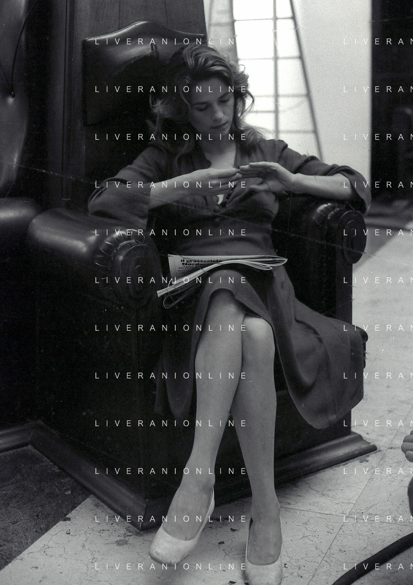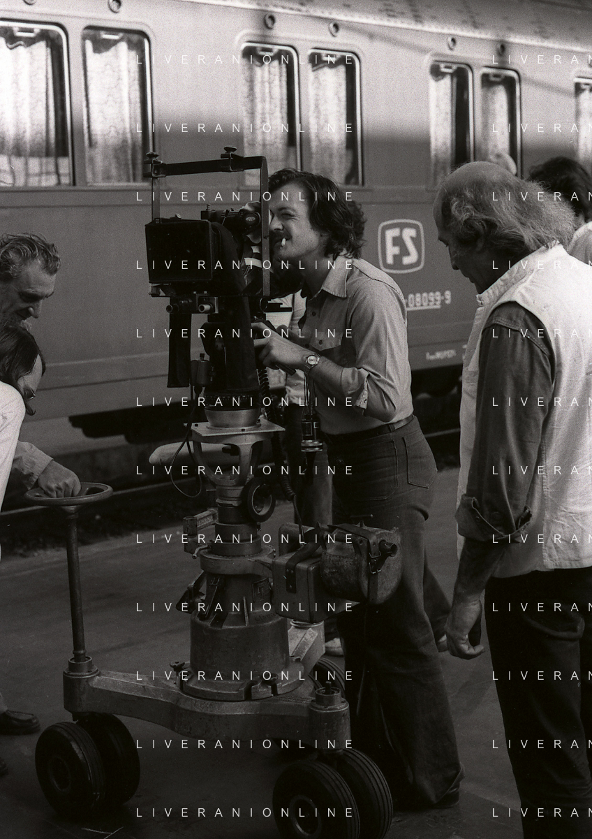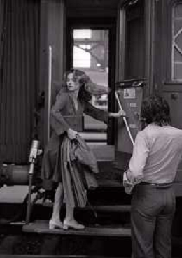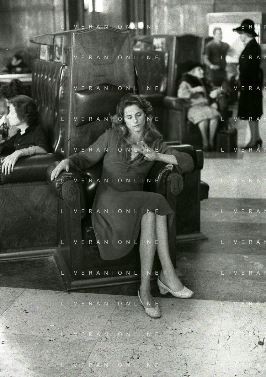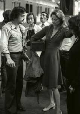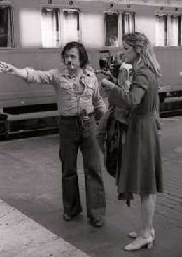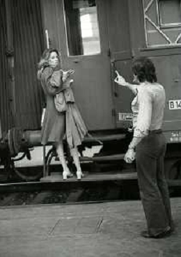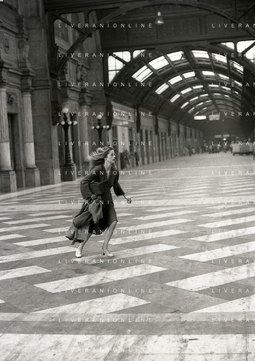 RETROSPETTIVA CHARLOTTE RAMPLING ATTRICE NELLA FOTO CHARLOTTE RAMPLING SU UN SET DEL FILM IN STAZIONE CENTRALE A MILANO NELL'ANNO 1974 AG ALDO LIVERANI SAS
