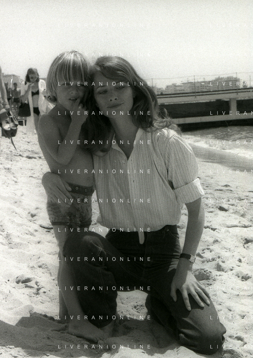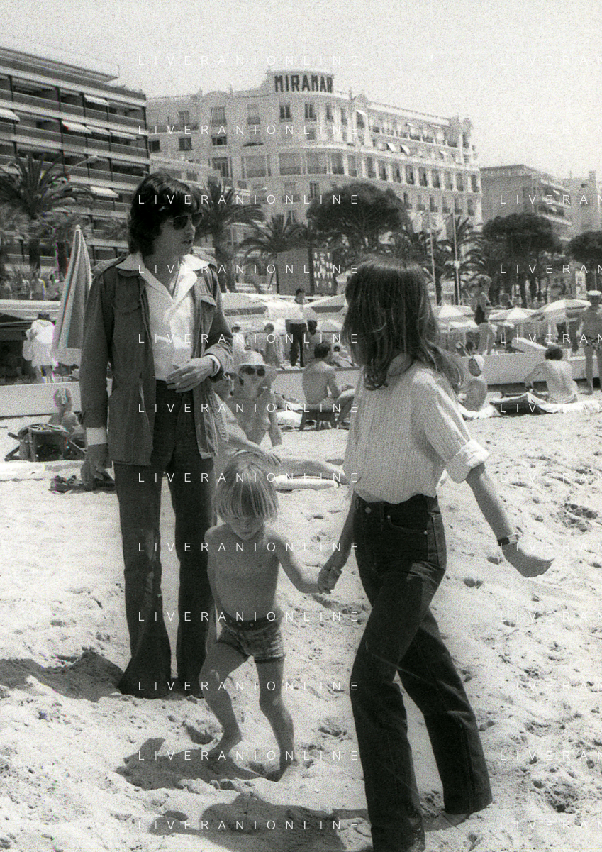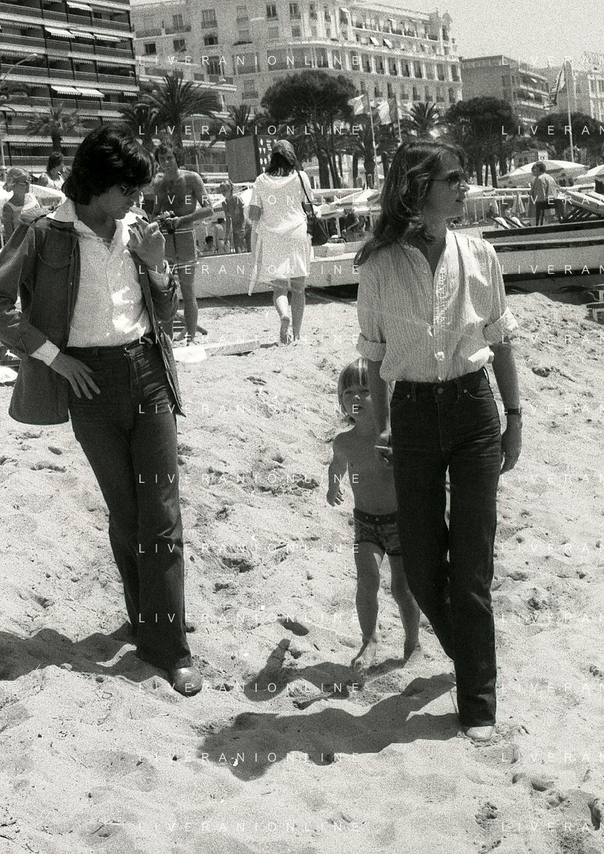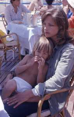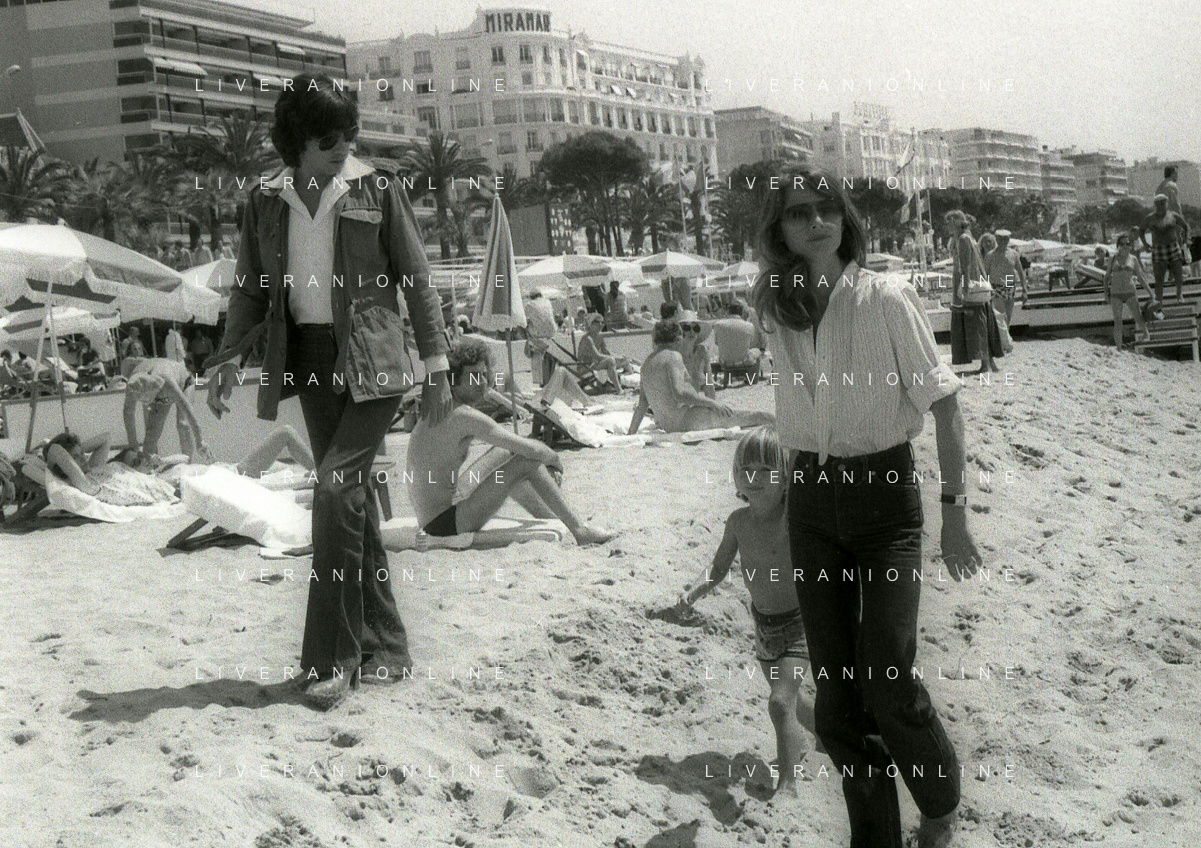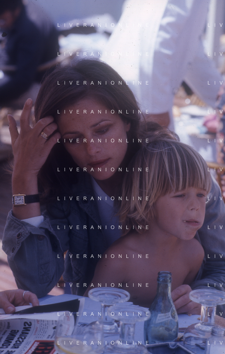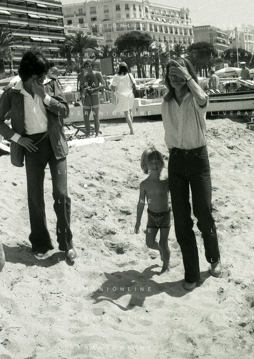 RETROSPETTIVA CHARLOTTE RAMPLING ATTRICE NELLA FOTO CHARLOTTE RAMPLING A CANNES NELL'ANNO 1976 CON IL FIGLIO BARNABY E IL SECONDO MARITO JEAN MICHEL JARRE AG ALDO LIVERANI SAS