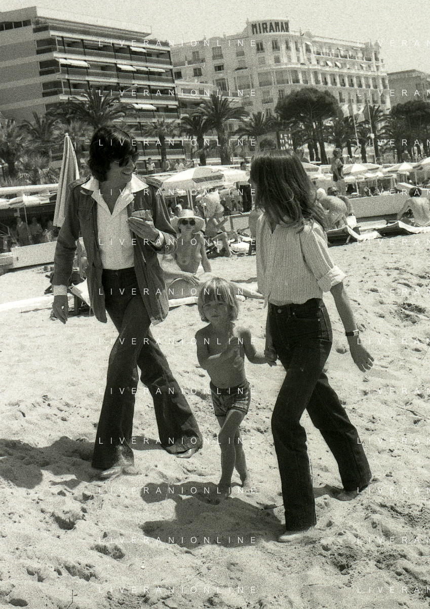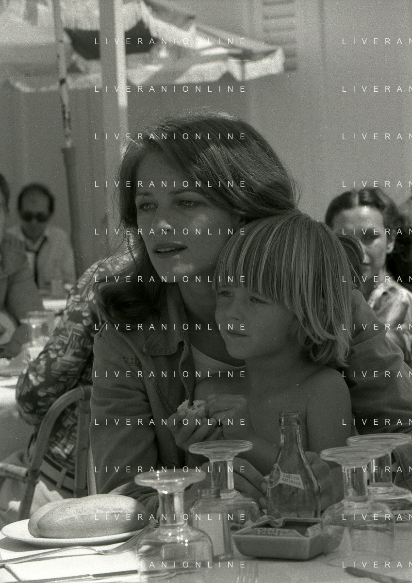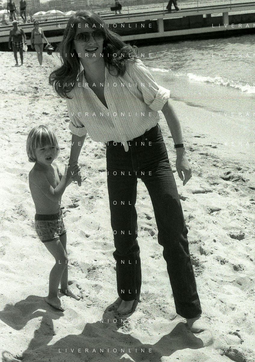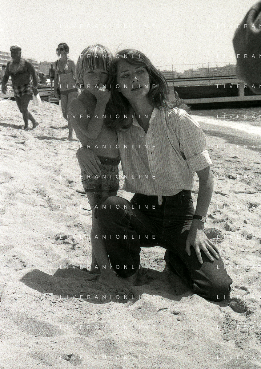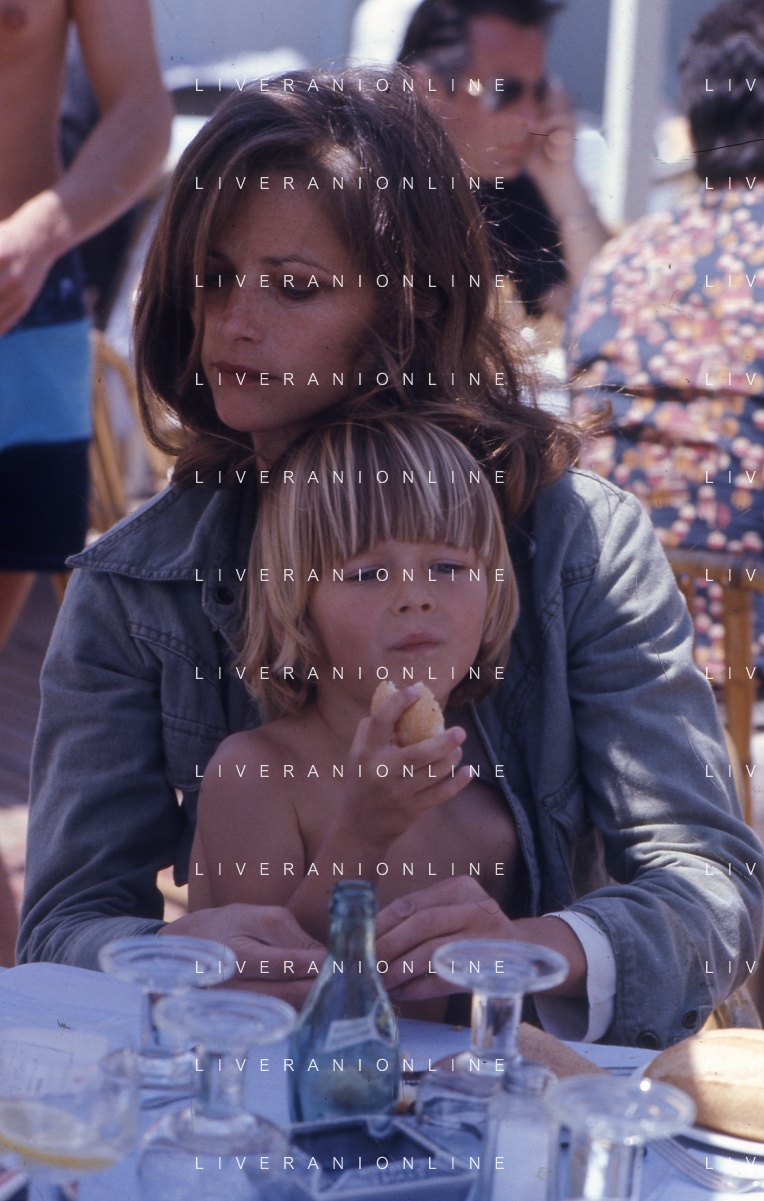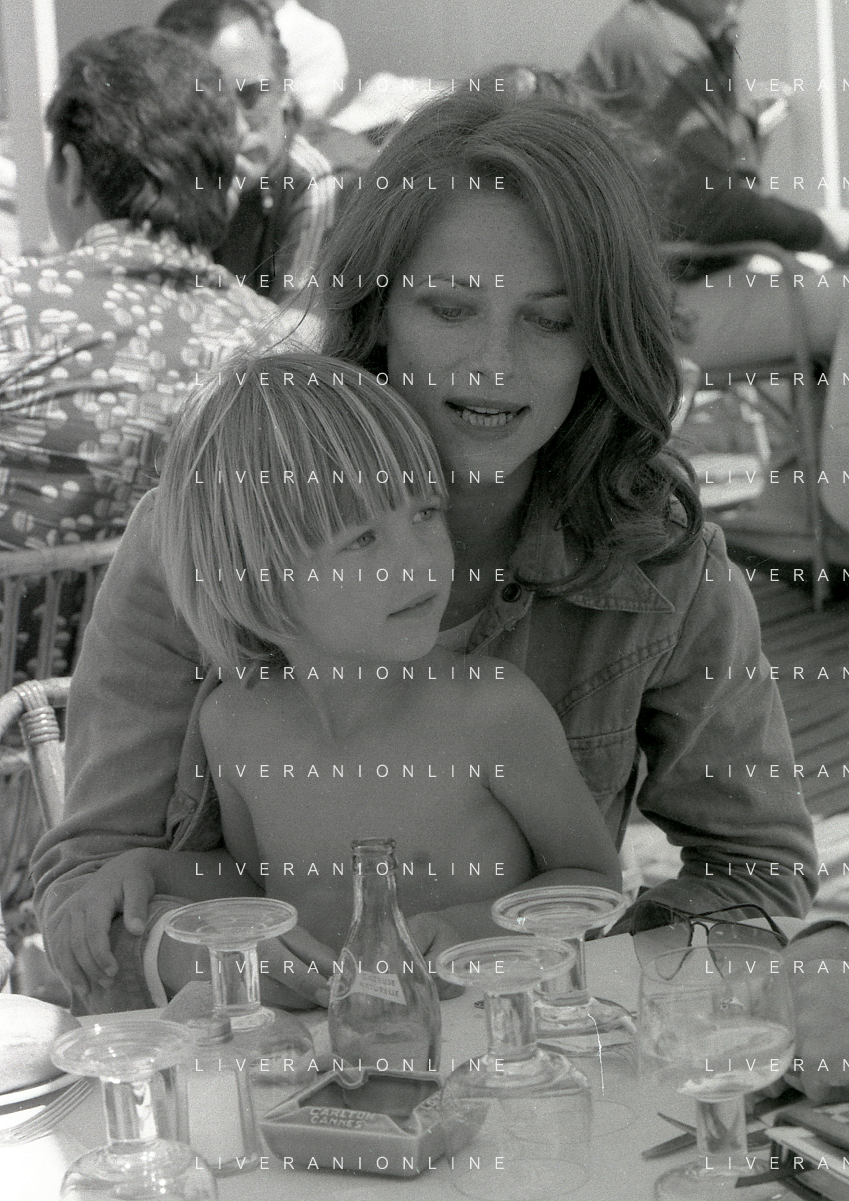 RETROSPETTIVA CHARLOTTE RAMPLING ATTRICE NELLA FOTO CHARLOTTE RAMPLING A CANNES NELL'ANNO 1976 CON IL FIGLIO BARNABY E IL SECONDO MARITO JEAN MICHEL JARRE AG ALDO LIVERANI SAS