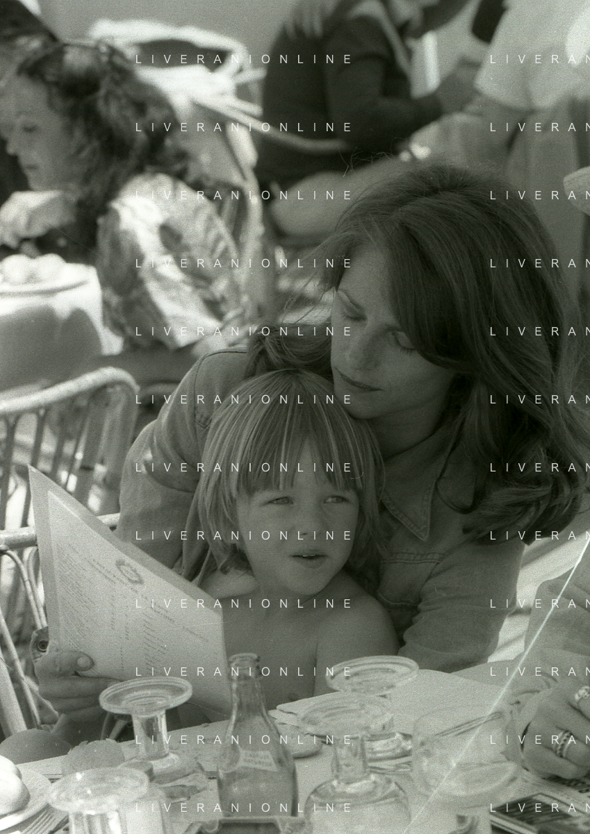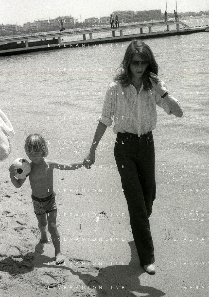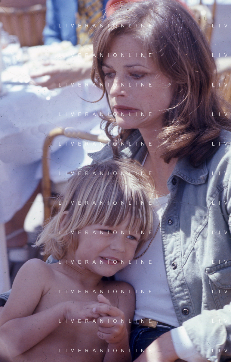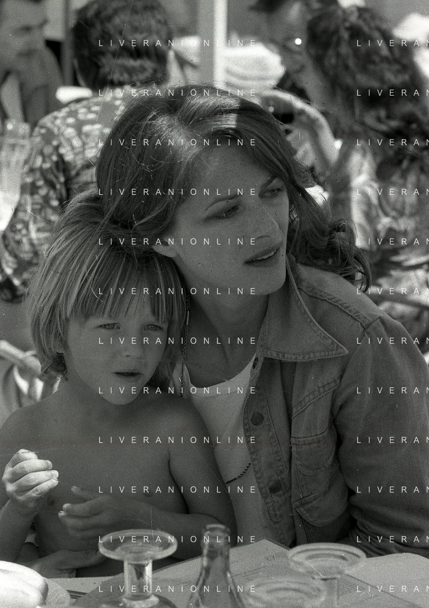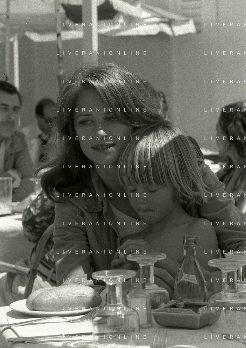 RETROSPETTIVA CHARLOTTE RAMPLING ATTRICE NELLA FOTO CHARLOTTE RAMPLING A CANNES NELL'ANNO 1976 CON IL FIGLIO BARNABY E IL SECONDO MARITO JEAN MICHEL JARRE AG ALDO LIVERANI SAS