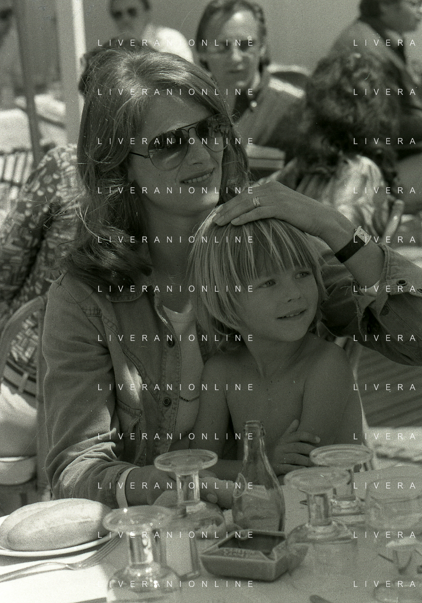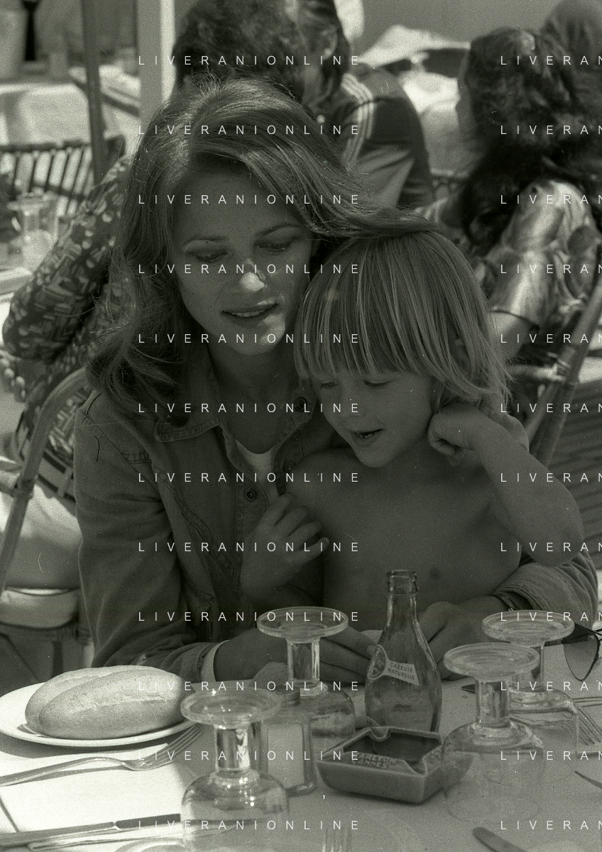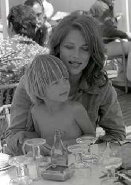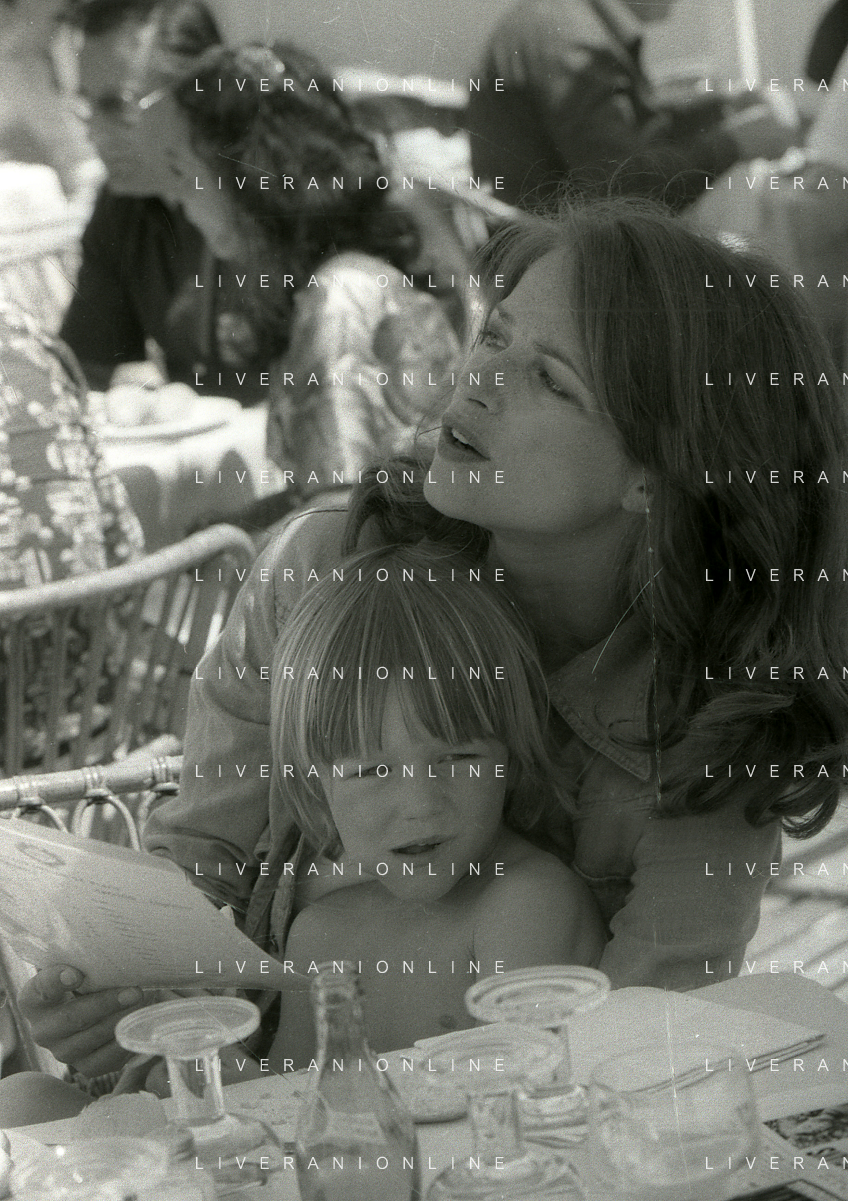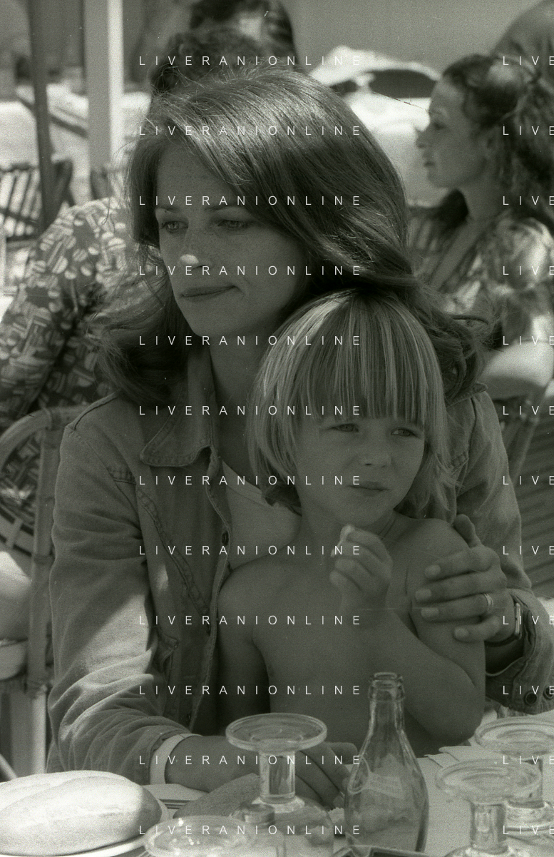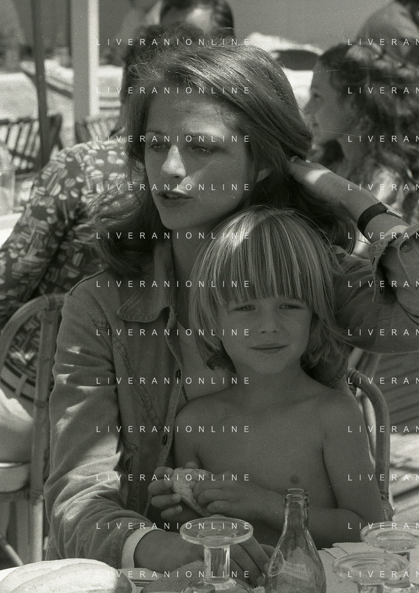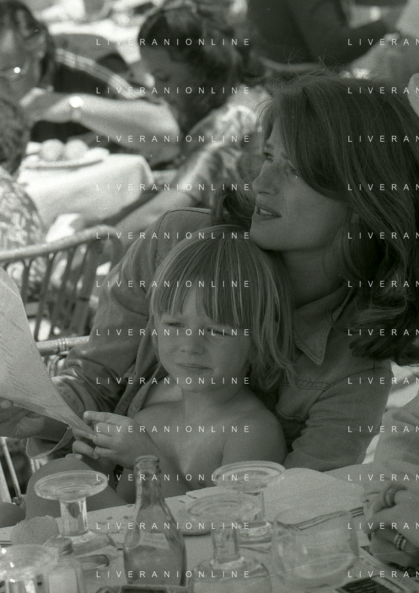 RETROSPETTIVA CHARLOTTE RAMPLING ATTRICE NELLA FOTO CHARLOTTE RAMPLING A CANNES NELL'ANNO 1976 CON IL FIGLIO BARNABY E IL SECONDO MARITO JEAN MICHEL JARRE AG ALDO LIVERANI SAS