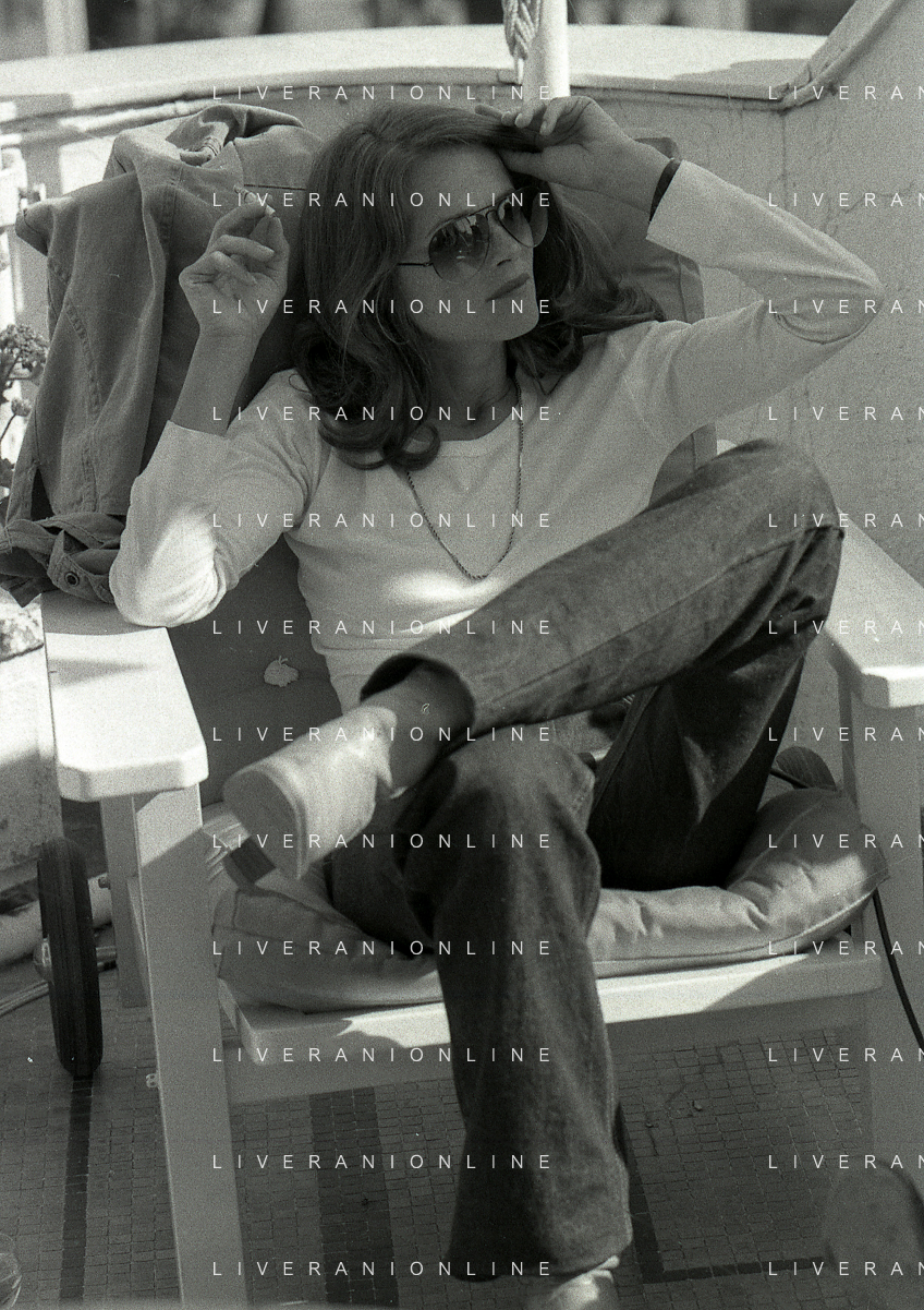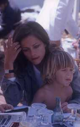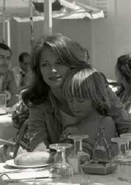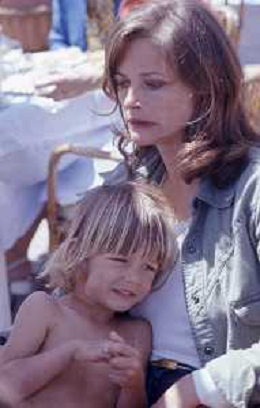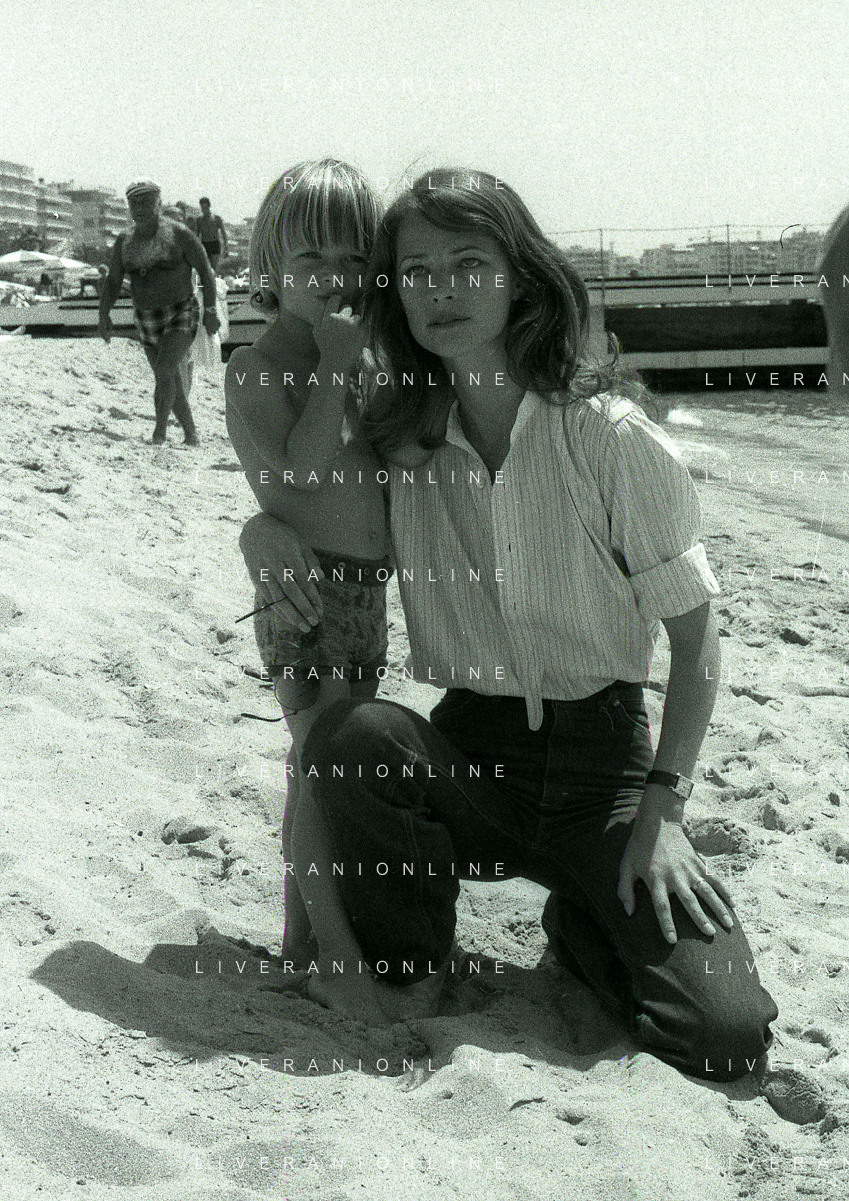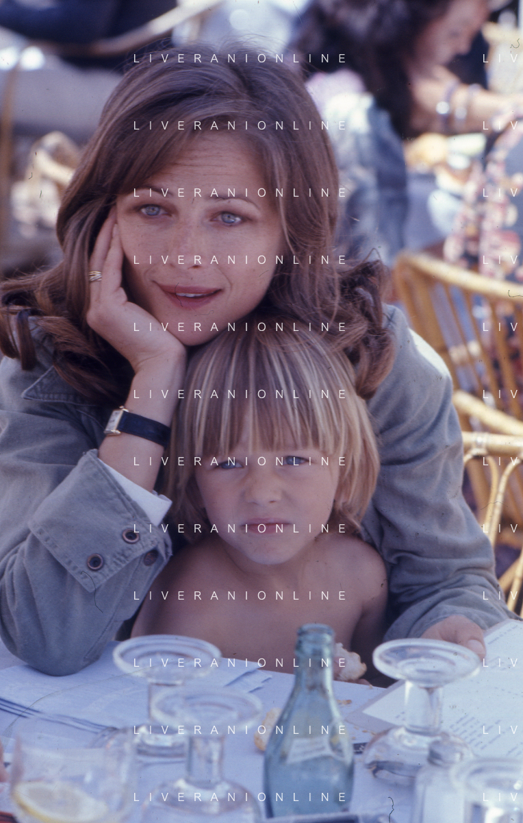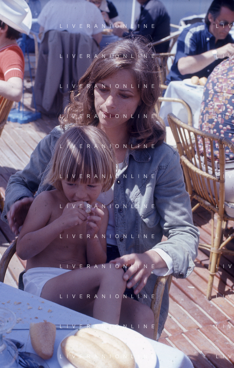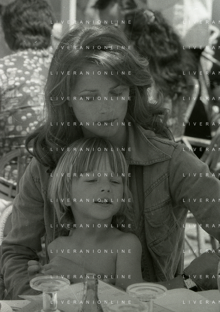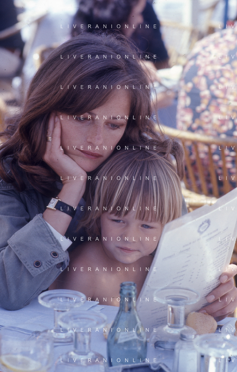 RETROSPETTIVA CHARLOTTE RAMPLING ATTRICE NELLA FOTO CHARLOTTE RAMPLING A CANNES NELL'ANNO 1976 CON IL FIGLIO BARNABY E IL SECONDO MARITO JEAN MICHEL JARRE AG ALDO LIVERANI SAS