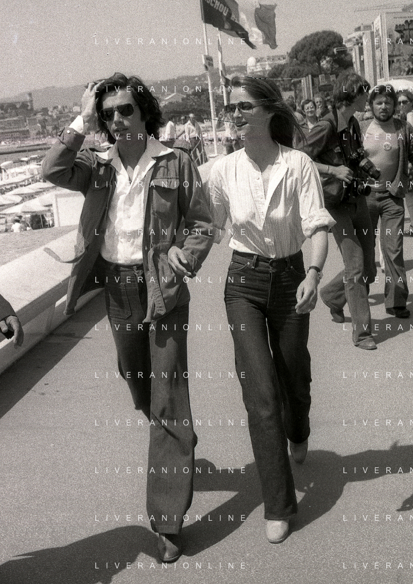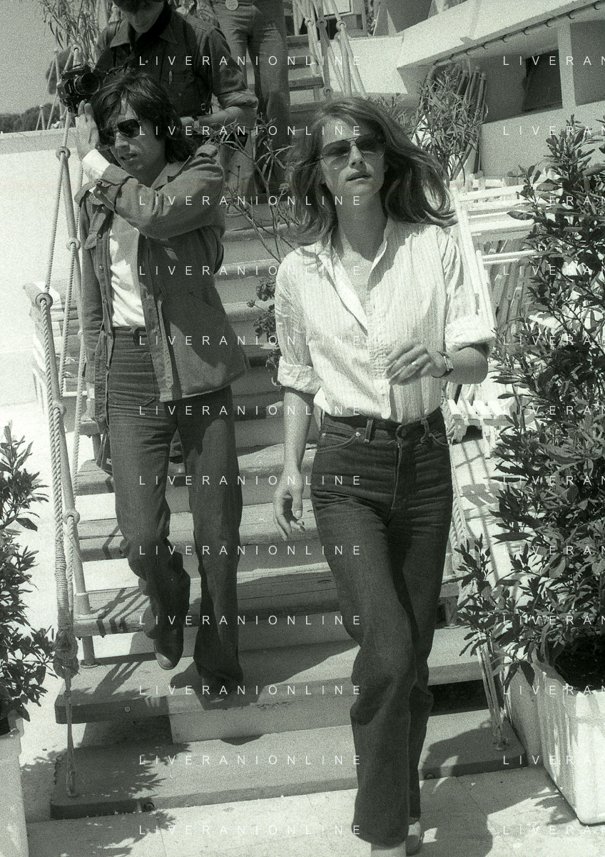 RETROSPETTIVA CHARLOTTE RAMPLING ATTRICE NELLA FOTO CHARLOTTE RAMPLING A CANNES NELL'ANNO 1976 CON SECONDO MARITO JEAN MICHEL JARRE AG ALDO LIVERANI SAS