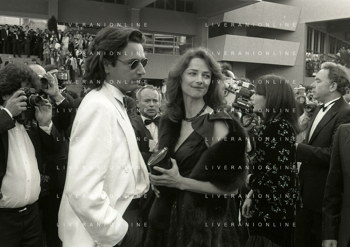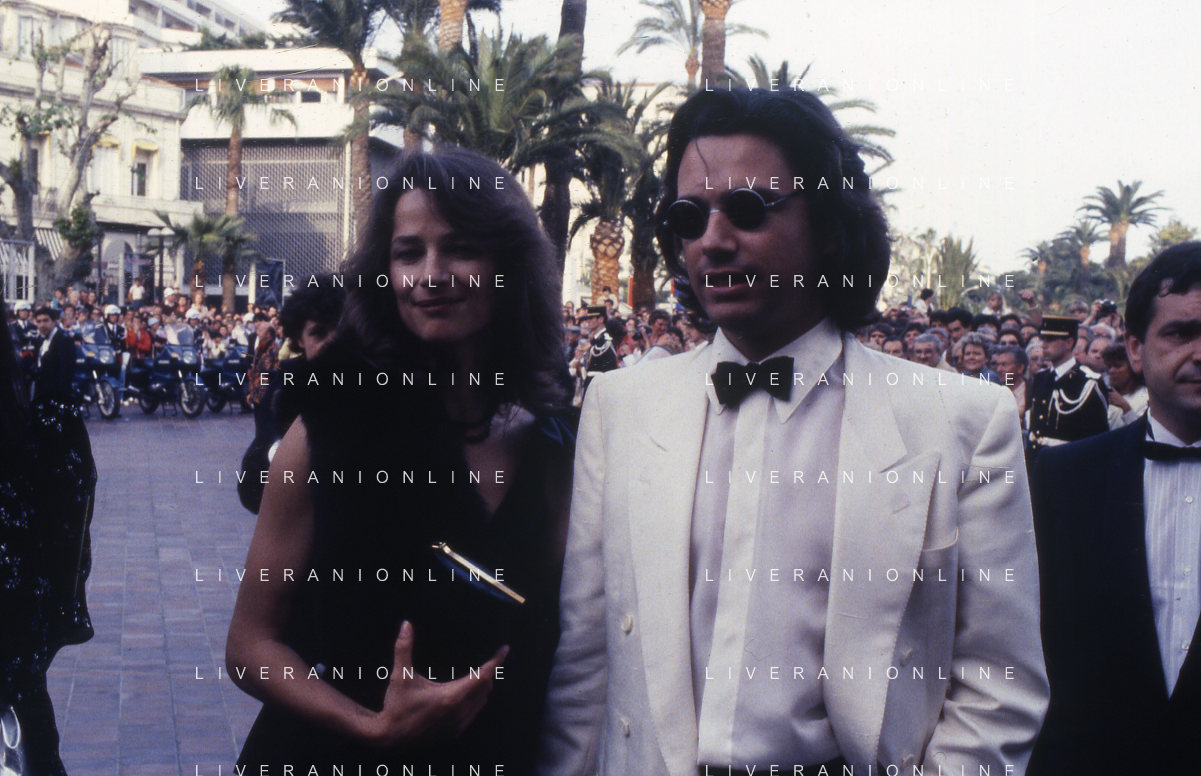 RETROSPETTIVA CHARLOTTE RAMPLING ATTRICE NELLA FOTO CHARLOTTE RAMPLING A CANNES NELL'ANNO 1983 CON IL SECONDO MARITO JEAN MICHEL JARRE AG ALDO LIVERANI SAS