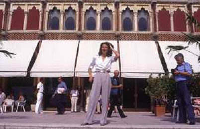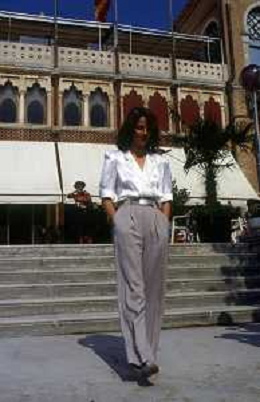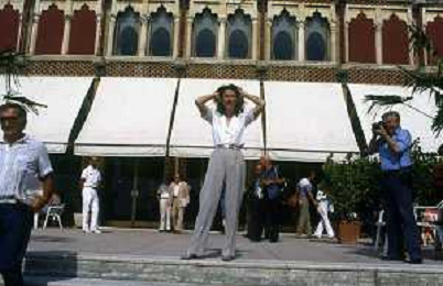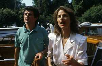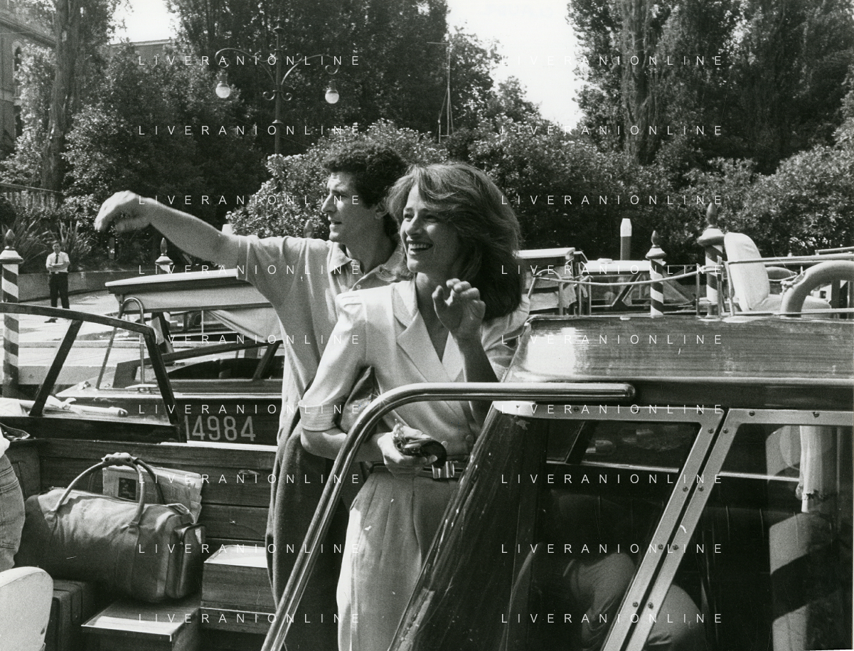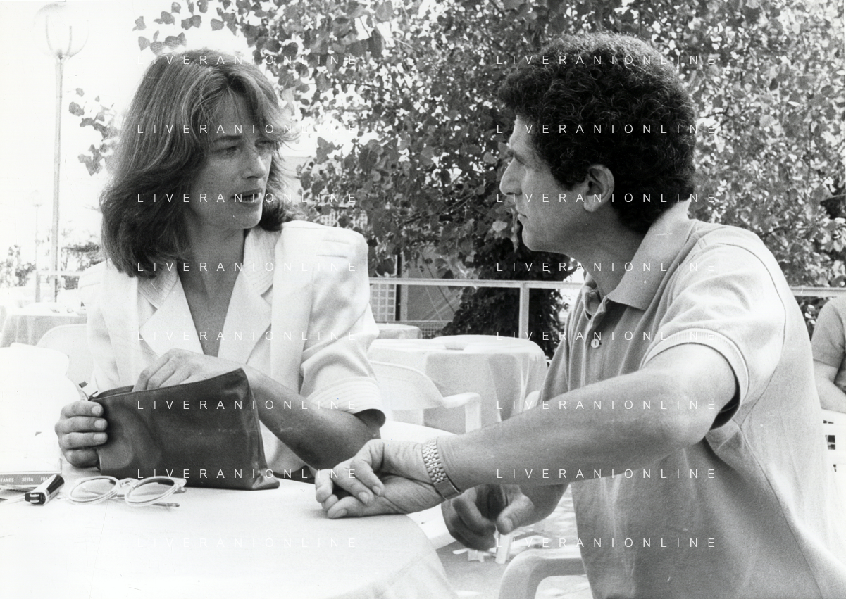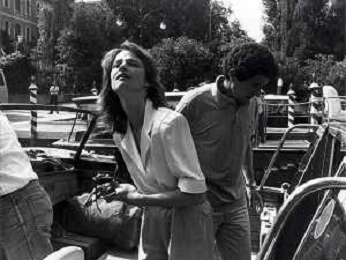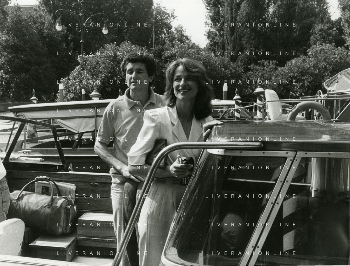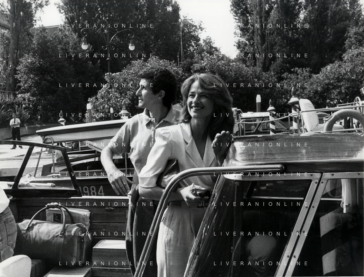 RETROSPETTIVA CHARLOTTE RAMPLING ATTRICE NELLA FOTO CHARLOTTE RAMPLING A VENEZIA NELL'ANNO 1984 CON CLAUDE LELOUCH AG ALDO LIVERANI SAS