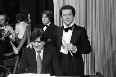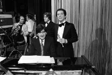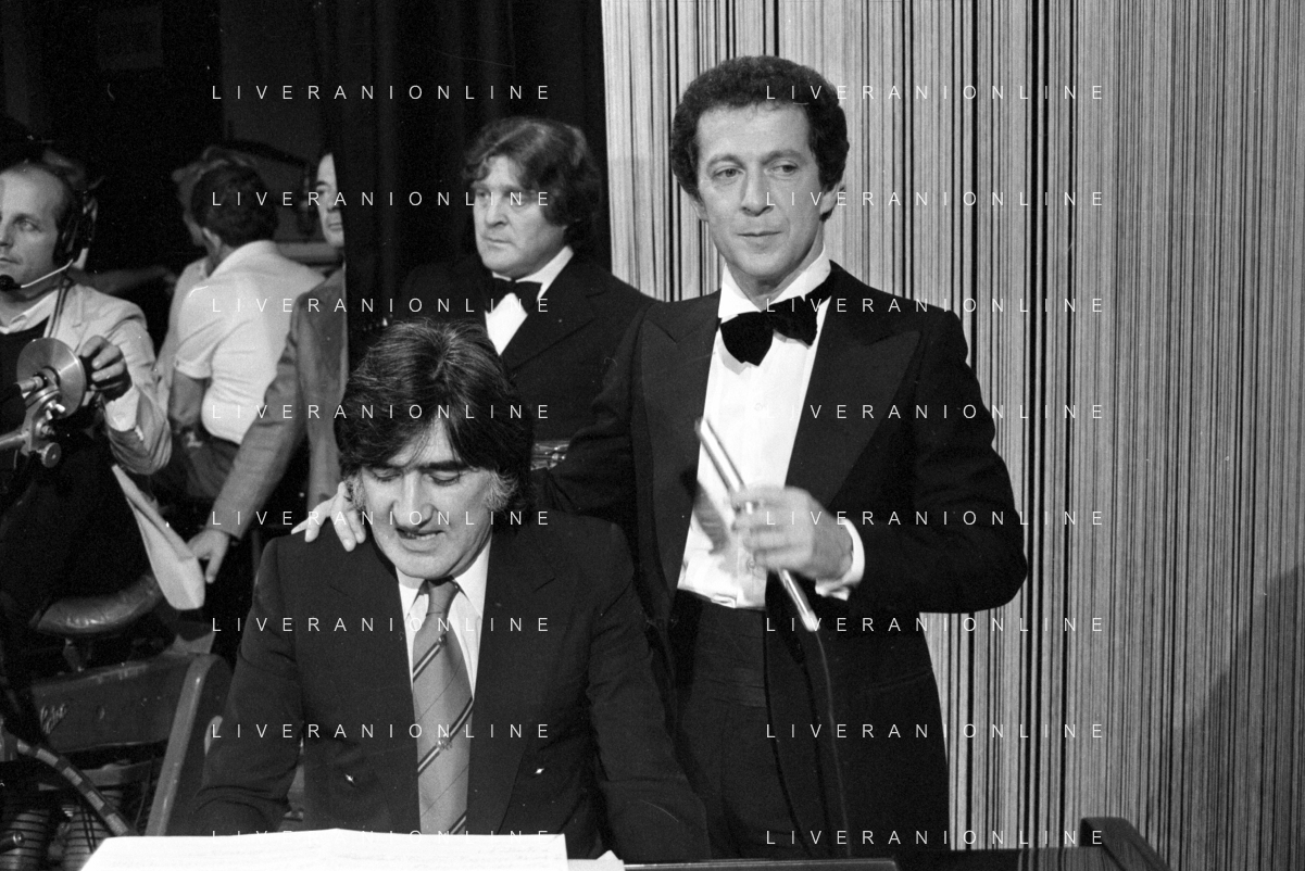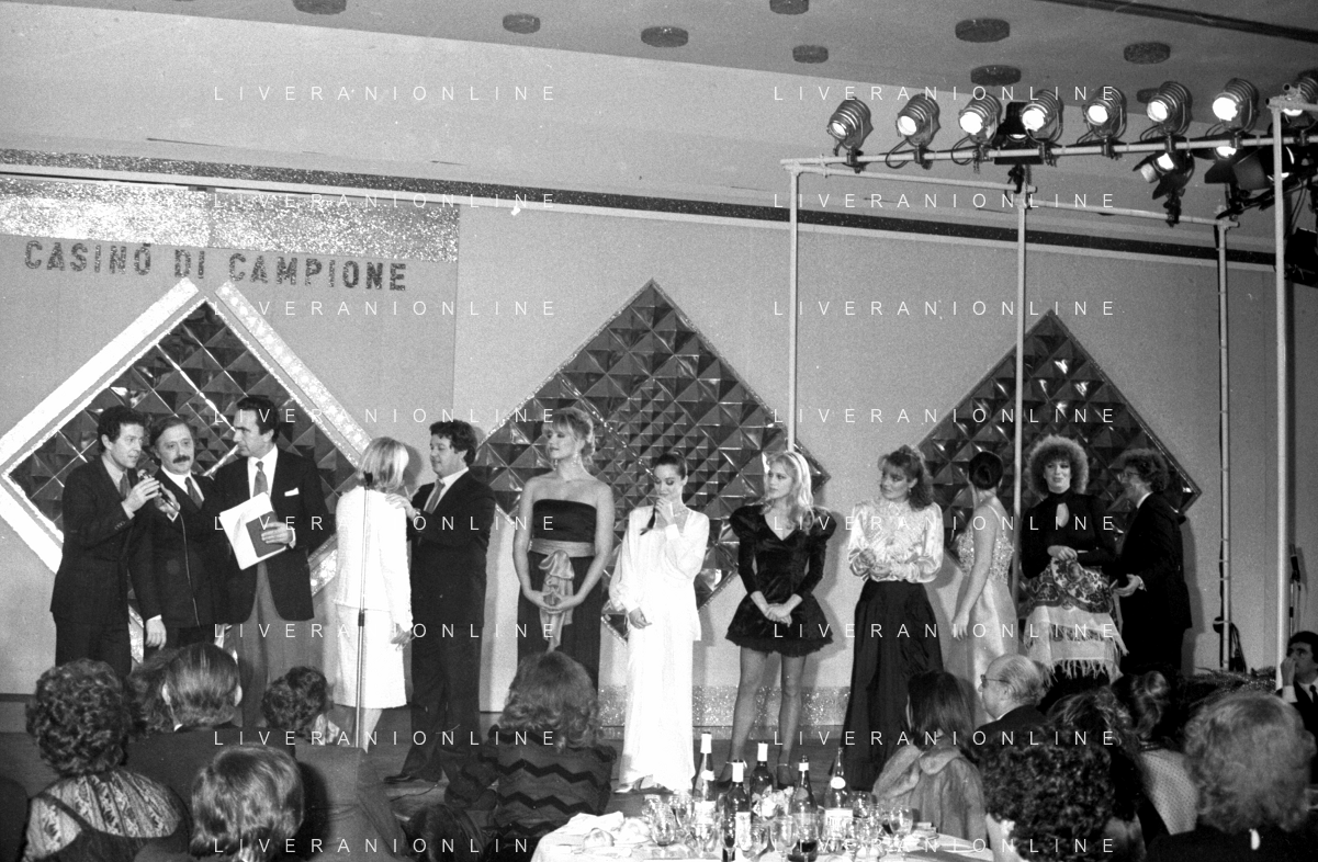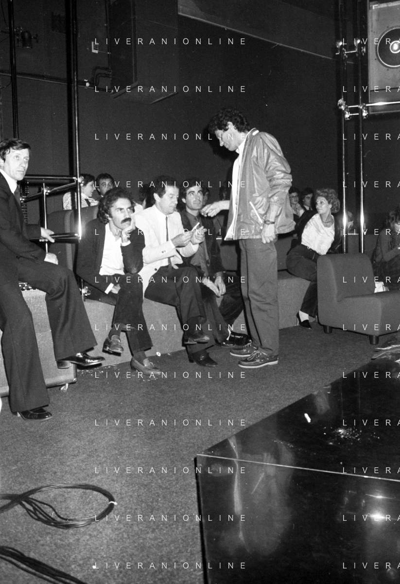 Neg- RETROSPETTIVA MEMO REMIGI (EMIDIO) CANTANTE NELLA FOTO A CAMPIONE D'ITALIA NELL'ANNO 1981 CON GIANNI MINA', RENATO POZZETTO, ORIELLA DORELLA, HEATHER PARISI E IVA ZANICCHI AGENZIA ALDO LIVERANI SAS