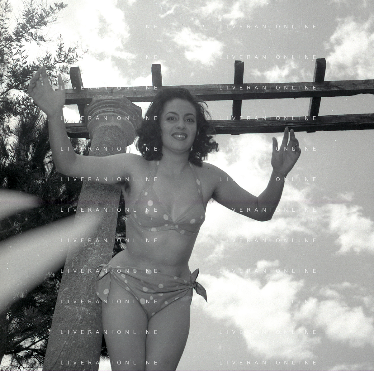 RETROSPETTIVA YVONNE SANSON ATTRICE NELLA FOTO YVONNE SANSON A ROMA NELL'ANNO 1950 AG ALDO LIVERANI SAS