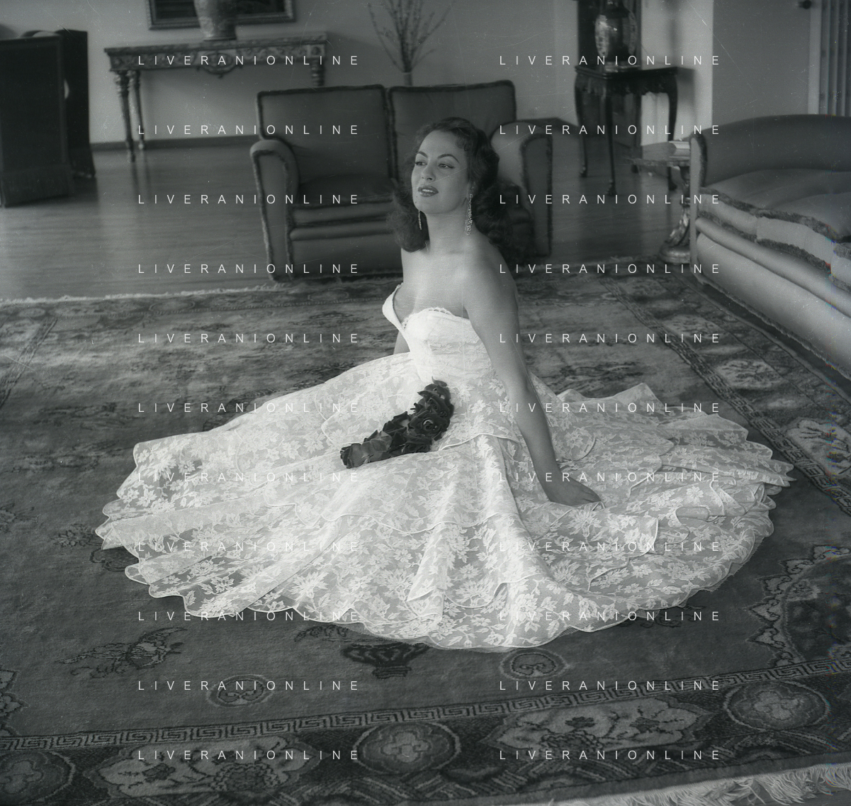 RETROSPETTIVA YVONNE SANSON ATTRICE NELLA FOTO YVONNE SANSON A ROMA NELL'ANNO 1950 AG ALDO LIVERANI SAS
