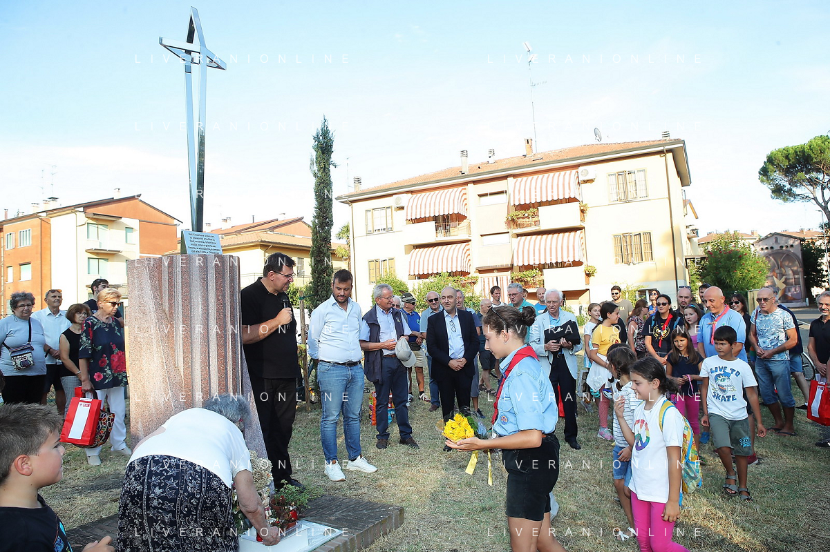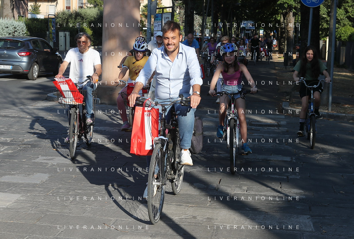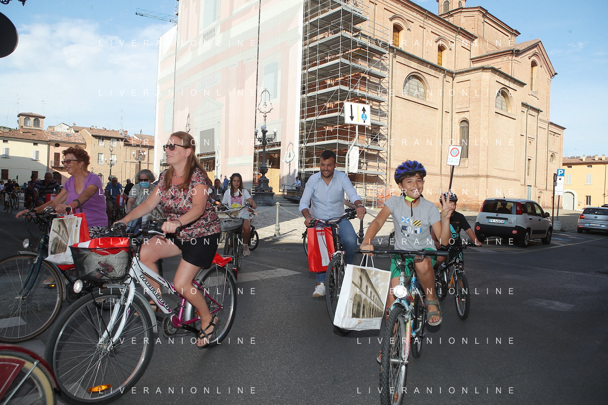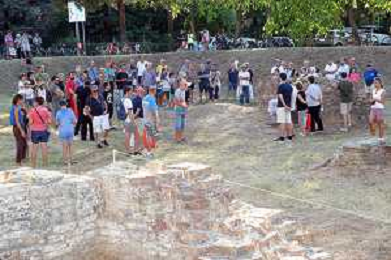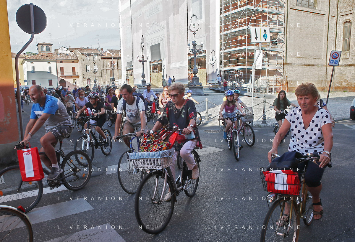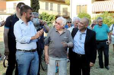 IMOLA 12 08 2022 PEDALATA DI SAN CASSIANO SOSTA AGLI SCAVI E AL CIPPO DI SAN CASSIANO DA SINISTRA SINDACO MARCO PANIERI NINO CERONI E FABRIZIO CASTELLARI VICE SINDACO