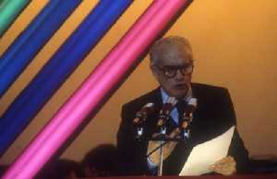 RETROSPETTIVA ALFREDO REICHLIN POLITICO E GIORNALISTA NELLA FOTO ALFREDO REICHLIN NELL'ANNO 1989 AL CONGRESSO DEL PARTITO COMUNISTA ITALIANO AG ALDO LIVERANI SAS