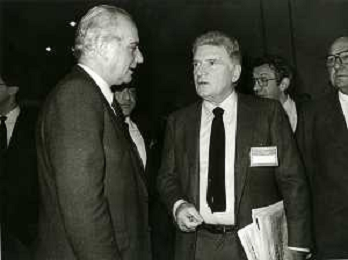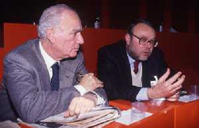RETROSPETTIVA ALFREDO REICHLIN POLITICO E GIORNALISTA NELLA FOTO ALFREDO REICHLIN NELL'ANNO 1991 CON CLAUDIO PETRUCCIOLI AG ALDO LIVERANI SAS