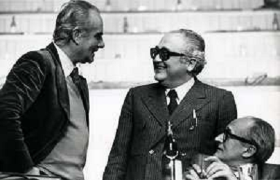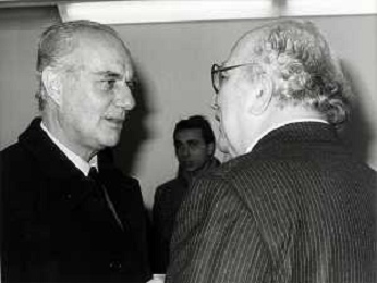 RETROSPETTIVA ALFREDO REICHLIN POLITICO E GIORNALISTA NELLA FOTO ALFREDO REICHLIN CON SERGIO ZAVOLI ARCHIVIO GIOVANNI LIVERANI-DFP-AG ALDO LIVERANI SAS