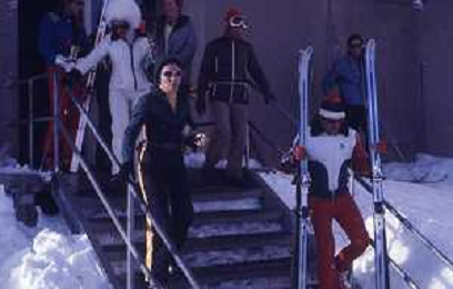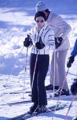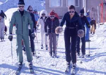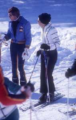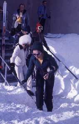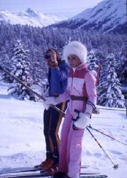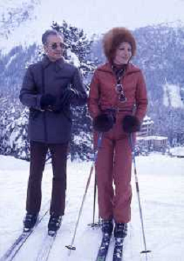 RETROSPETTIVA FARAH DIBA PAHLAVI IMPERATRICE DI PERSIA NELLA FOTO FARAH DIBA PAHLAVI IMPERATRICE DI PERSIA A SAINT MORITZ ANNI 70CON IL MARITO Mohammad Reza Pahlavi AG ALDO LIVERANI SAS