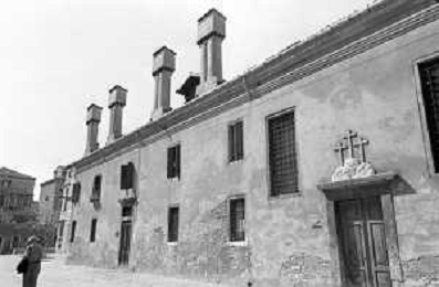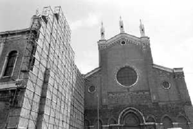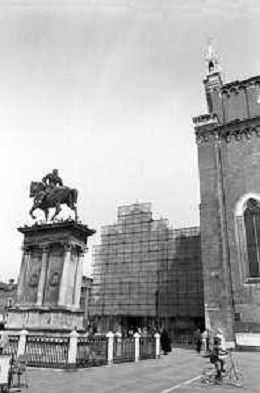 VEDUTE DELLA CITTA ' DI VENEZIA DURANTE IL RESTAURO DEL 1971 - RETROSPETTIVA NELLA FOTO L'OSPEDALE CIVILE DI SAN GIOVANNI E PAOLO ADIACENTE ALLA CHIESA O BASILICA DEI SANTI GIOVANNI E PAOLO ©Archivio Giovanni Liverani/AGENZIA ALDO LIVERANI SAS