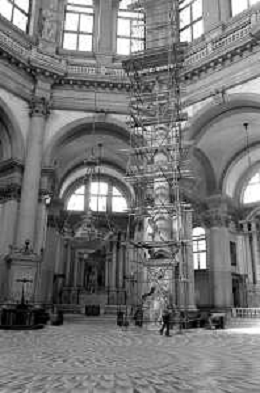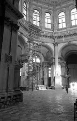 VEDUTE DELLA CITTA ' DI VENEZIA DURANTE IL RESTAURO DEL 1971 - RETROSPETTIVA NELLA FOTO L'INTERNO DELLA CHIESA O BASILICA DI SANTA MARIA DELLA SALUTE CANAL GRANDE ©Archivio Giovanni Liverani/AGENZIA ALDO LIVERANI SAS