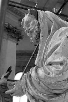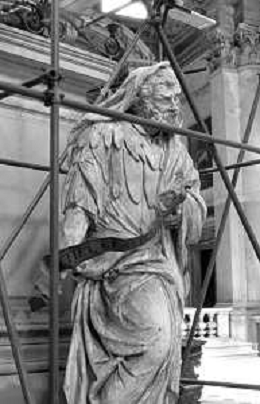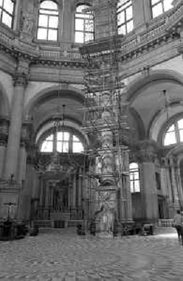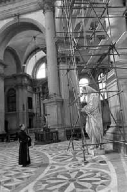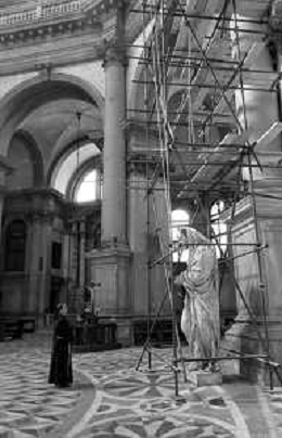VEDUTE DELLA CITTA ' DI VENEZIA DURANTE IL RESTAURO DEL 1971 - RETROSPETTIVA NELLA FOTO LA STATUA DI LEGNO ALL'INTERNO DELLA CHIESA O BASILICA DI SANTA MARIA DELLA SALUTE CANAL GRANDE ©Archivio Giovanni Liverani/AGENZIA ALDO LIVERANI SAS