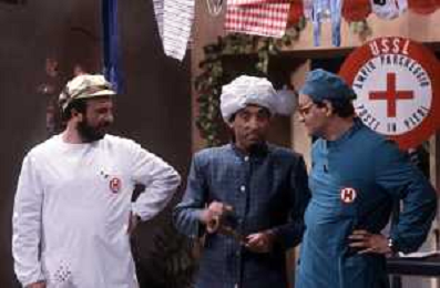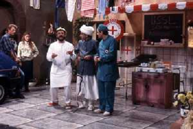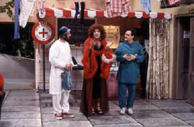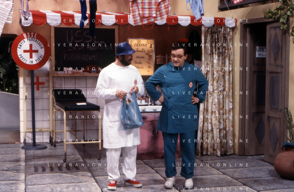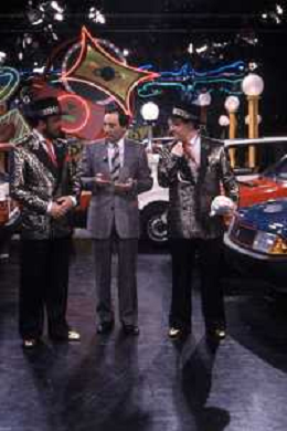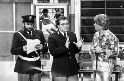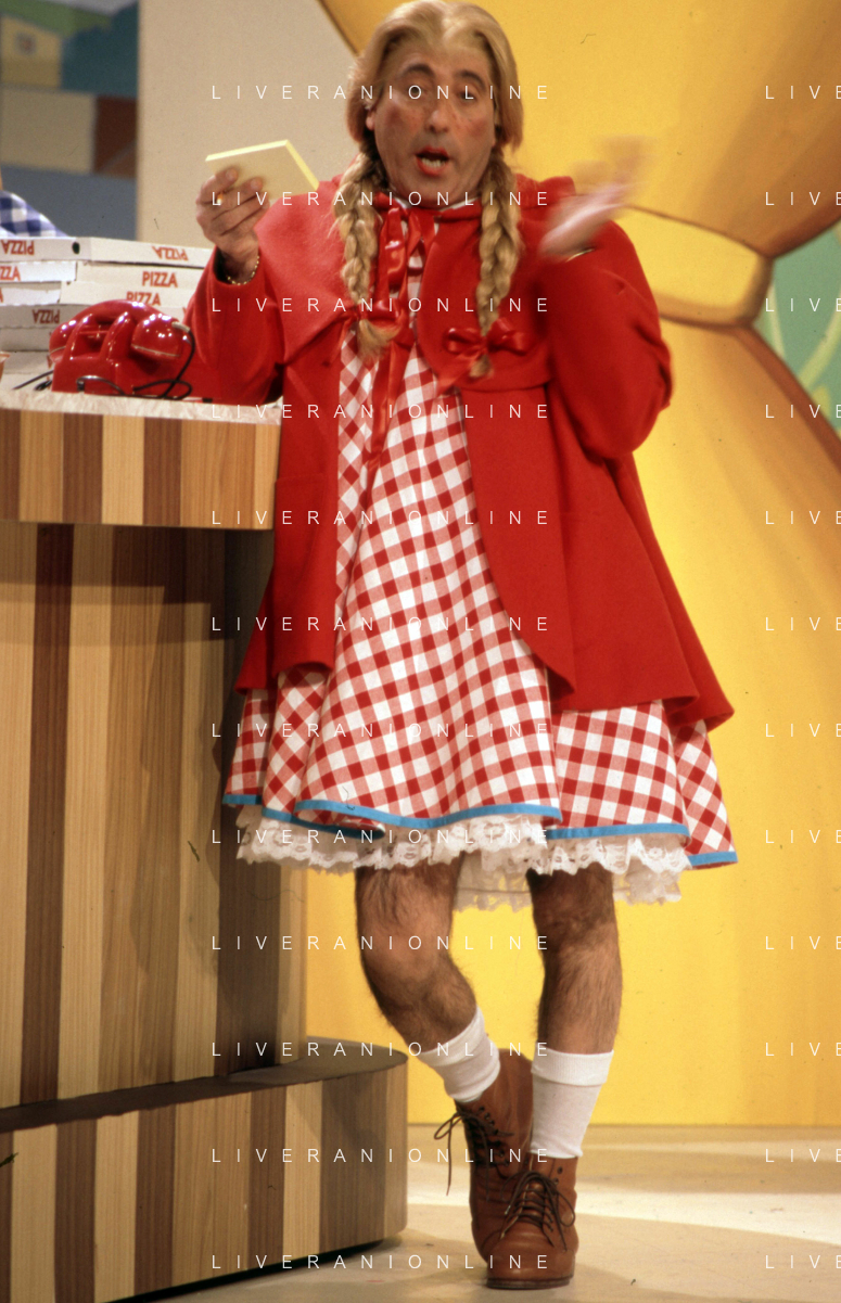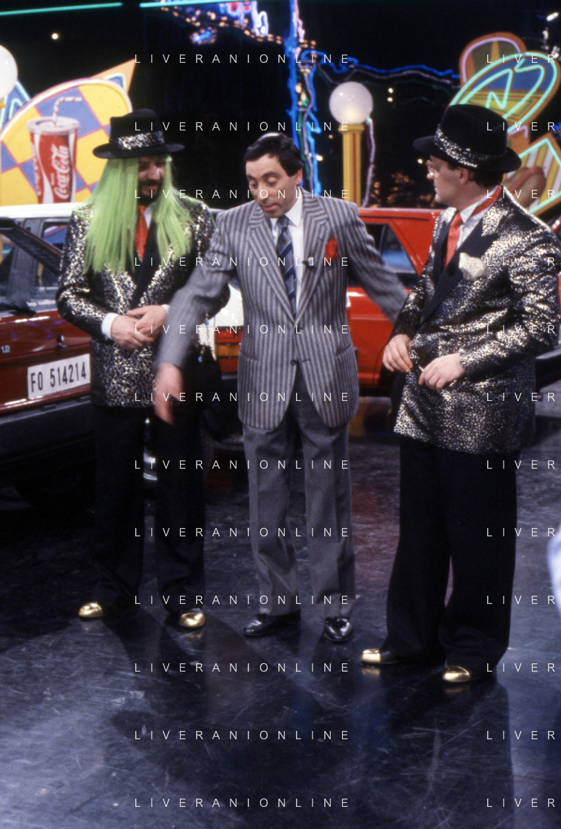I TRETTRE' , TRIO COMICO NAPOLETANO, COMPOSTO DA GINO COGLIANDRO, EDOARDO ROMANO E MIRKO SETARO NELLA FOTO EDOARDO ROMANO NEL PROGRAMMA TV ' DRIVE IN ' AG ALDO LIVERANI SAS