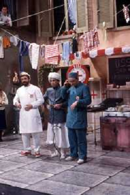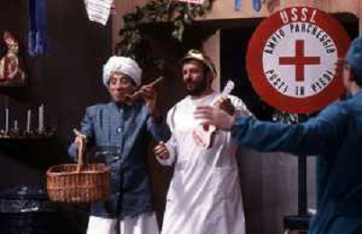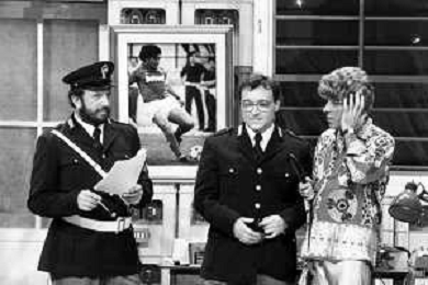 I TRETTRE' , TRIO COMICO NAPOLETANO, COMPOSTO DA GINO COGLIANDRO, EDOARDO ROMANO E MIRKO SETARO NELLA FOTO EDOARDO ROMANO NEL PROGRAMMA TV DI RAIMONDO VIANELLO E SANDRA MONDAINI AG ALDO LIVERANI SAS