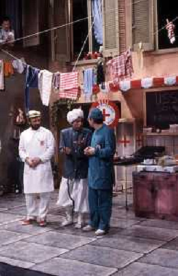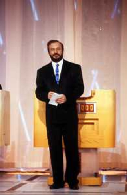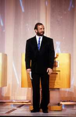 I TRETTRE' , TRIO COMICO NAPOLETANO, COMPOSTO DA GINO COGLIANDRO, EDOARDO ROMANO E MIRKO SETARO NELLA FOTO MIRKO SETARO NEL PROGRAMMA TV DI RAIMONDO VIANELLO E SANDRA MONDAINI AG ALDO LIVERANI SAS