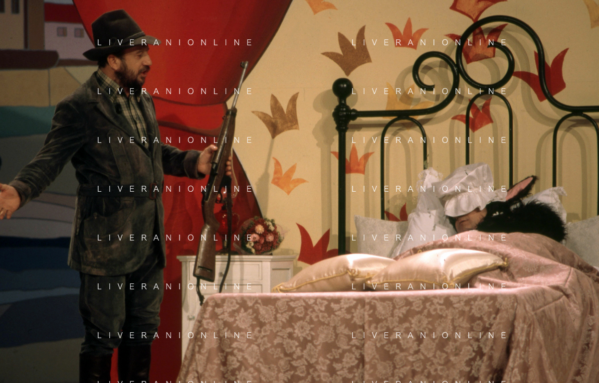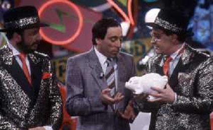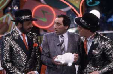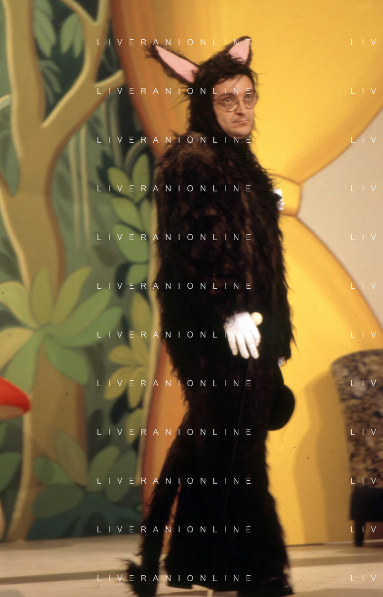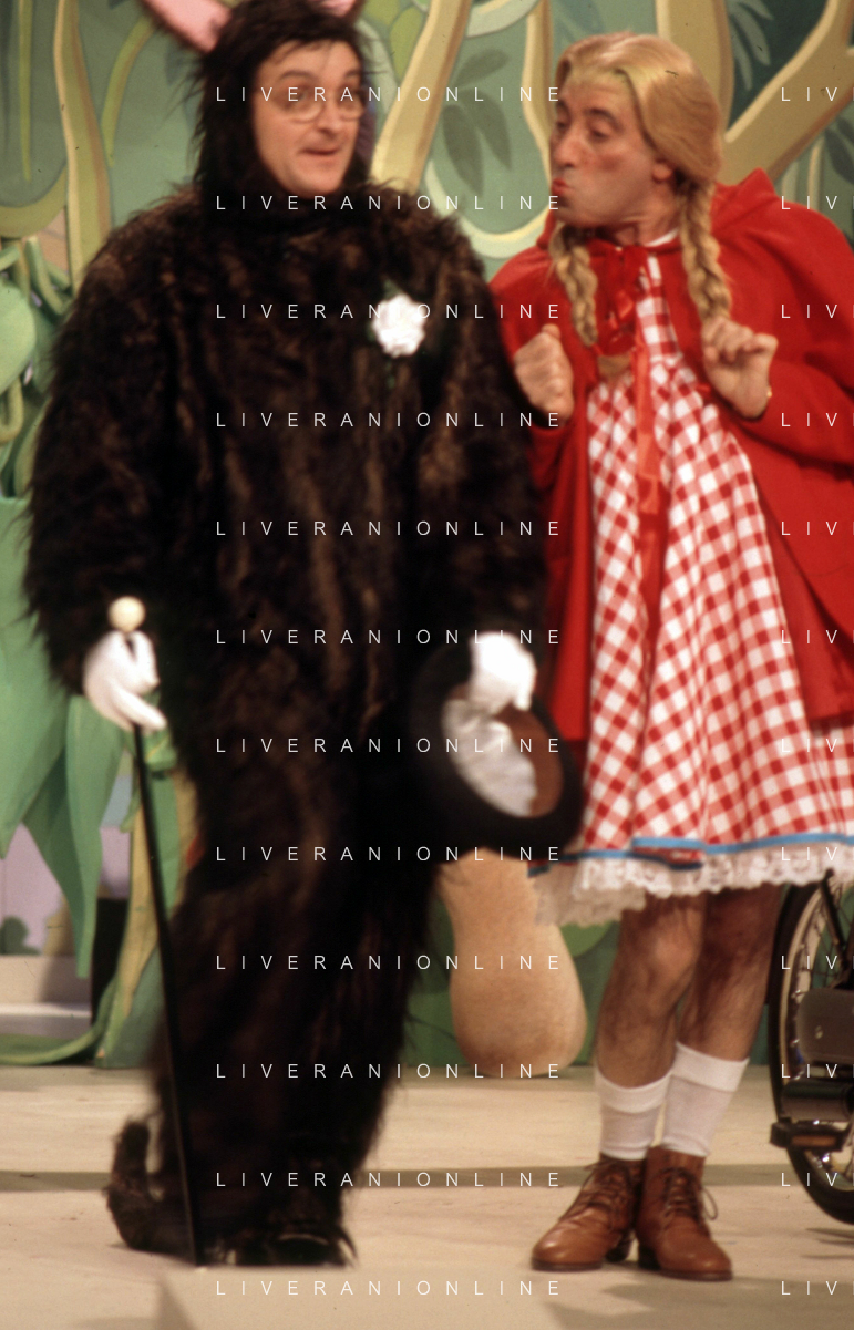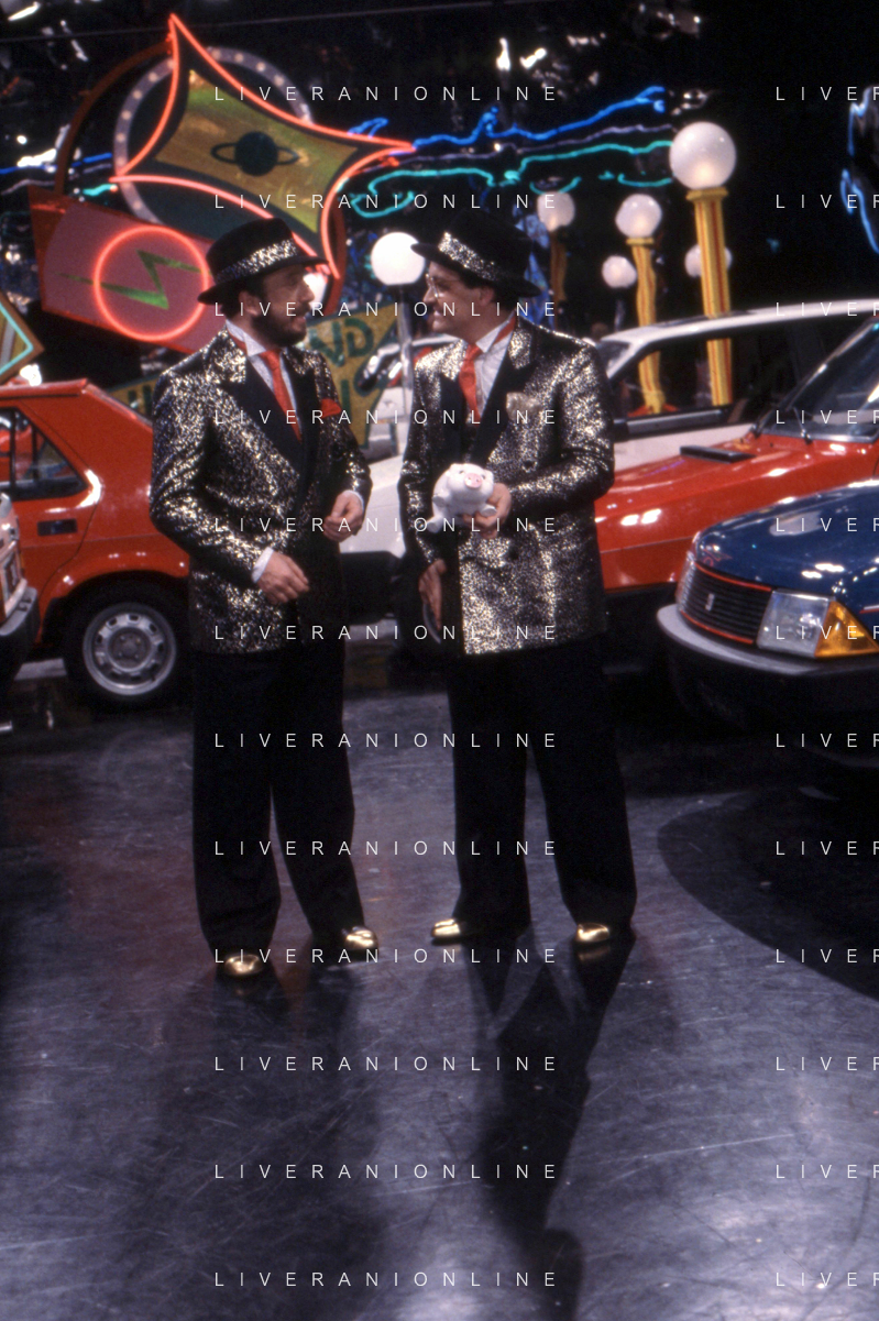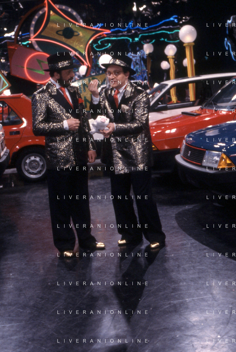 I TRETTRE' , TRIO COMICO NAPOLETANO, COMPOSTO DA GINO COGLIANDRO, EDOARDO ROMANO E MIRKO SETARO NELLA FOTO GINO COGLIANDRO NEL PROGRAMMA TV DI RAIMONDO VIANELLO E SANDRA MONDAINI AG ALDO LIVERANI SAS