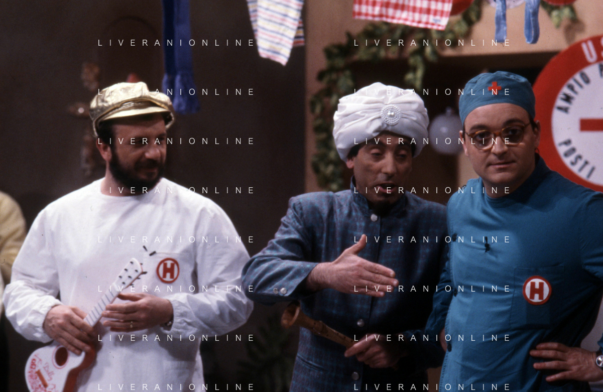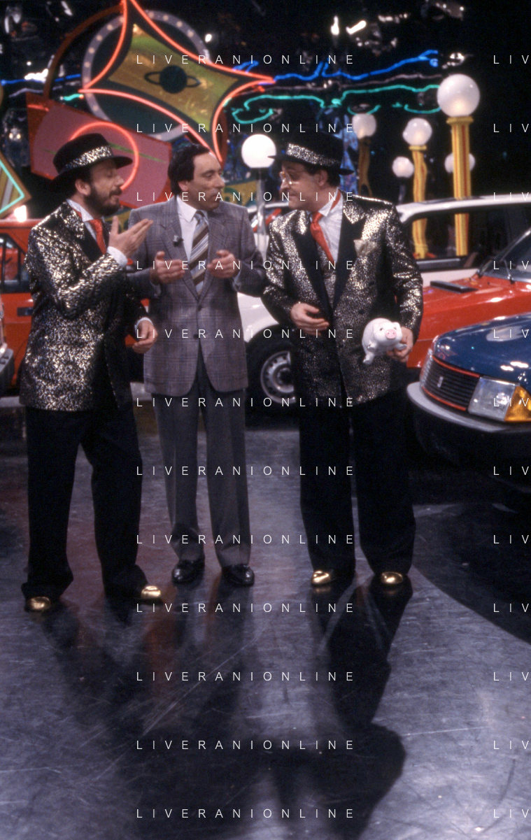 I TRETTRE' , TRIO COMICO NAPOLETANO, COMPOSTO DA GINO COGLIANDRO, EDOARDO ROMANO E MIRKO SETARO NELLA FOTO NEL PROGRAMMA TV DI RAIMONDO VIANELLO E SANDRA MONDAINI AG ALDO LIVERANI SAS