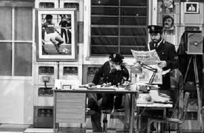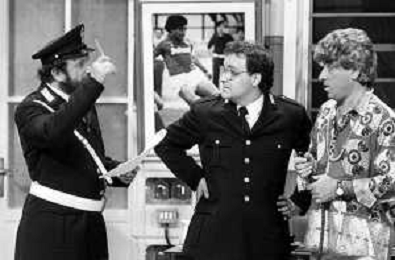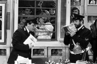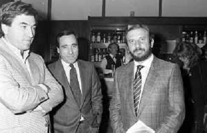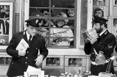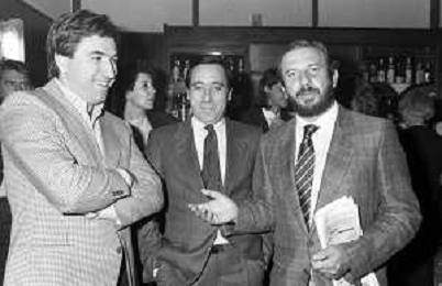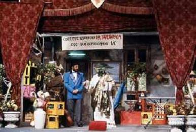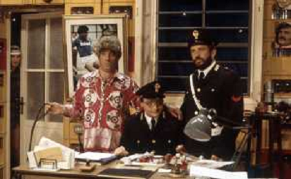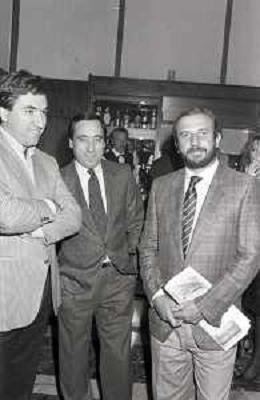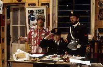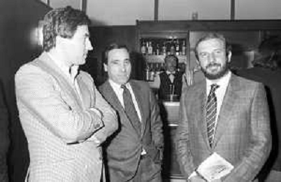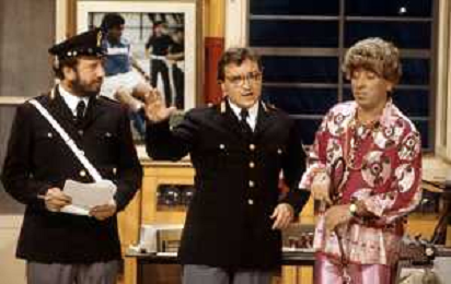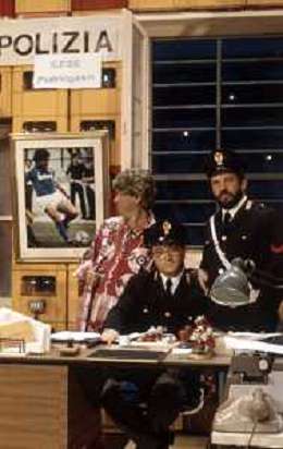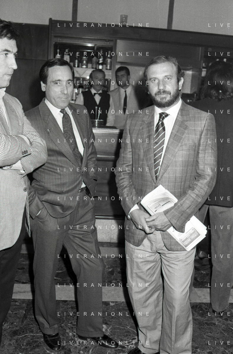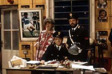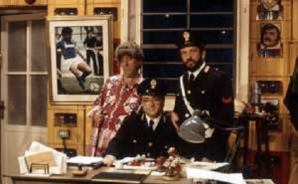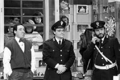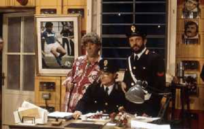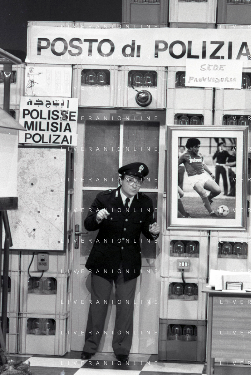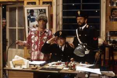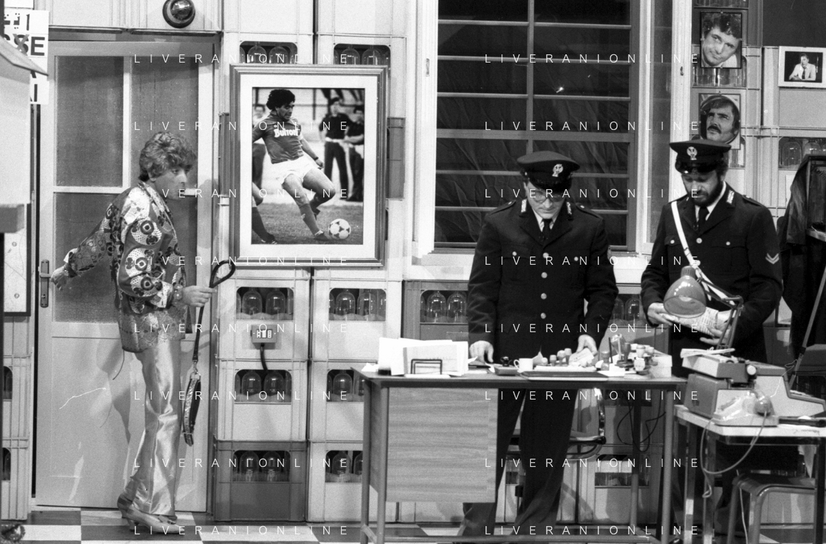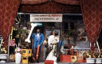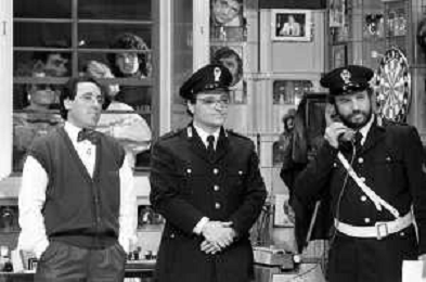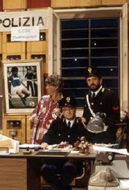 I TRETTRE' , TRIO COMICO NAPOLETANO, COMPOSTO DA GINO COGLIANDRO, EDOARDO ROMANO E MIRKO SETARO NELLA FOTO GINO COGLIANDRO E EDOARDO ROMANO NEL 1986 AG ALDO LIVERANI SAS